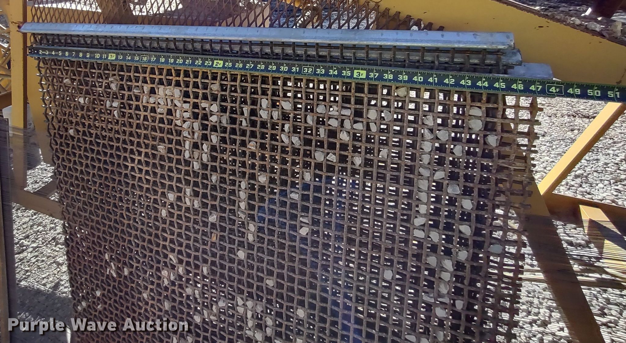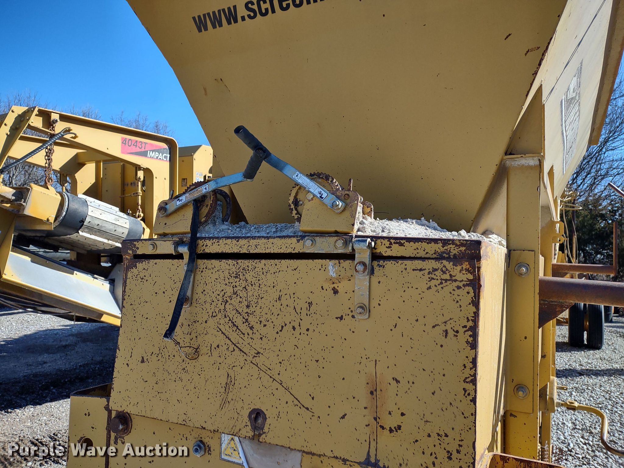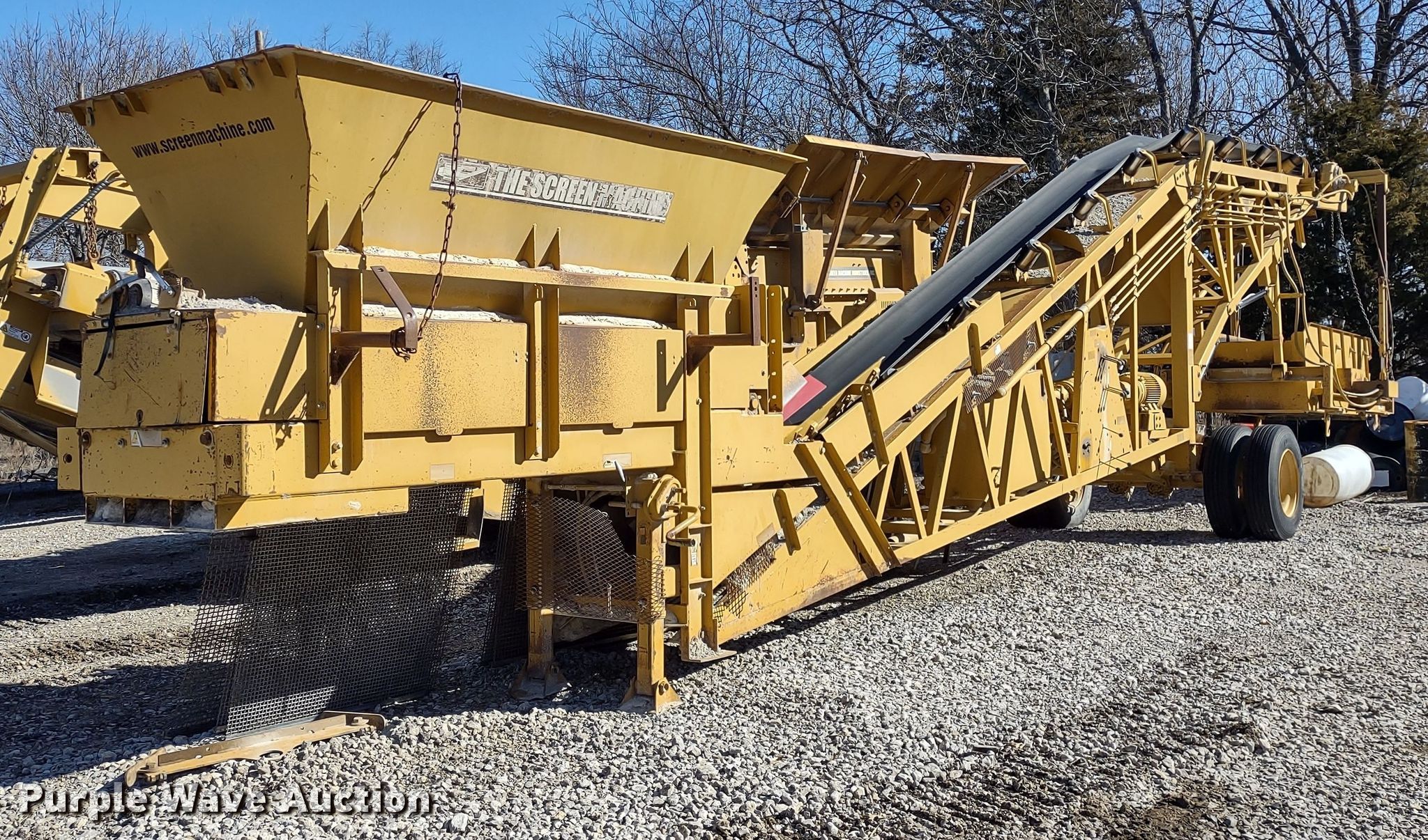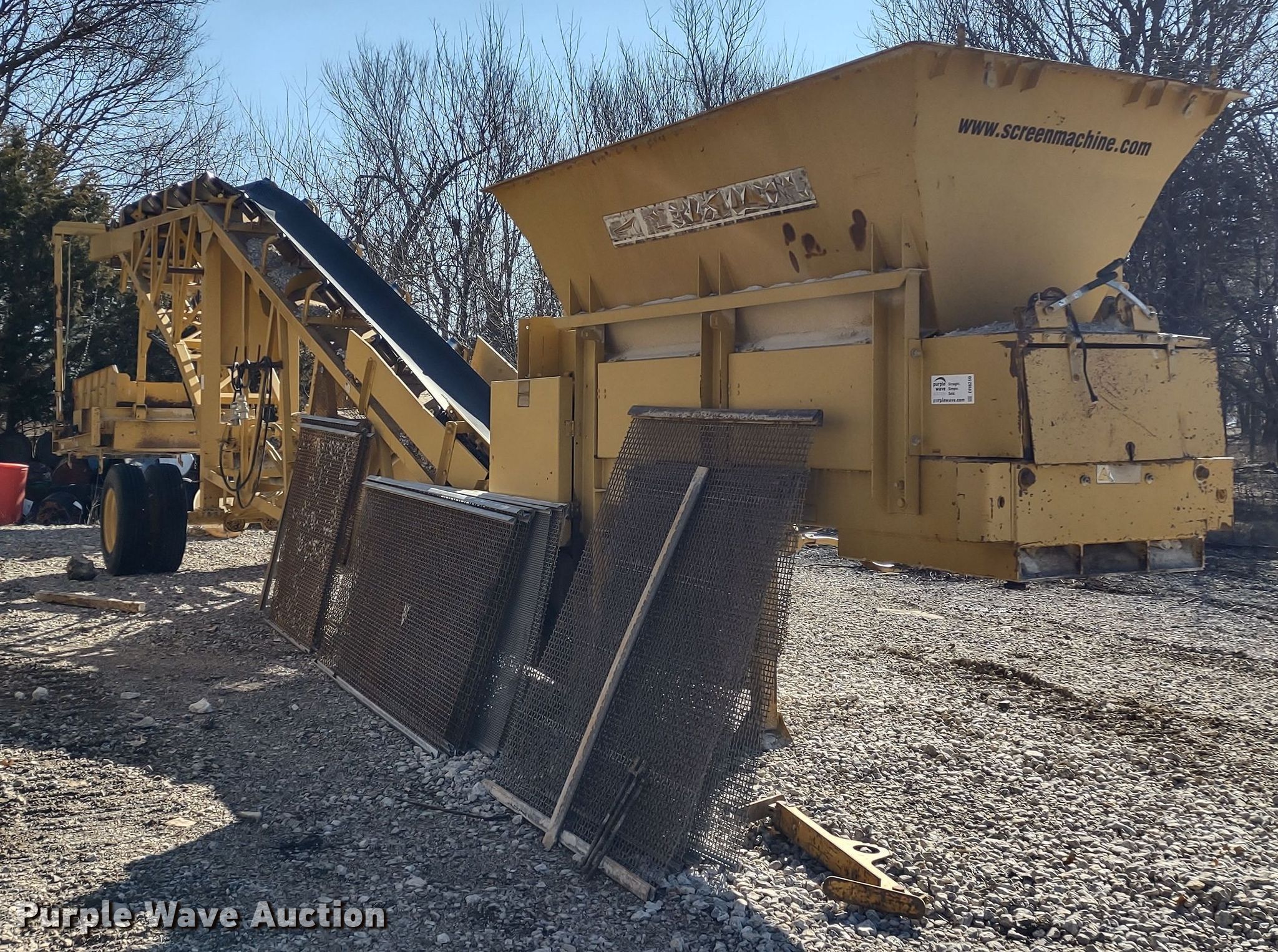 The Screen Machine screening plant. Serial: E48-P-E-JH2192. Electric Motor Worldwide , HP: 25, Volts: 230/460, Phase: Three. Features Screen deck Length: 8', Width: 4', Decks: Triple, Screen size Top: 9/16", Middle:3/8", Bottom: 1/8", Input hopper Length: 10' 7", Width: 5', Vibrating, Conveyors Input: 9.7' L x 28" W, Discharge: 40' L x 24" W. Tires Size: 11R22.5. View repairs. Bourbon County Public Works. 1427 215th Street. Fort Scott, KS 66701
