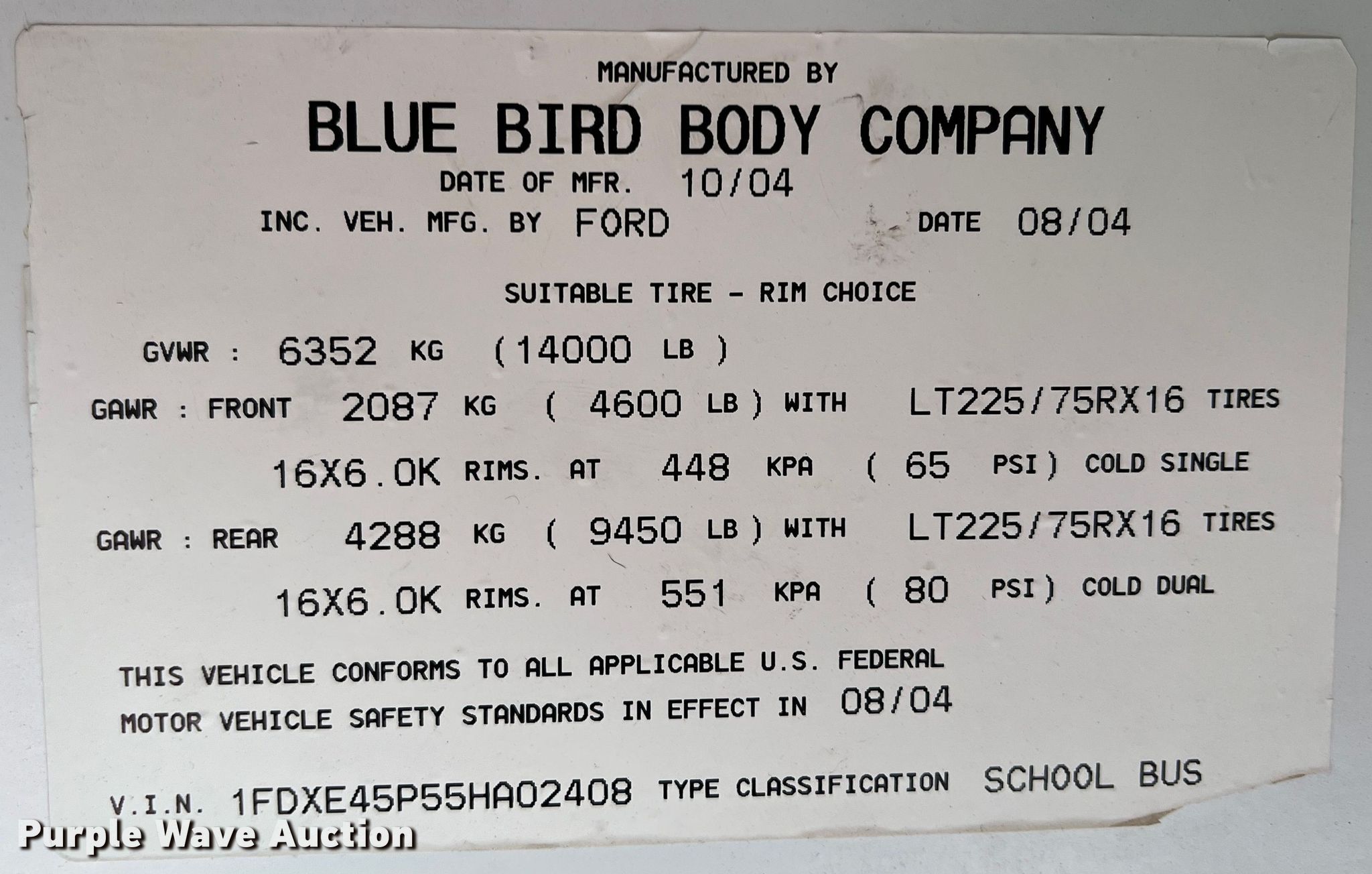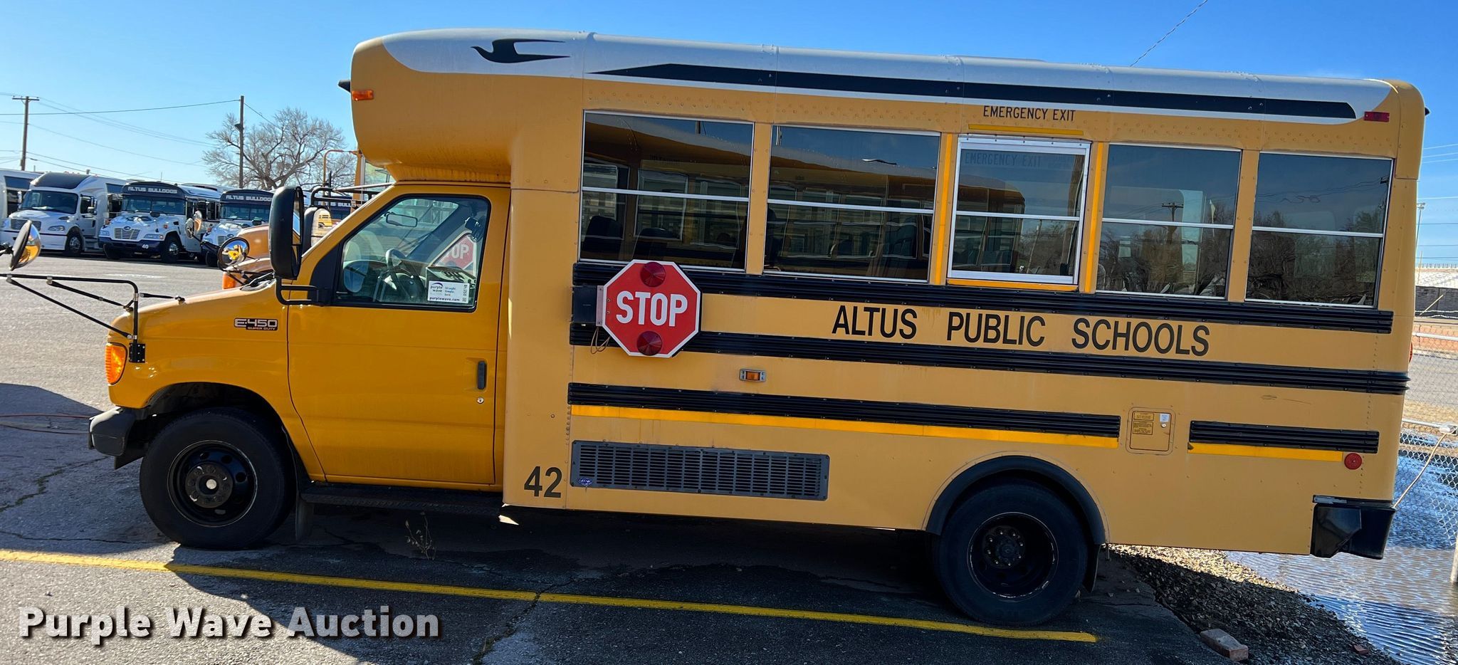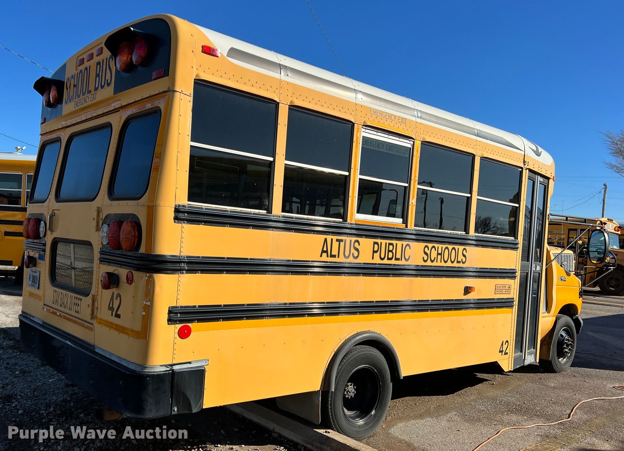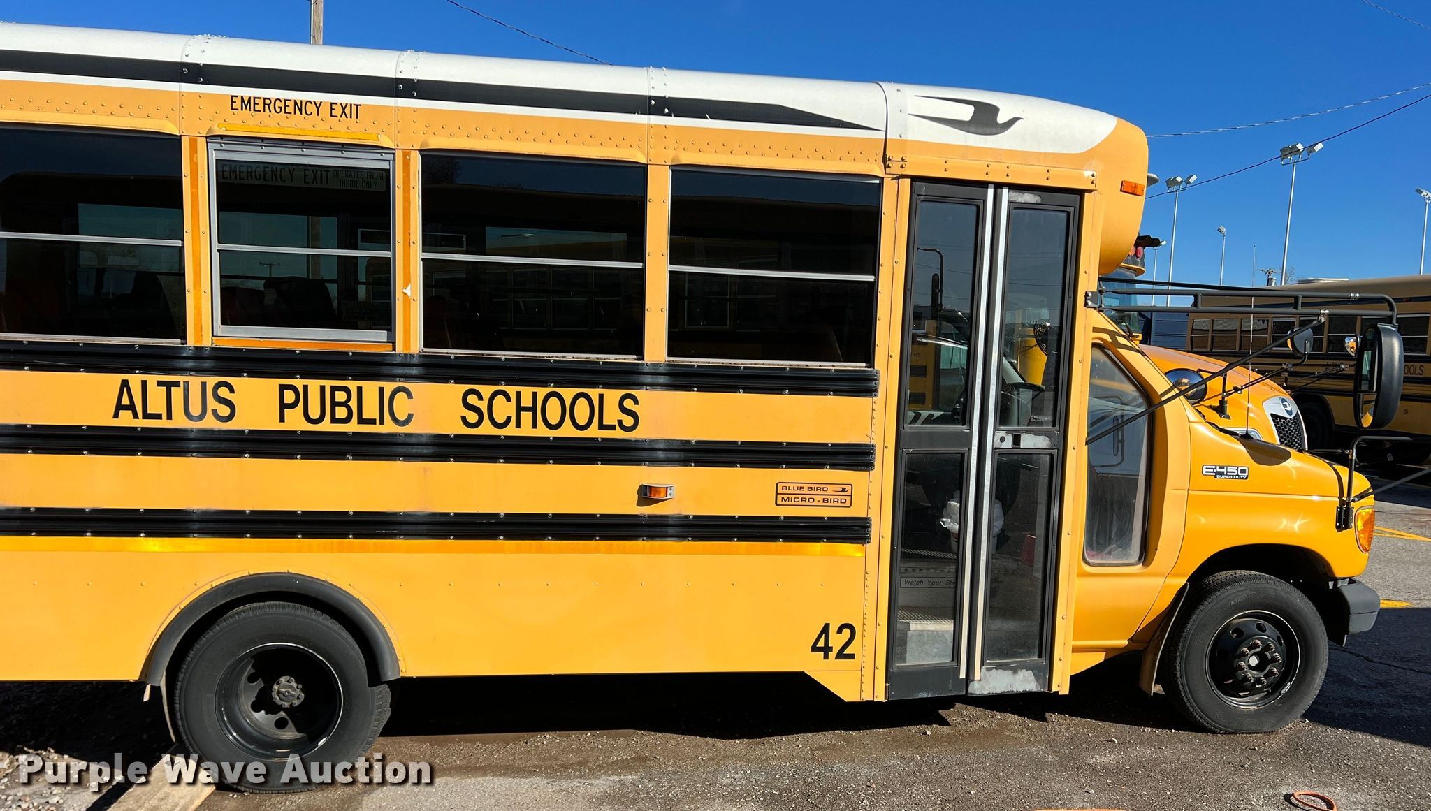 Purple Wave is selling a used Bus in Oklahoma. This item is a 2005 Blue Bird E450 Super Duty school bus with the following: Miles: 76,638 on odometer, VIN: 1FDXE45P55HA02408, Unit #: 42