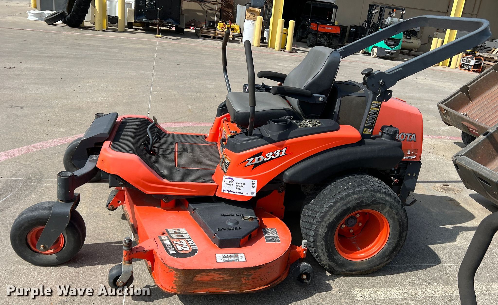 Purple Wave is selling a used Commercial Turf Mower in Texas. This item is a Kubota ZD331LP ZTR lawn mower with the following: Hours: 1,723 on meter, Cutting width: 72", Serial: 14402