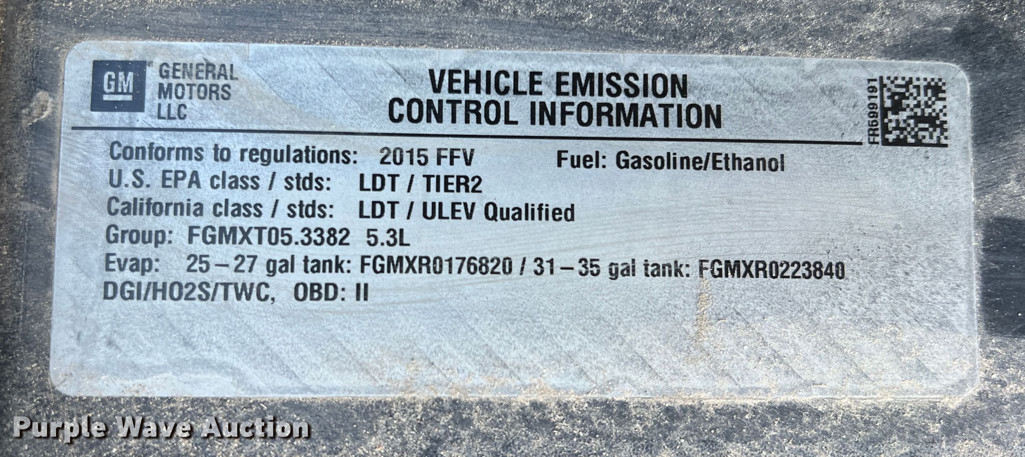 2015 Chevrolet Tahoe Police SUV. Miles: 70,635 on odometer, VIN: 1GNLC2EC2FR599191. Engine Displacement: 5.3L V8 OHV , Cylinders: 8, Fuel type: Gas. Transmission Automatic. Interior AC, Heat, Seat: Power driver, Power passenger, Power windows, Power locks, Cruise control, Backup camera. Tires Size: 265/60R17. Notes Dash warning indicator: TPMS, Center console missing, Seats missing, Exterior door handle missing. Texas title. Title distribution may be delayed up to 14 days from verification of funds. City of Burleson TX. 725 Southeast John Jones Drive. Burleson, TX 76028