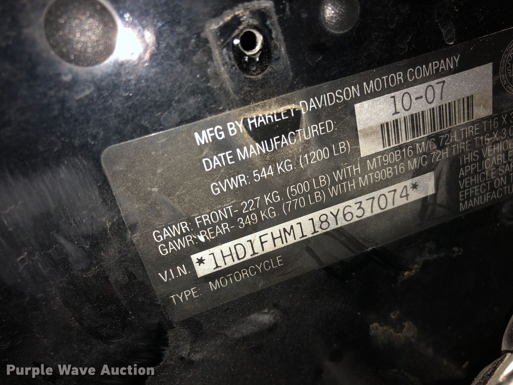 Purple Wave is selling a used Motorcycle in Kansas. This item is a 2008 Harley Davidson Road King Police motorcycle with the following: Miles: 33,250 on odometer, VIN: 1HD1FHM118Y637074