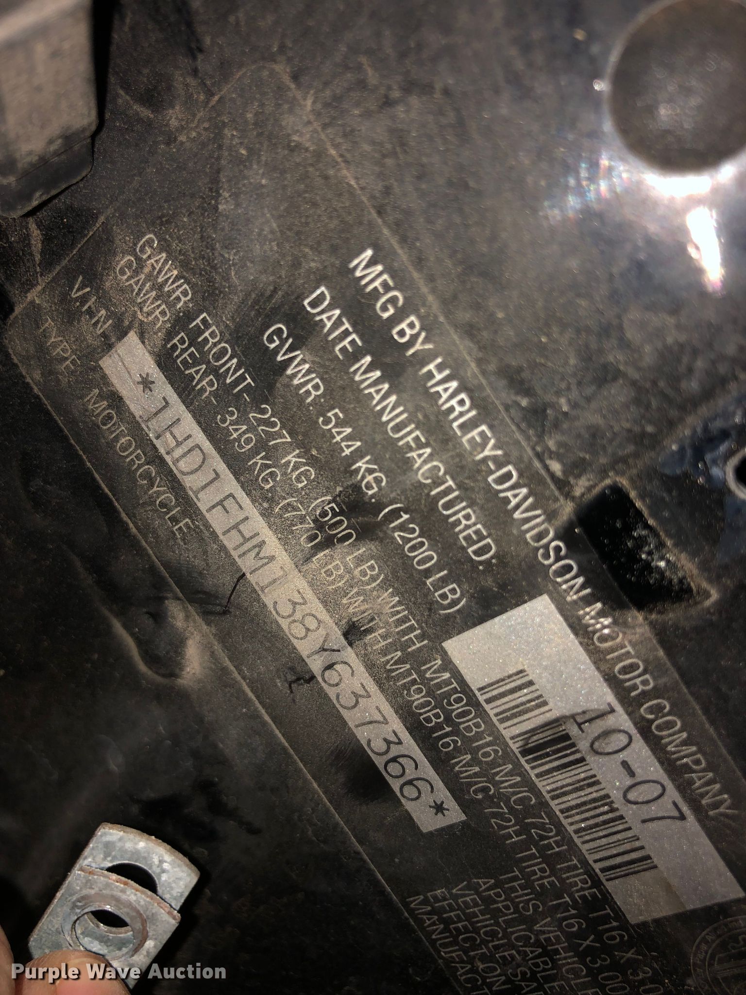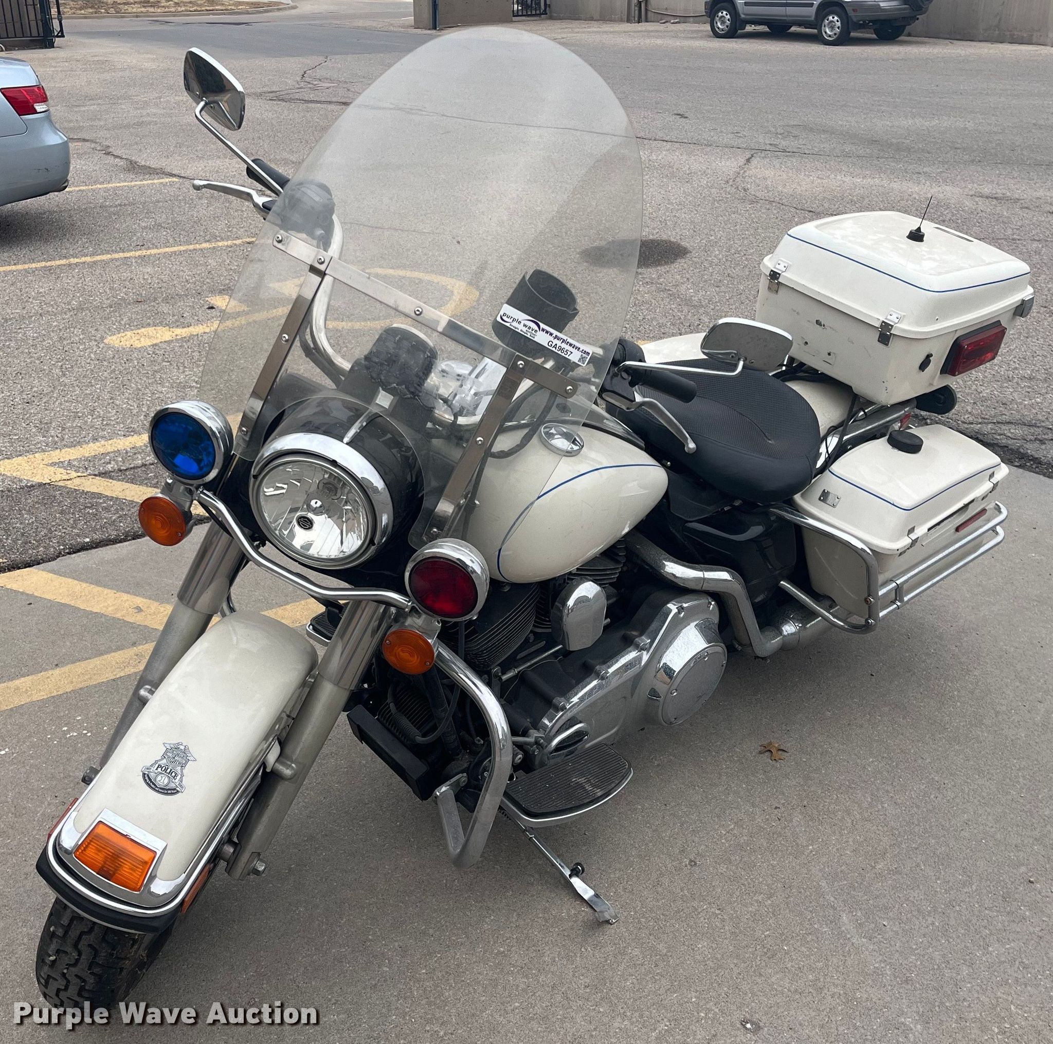 Purple Wave is selling a used Motorcycle in Kansas. This item is a 2008 Harley Davidson Road King Police motorcycle with the following: Miles: 26,341 on odometer, VIN: 1HD1FHM138Y637366