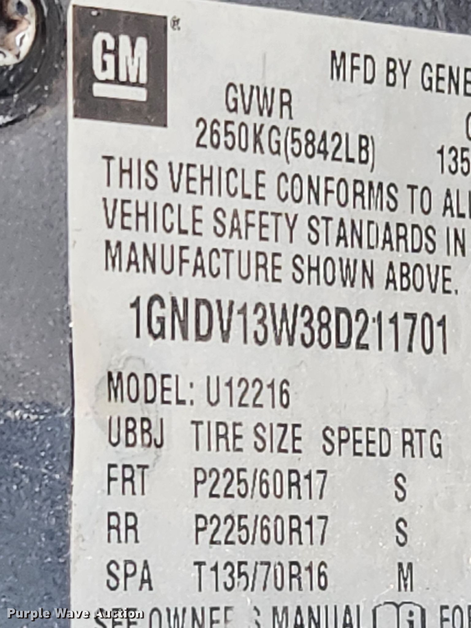 - VIN: 1GNDV13W38D211701