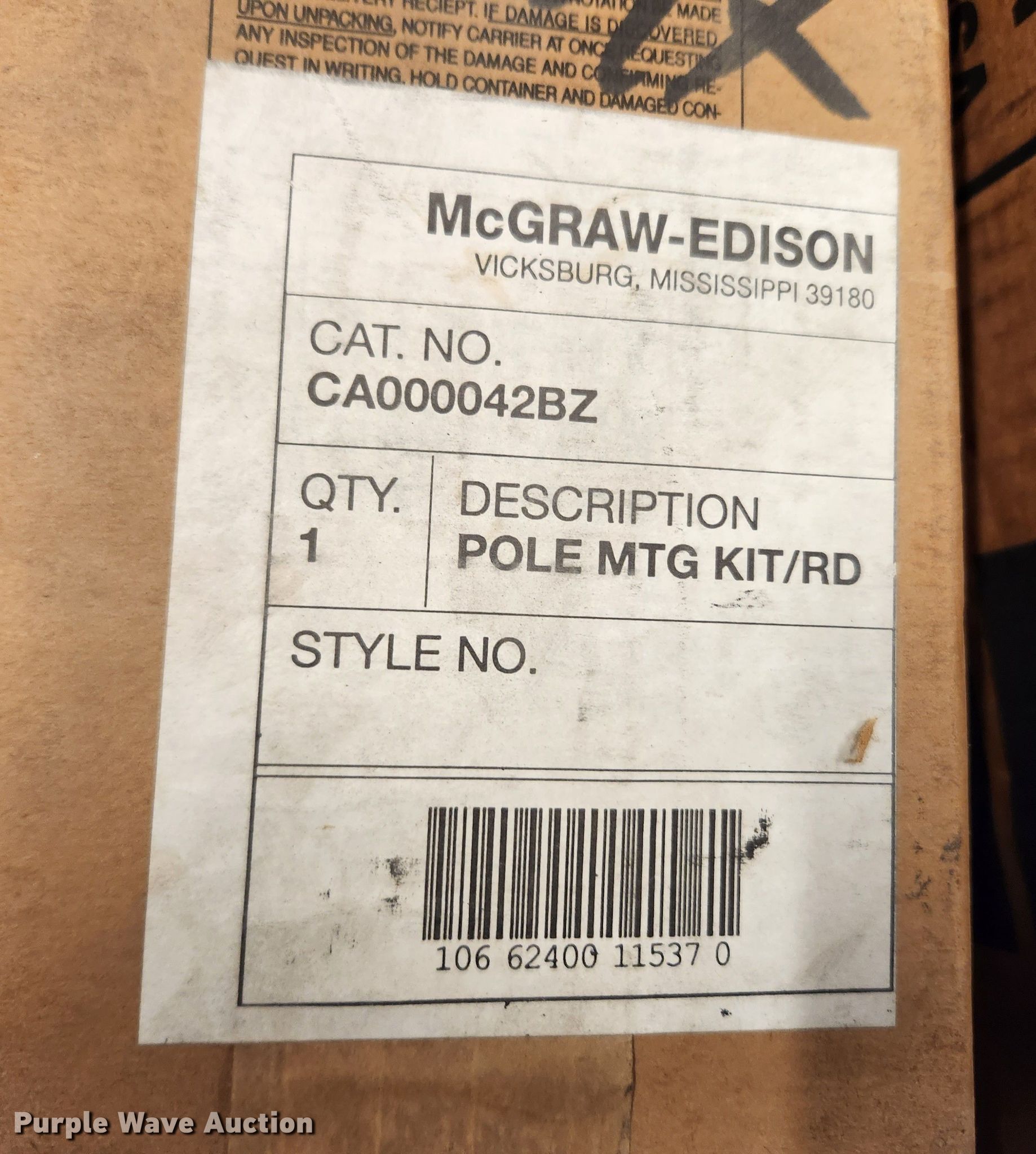 Purple Wave is selling a used Tools in Missouri. This item is a (16) pole light fixtures with the following: (3) unused, (8) pole mounts, Hardware, Unknown operating condition