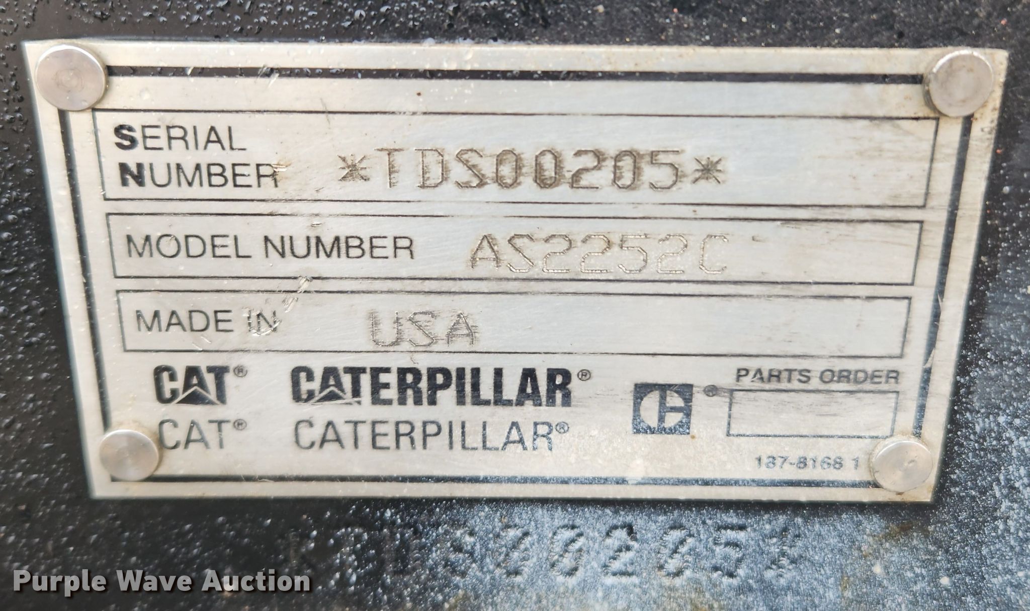 2011 Caterpillar AP555E paver. Hours: 3,667 on meter, Serial: CATAP555VA5D00201. Engine Caterpillar, Cylinders: 4, Fuel type: Diesel. Transmission Hydrostatic. Features Screed Caterpillar Versa-Mat, Serial: TDS00205, Paving width: 8' to 15', Screed heater: Electric , Material conveyor Width: 30", Truck hitch, Wash down system. Tracks Width: 16", Rubber. Notes Non-operational screed heater. Lincoln County. 219 State Highway H. Troy, MO 63379