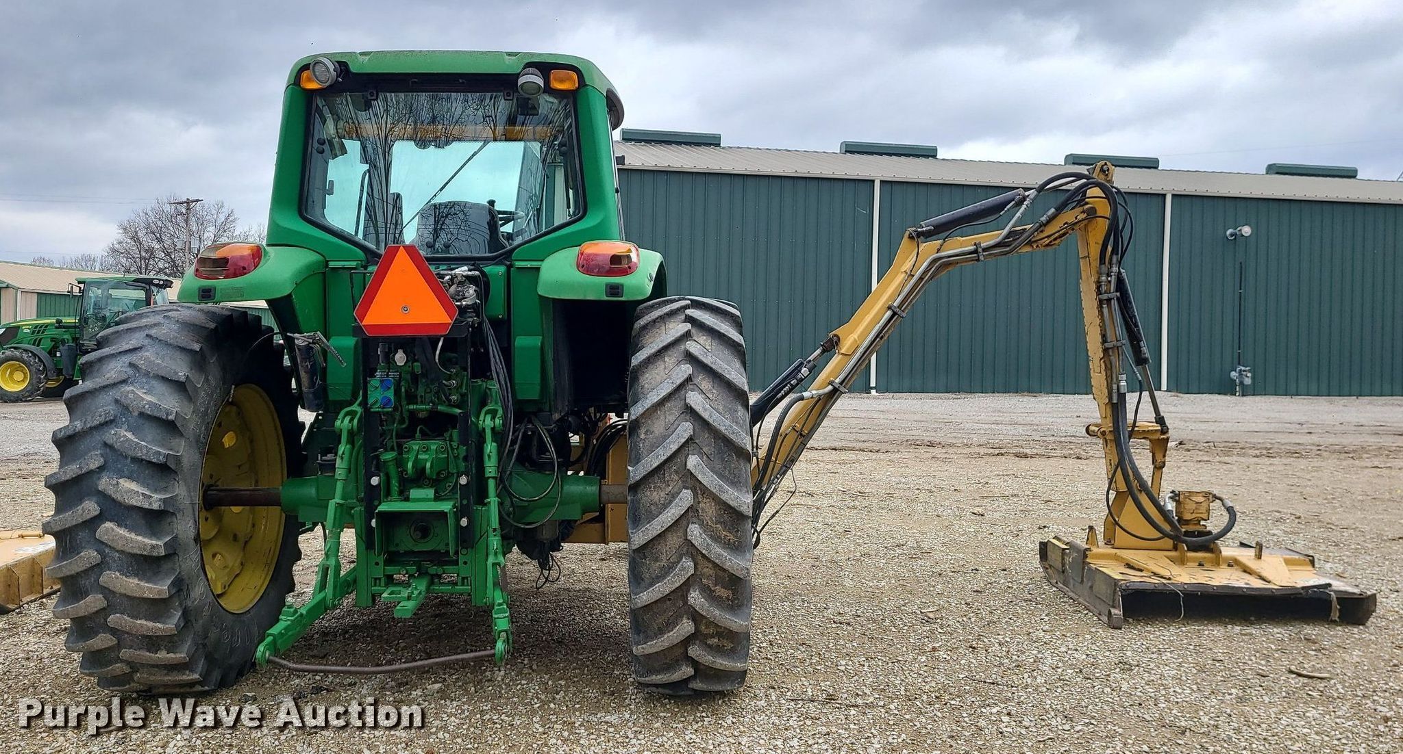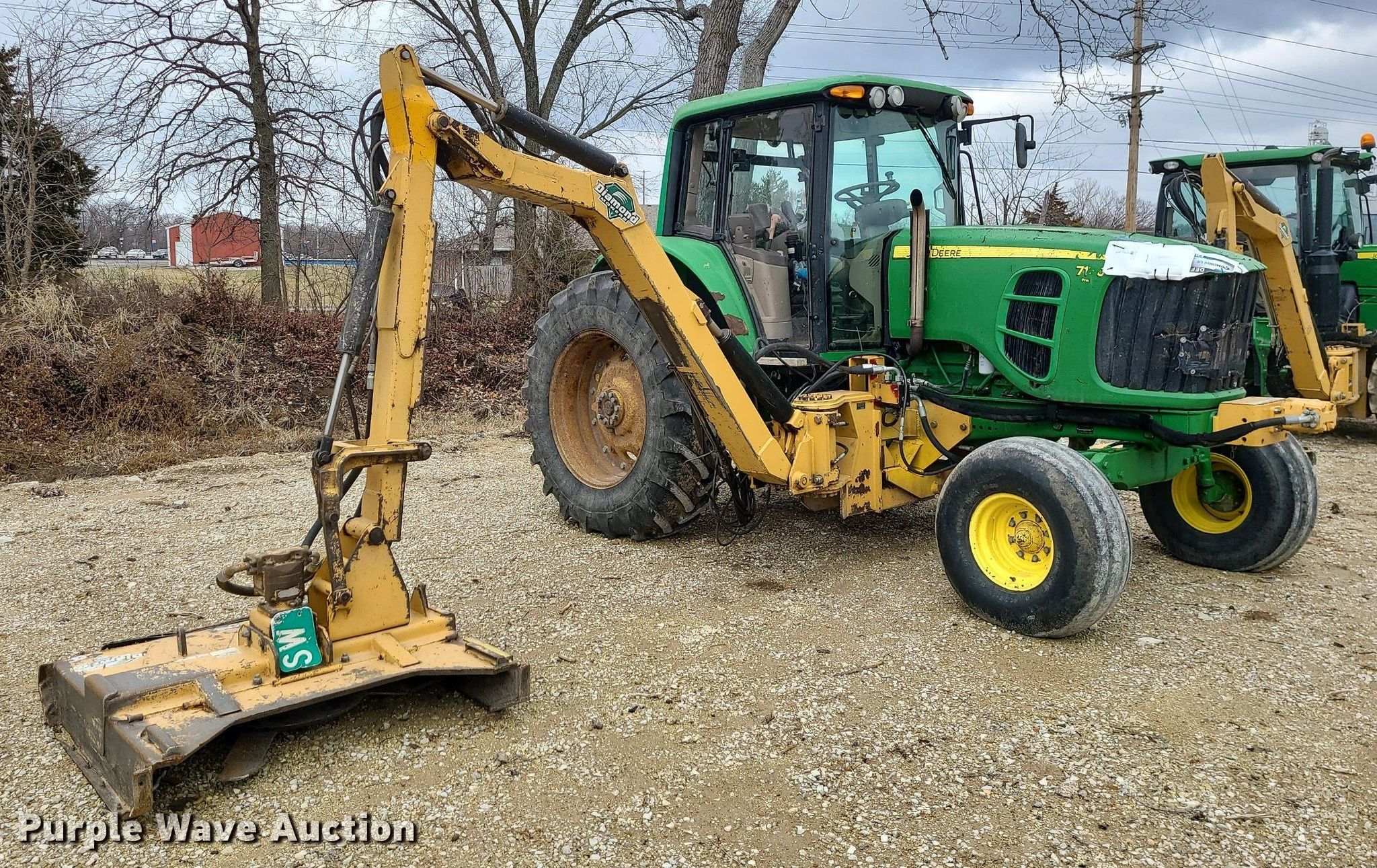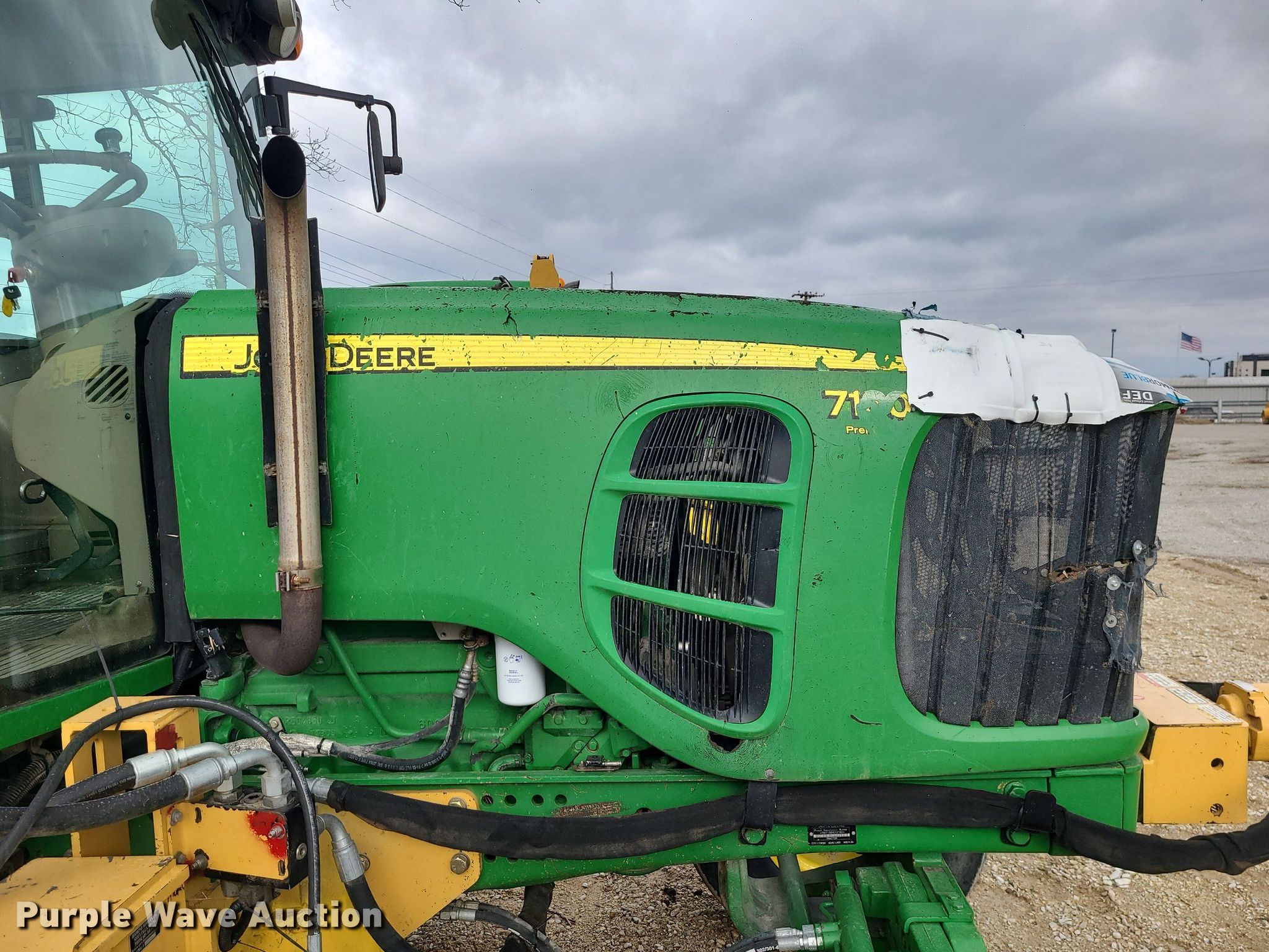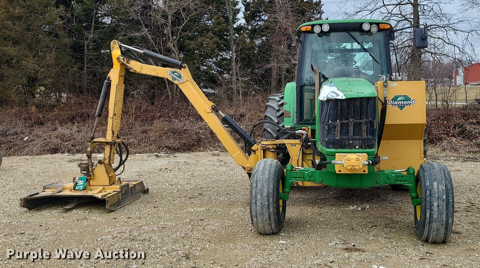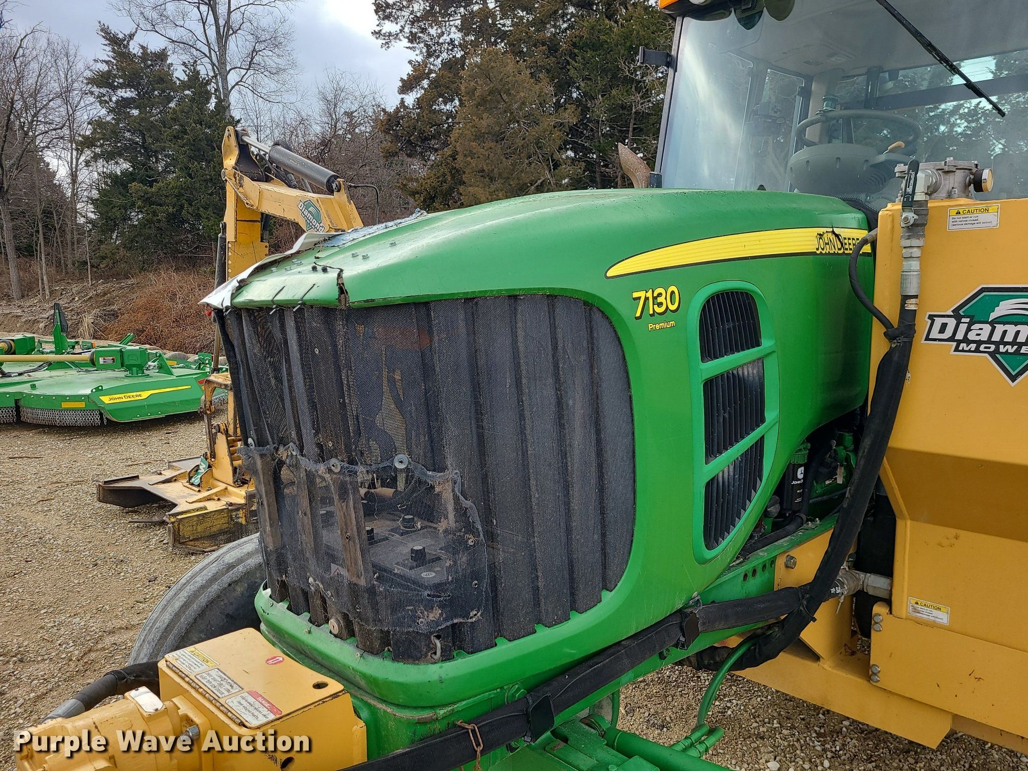 2009 John Deere 7130 Premium tractor. Hours: 7,474 on meter, Serial: RW7130H012183. Engine John Deere 6068HL280, Displacement: 6.8L, Cylinders: 6, Fuel type: Diesel. Transmission Powershift, 16F - 16R, Left-hand reverser. Operators station AC, Heat, Display. Features PTO: 1000, Three point, Seven pin outlet, Hydraulic remote sets Rear: 2, Diamond side boom rotary mower Width: 52", Serial: 17963. Tires Front: 11.00-16, Rear: 18.4R38. Henry County, MO. 1316 N 3rd Street. Clinton, MO 64735