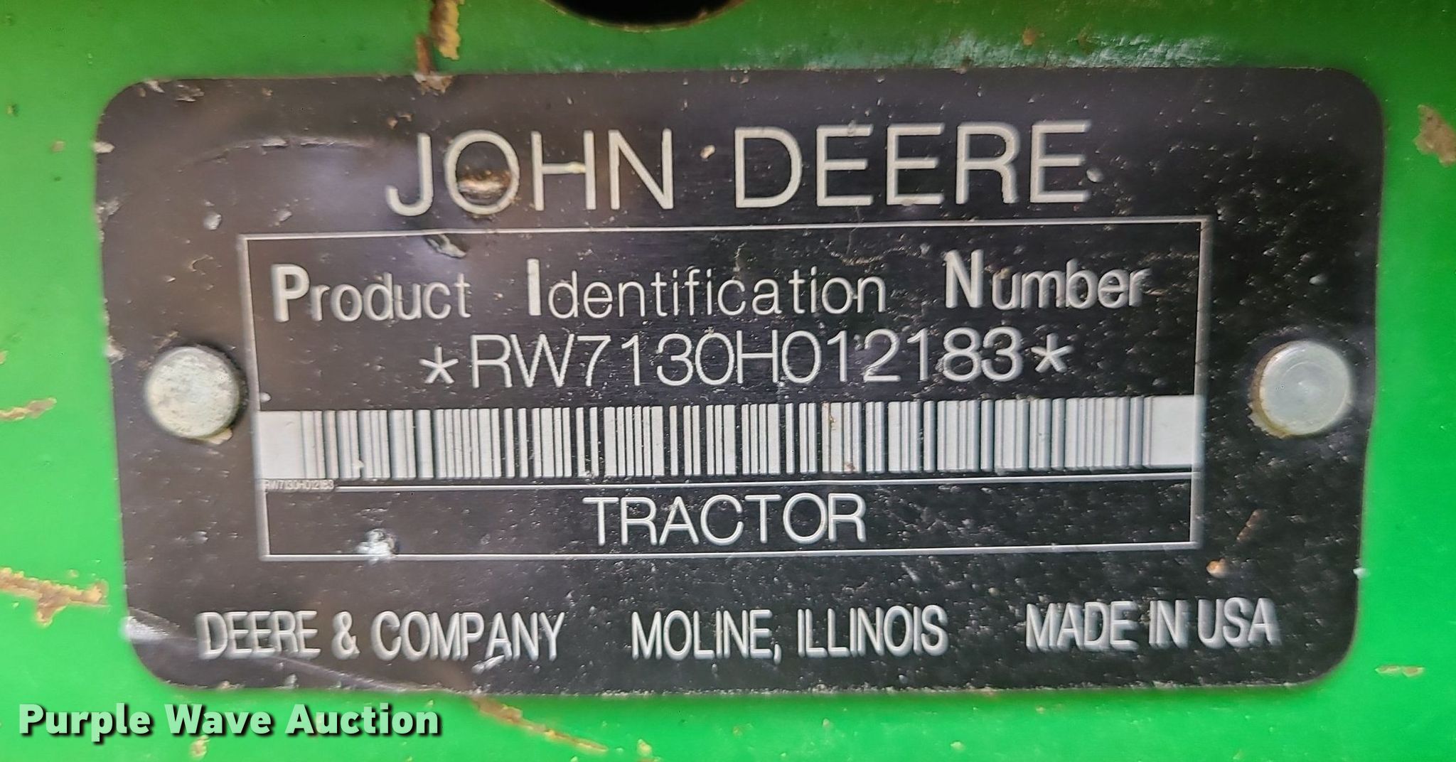 Purple Wave is selling a used Tractor in Missouri. This item is a 2009 John Deere 7130 Premium tractor with the following: Hours: 7,474 on meter, Serial: RW7130H012183