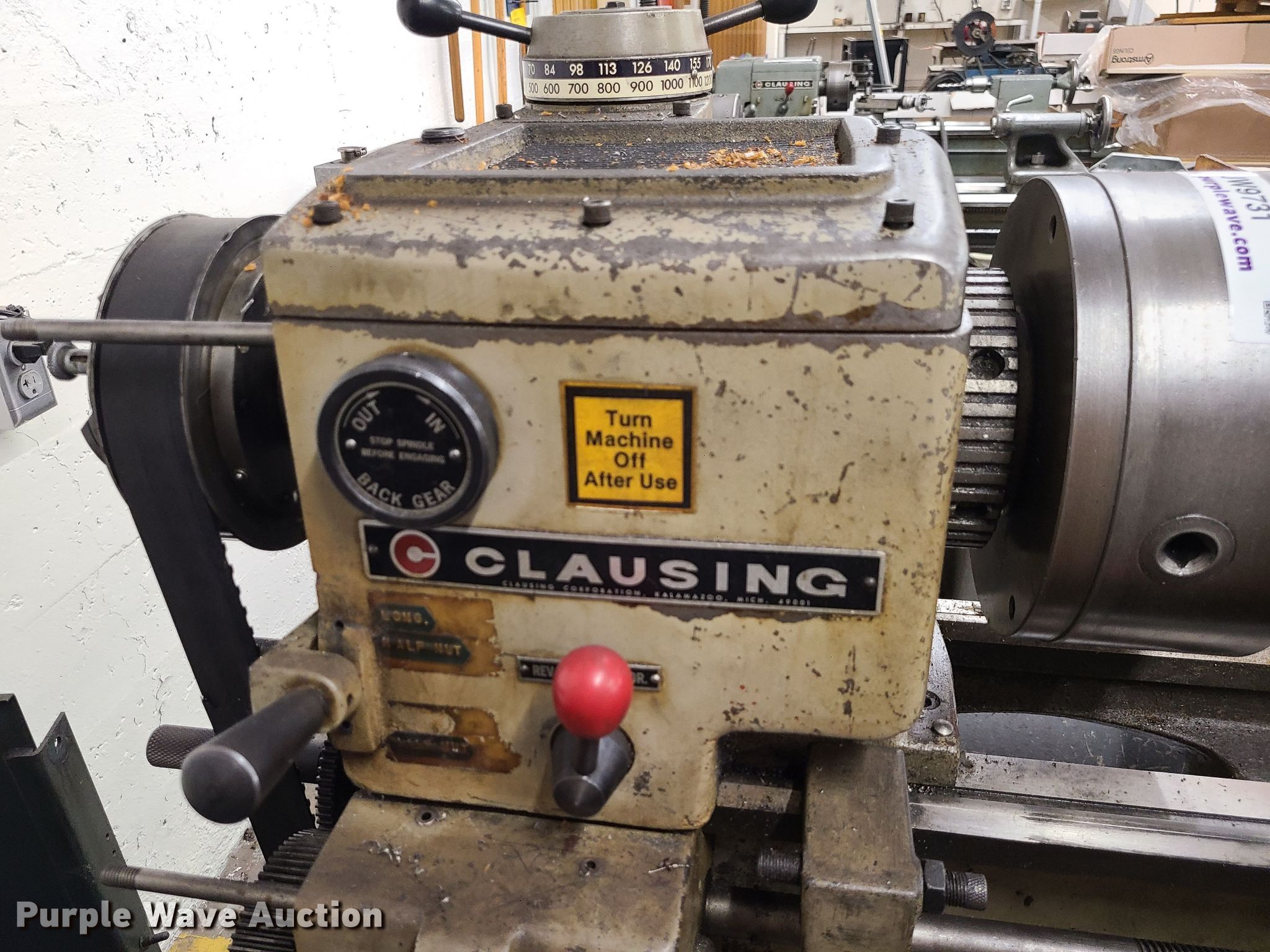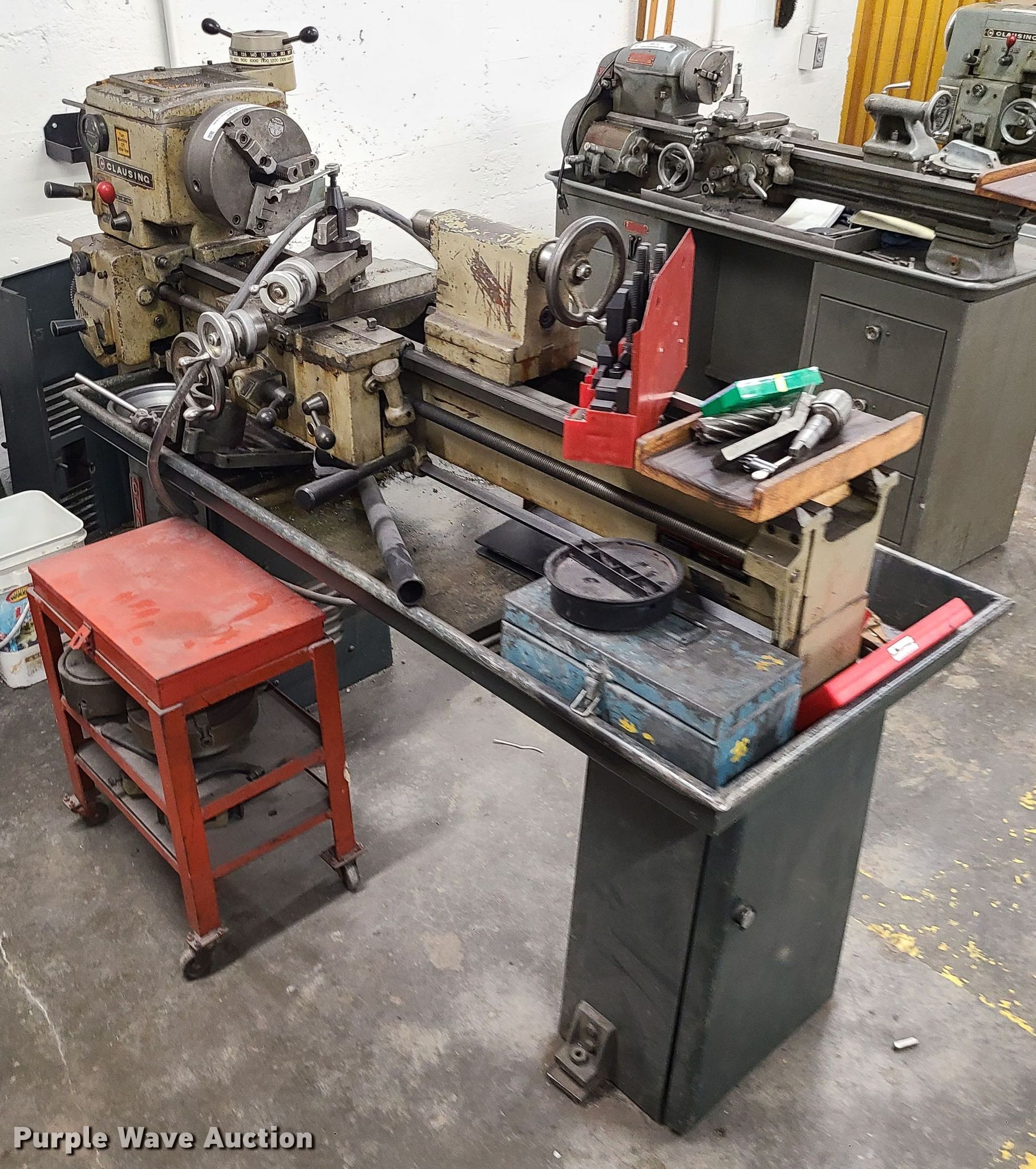 Purple Wave is selling a used Lathes, Manual in Missouri. This item is a Clausing 5914 lathe with the following: 48" bed, Tooling, Additional chucks