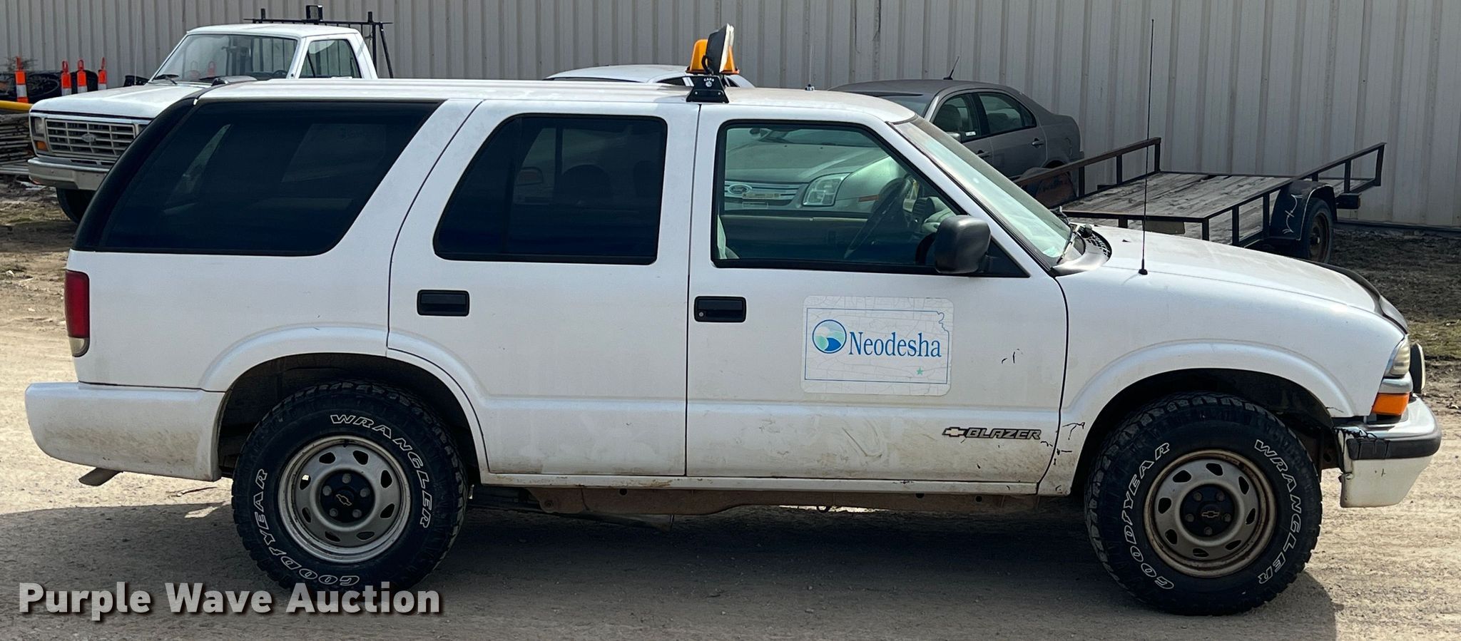 1999 Chevrolet Blazer SUV. Miles: 194,769 on odometer, VIN: 1GNDT13W8XK190991. Engine Displacement: 4.3L V6 OHV, Cylinders: 6, Fuel type: Gas. Transmission Automatic, Four wheel drive. Interior AC, Heat, Power windows, Power locks. Tires Size: LT235/75R15. Notes Catalytic converter missing, Brake issues, Dead battery. Kansas title. Title distribution may be delayed up to 14 days from verification of funds. City of Neodesha. 1200 W Granby. Neodesha, KS 66757