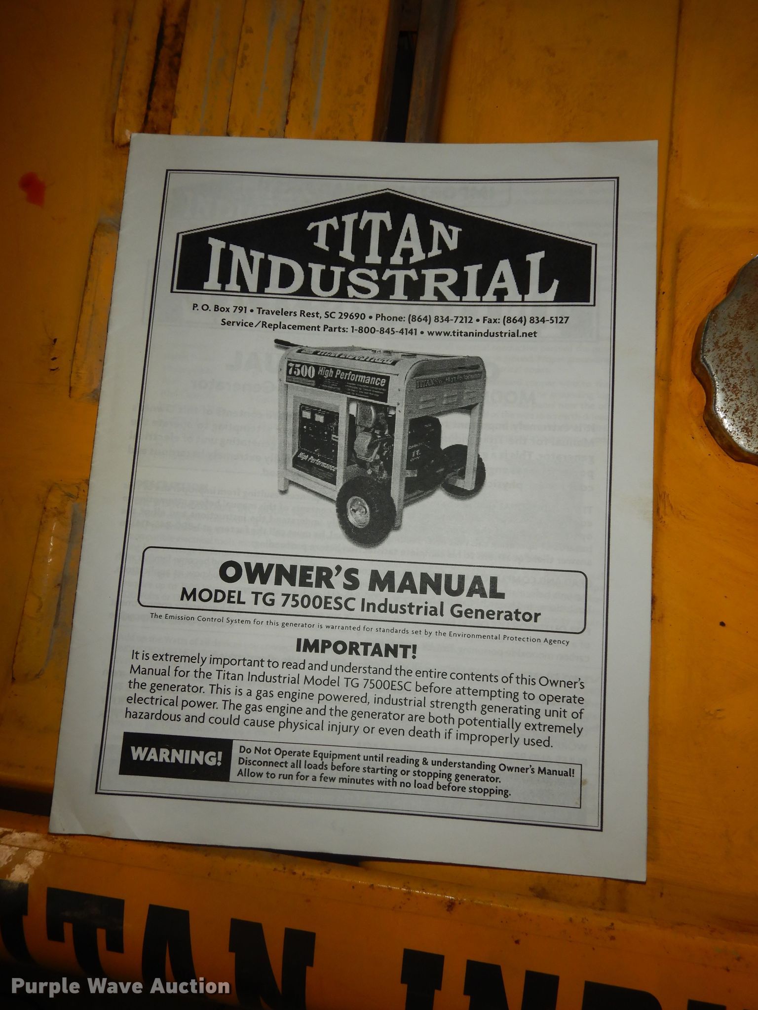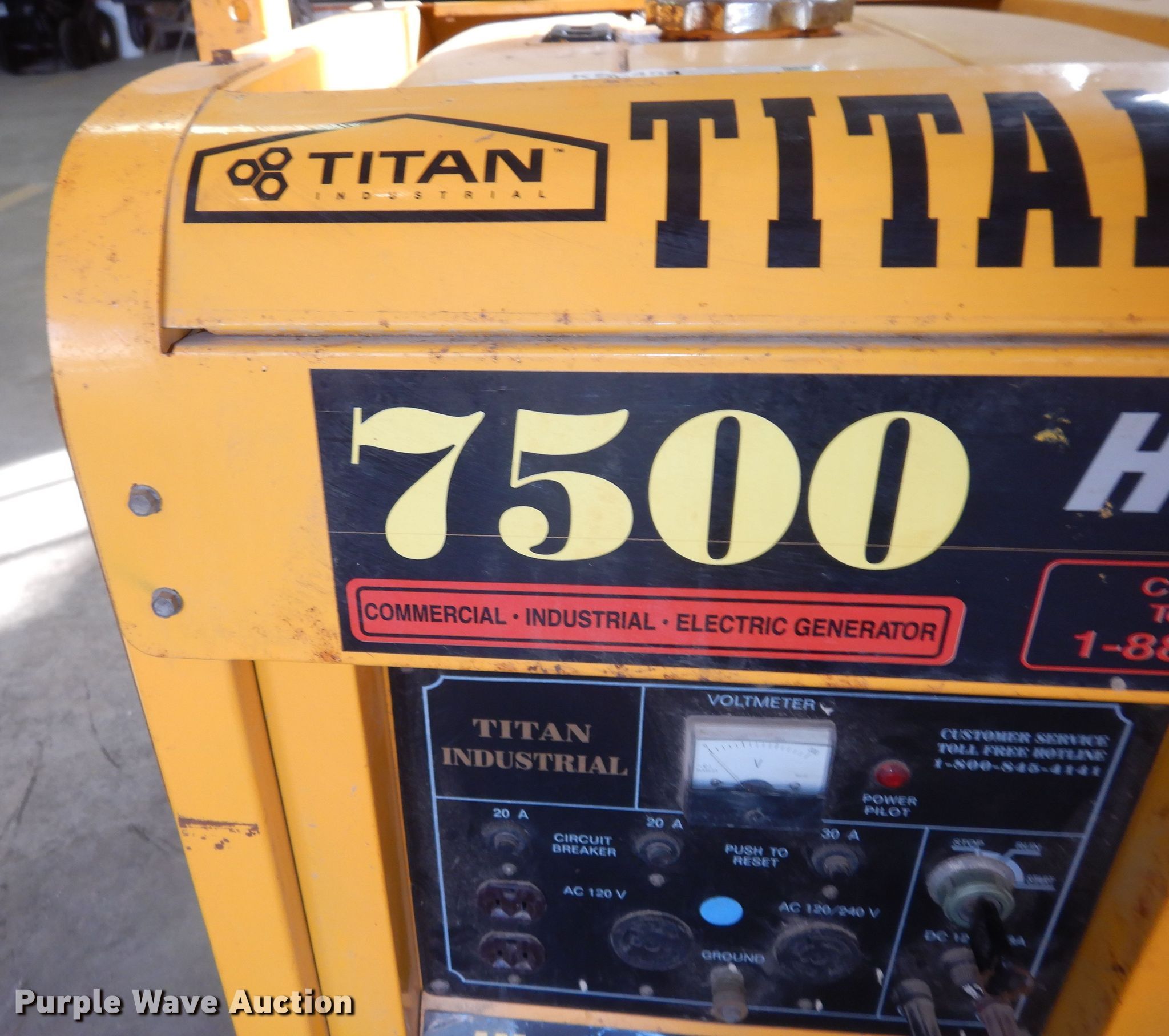 Purple Wave is selling a used Generator Set in Kansas. This item is a Titan Industrial 7500 generator with the following: Hours: Unknown, Unit #: GENERATOR 1