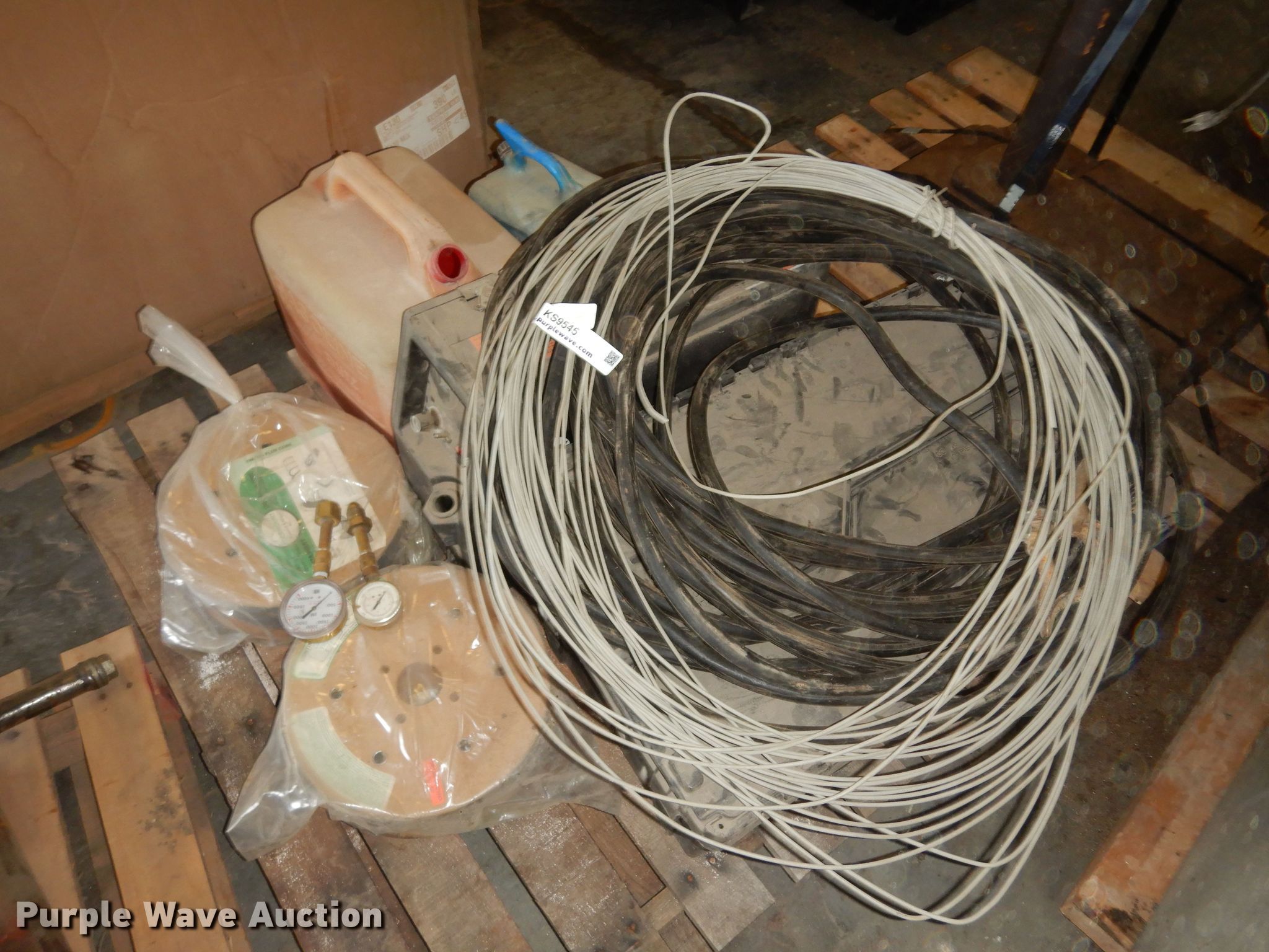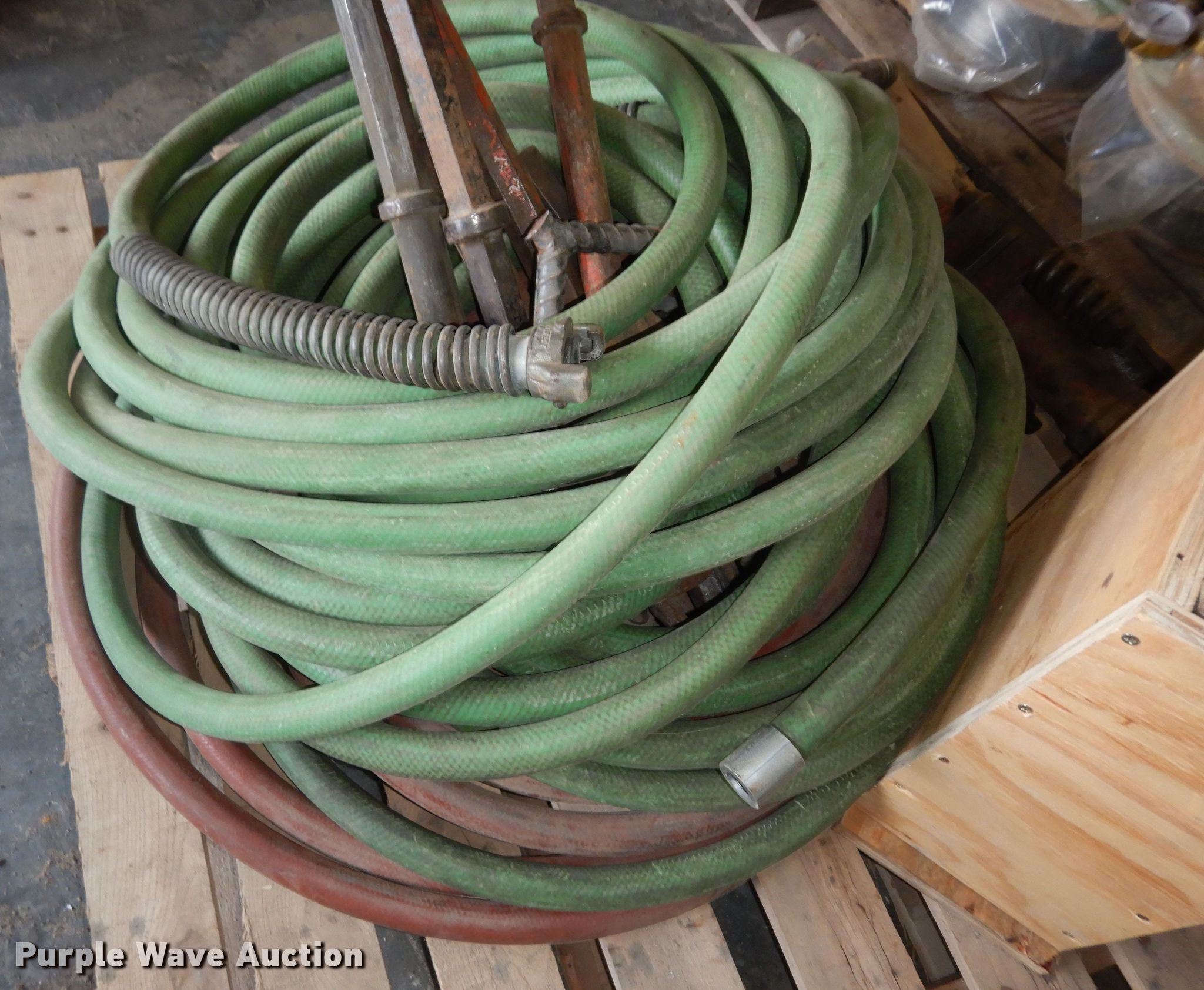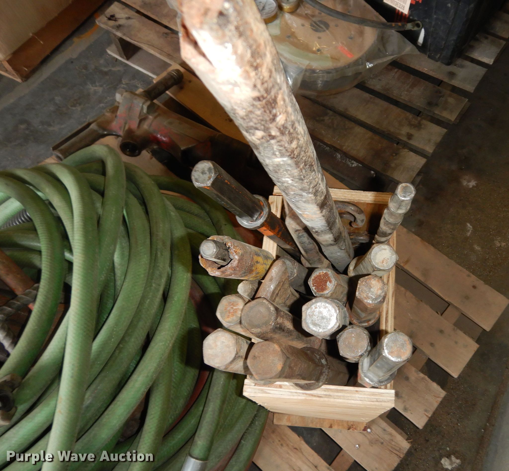Purple Wave is selling a used Tools in Kansas. This item is a Tools with the following: Wire feed welder, Leads, Wire spools, Fuel cans, Helmet, Jackhammer, Air hose, Bits, Gauges and more
