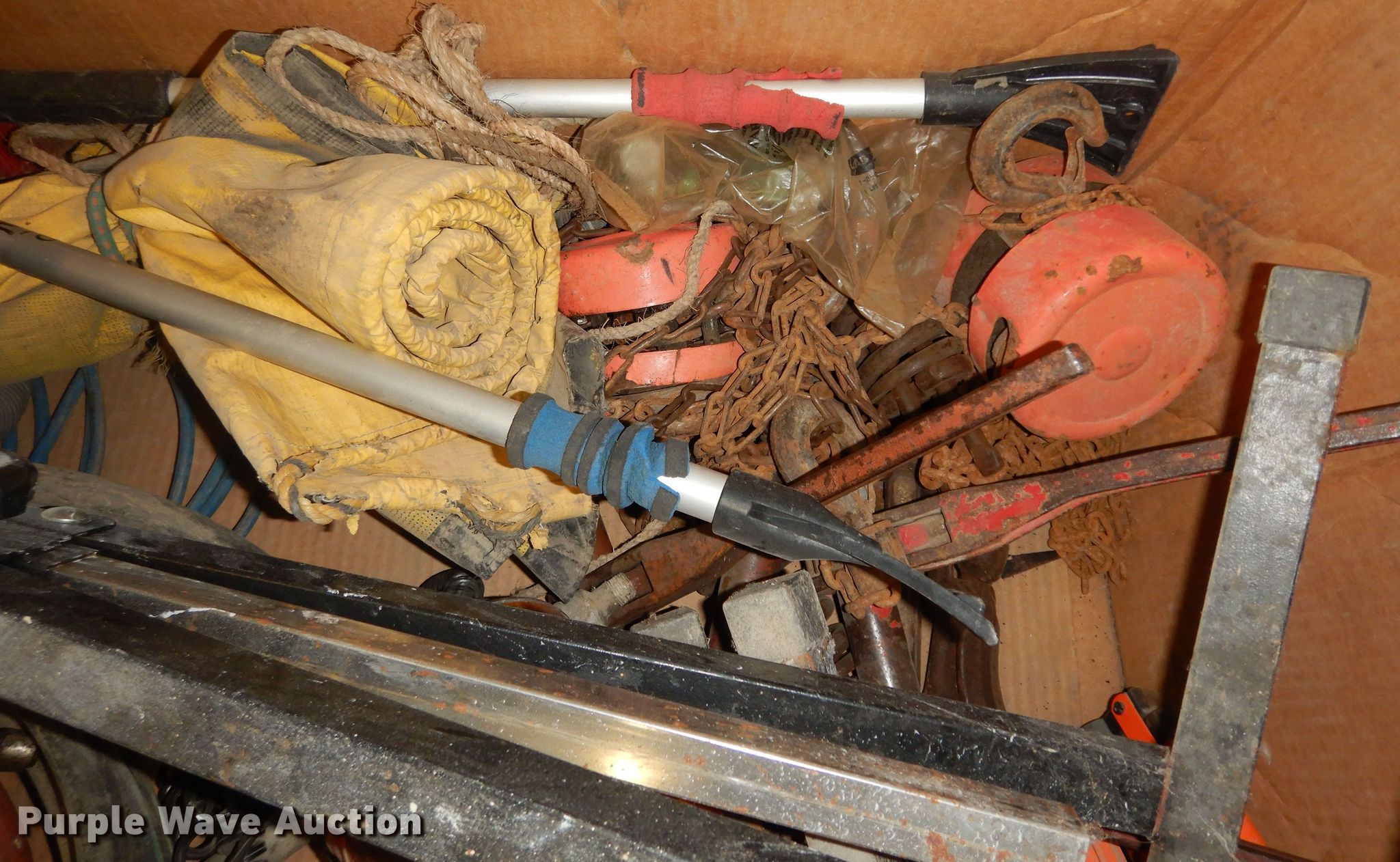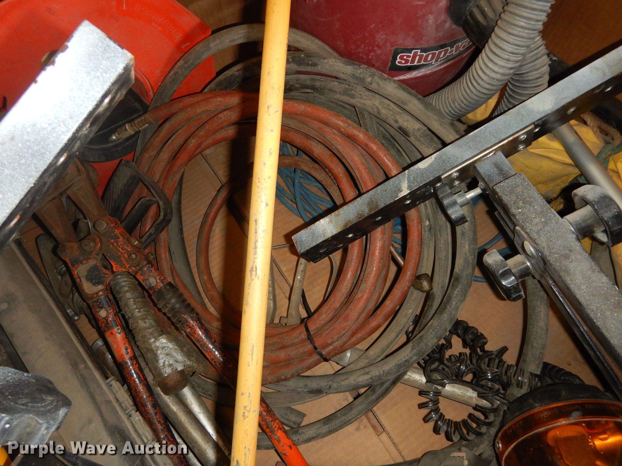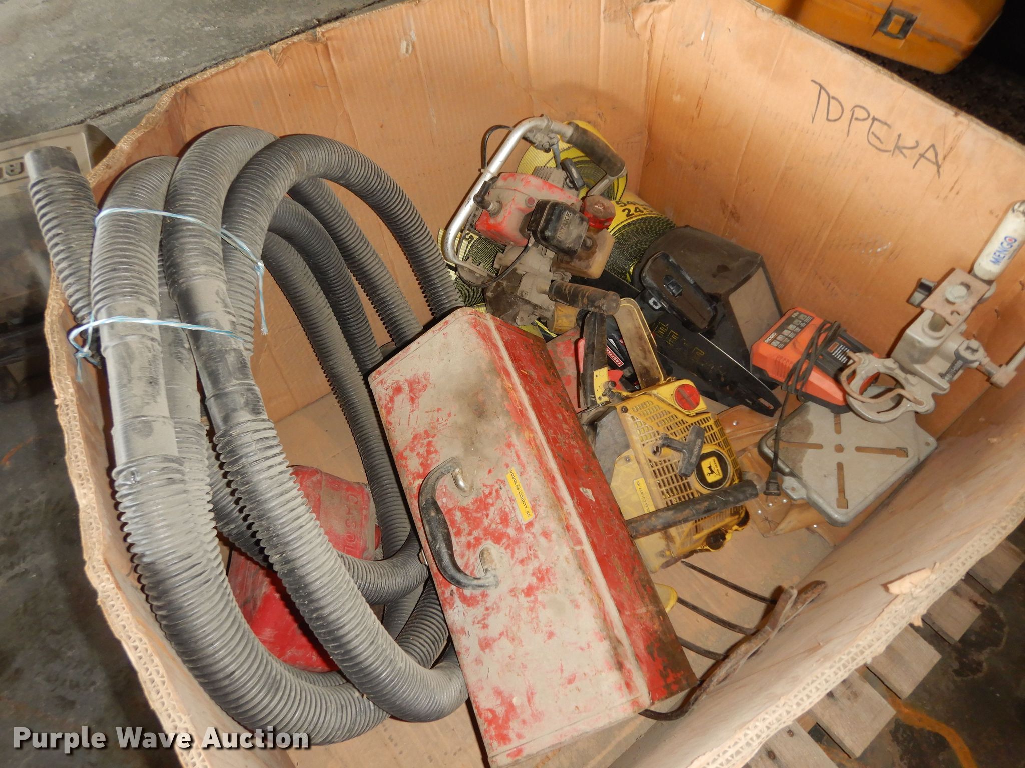 Purple Wave is selling a used Tools in Kansas. This item is a Tools with the following: Shop vac, Hose, Lights, Tripods, Toolboxes, Chainsaws, Straps, Bolt cutters, Strobe, Chain hoist, Craftsman circular saw, Craftsman reciprocating saw, Bosch hammer, Bosch Panther reciprocating saw and more