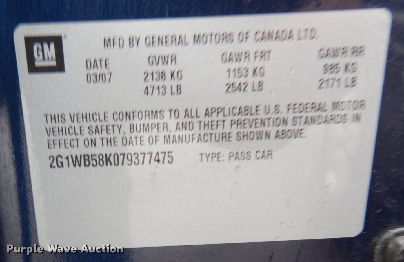 Purple Wave is selling a used Passenger Vehicle in Minnesota. This item is a 2007 Chevrolet Impala LS with the following: Miles: 63,177 on odometer, VIN: 2G1WB58K079377475
