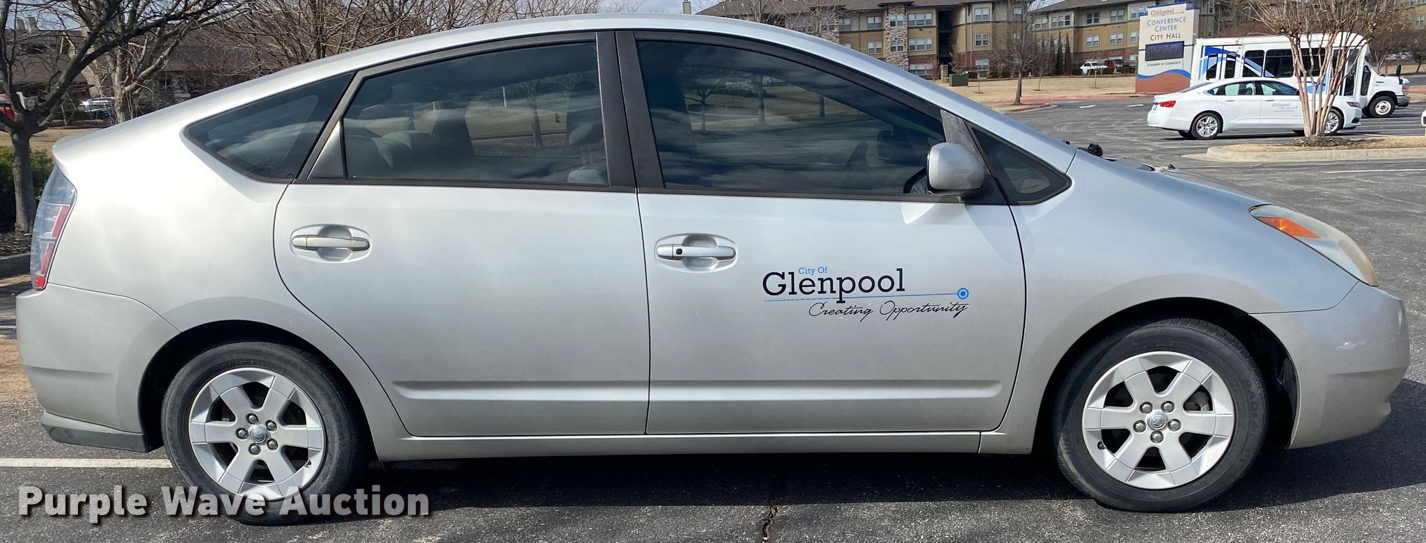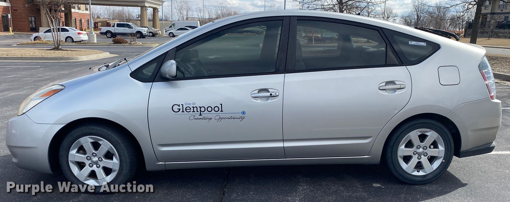 2005 Toyota Prius. Miles: 82,156 on odometer, VIN: JTDKB20U453011218. Engine Displacement: 1.5L L4 DOHC, Cylinders: 4, Fuel type: Hybrid. Transmission Automatic. Interior AC, Heat, Power windows, Power locks, Cruise control. Tires Size: 185/65R15. Oklahoma title. Seller is a government entity who will be assigning and distributing the title. Please contact the seller for distribution questions. Title distribution may be delayed up to 30 days from verification of funds. City of Glenpool. 12205 South Yukon Avenue. Glenpool, OK 74033