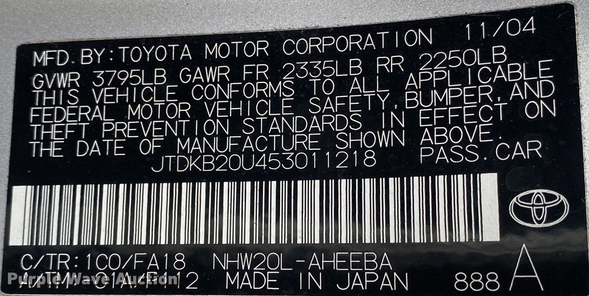 - VIN: JTDKB20U453011218