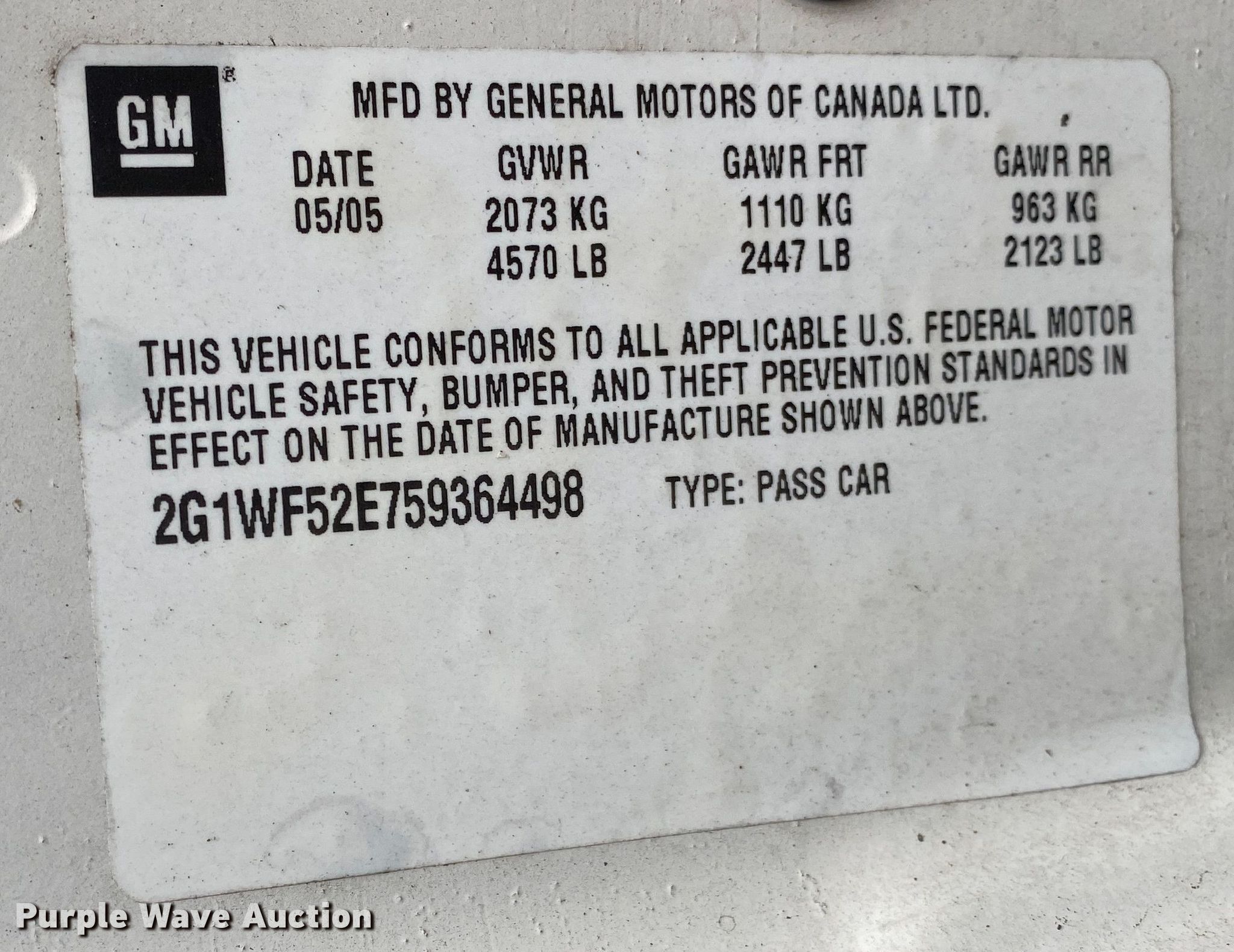 Purple Wave is selling a used Passenger Vehicle in Oklahoma. This item is a 2005 Chevrolet Impala with the following: Miles: Unknown, VIN: 2G1WF52E759364498