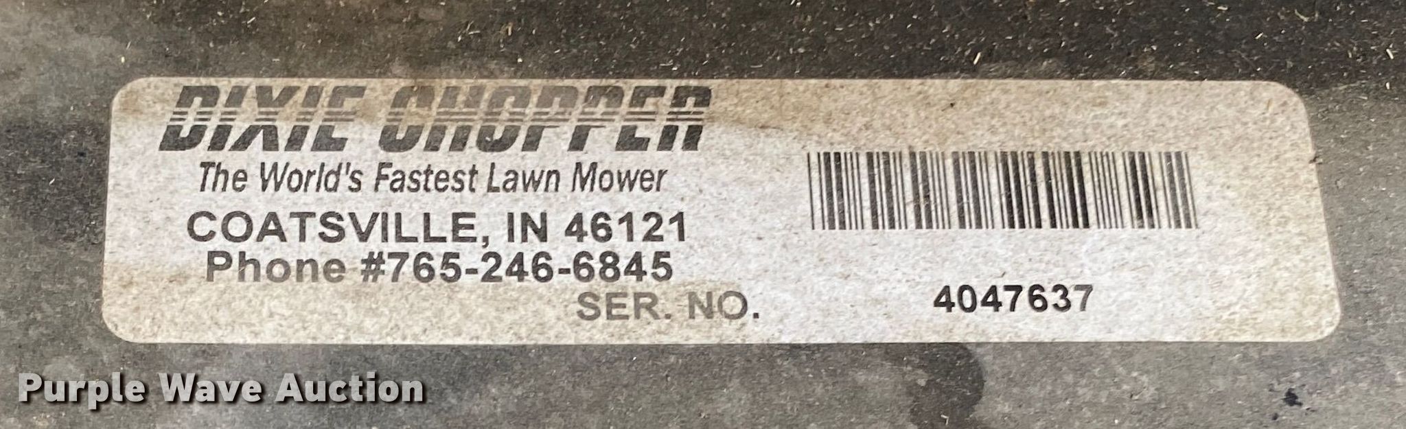 Purple Wave is selling a used Commercial Turf Mower in Oklahoma. This item is a Dixie Chopper XT3200 ZTR lawn mower with the following: Hours: Unknown, Cutting width: 60", Serial: 4047637