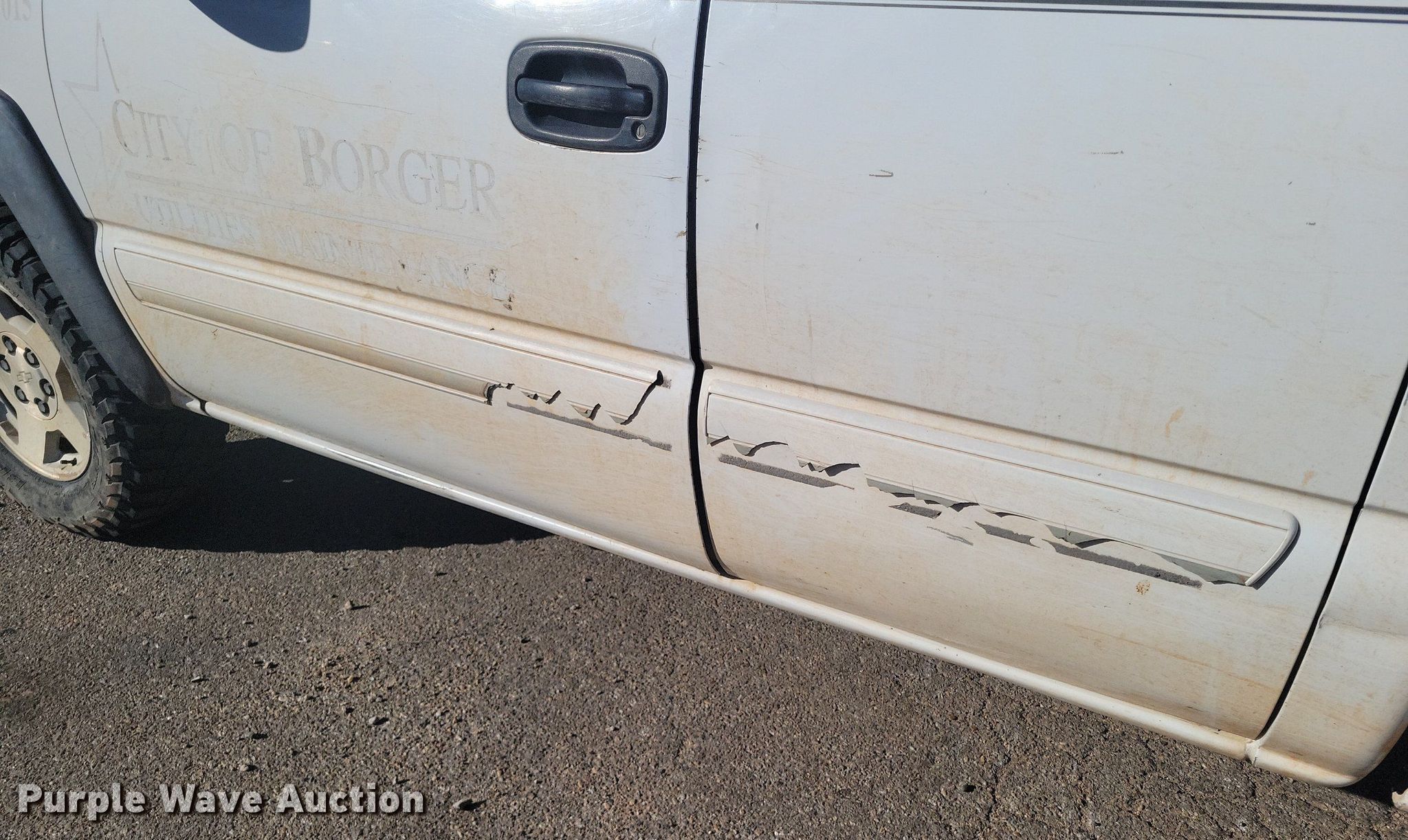 2003 Chevrolet Silverado 1500 Ext. Cab pickup truck. Miles: 189,793 on odometer, VIN: 1GCEK19T73Z112037. Engine Displacement: 5.3L V8 OHV, Cylinders: 8, Fuel type: Gas. Transmission Automatic, Four wheel drive. Interior AC, Heat, Power windows, Power locks, Cruise control. Tires Size: 265/70R17. Notes Windshield chipped or cracked, Hail damage. Texas title. Title distribution may be delayed up to 30 days from verification of funds. City of Borger. 801 N Florida St. Borger, TX 79007