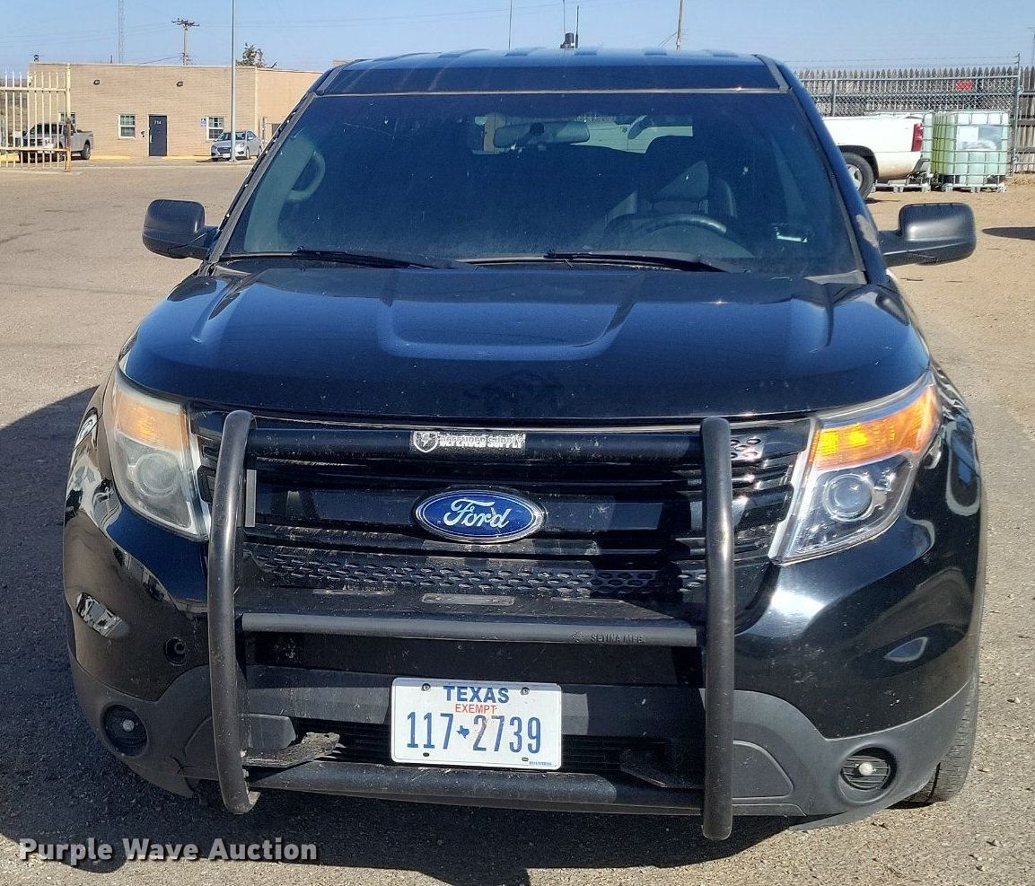 2014 Ford Explorer Police Interceptor SUV. Miles: 90,930 on odometer, VIN: 1FM5K8ARXEGB38389. Engine Displacement: 3.7L V6 DOHC, Cylinders: 6, Fuel type: Gas. Transmission Automatic. Interior AC, Heat, Seat: Power driver, Power windows, Power locks, Cruise control. Tires Size: 245/55R18. Notes Windshield chipped or cracked, Center console missing. Texas title. Title distribution may be delayed up to 30 days from verification of funds. City of Borger. 801 N Florida St. Borger, TX 79007