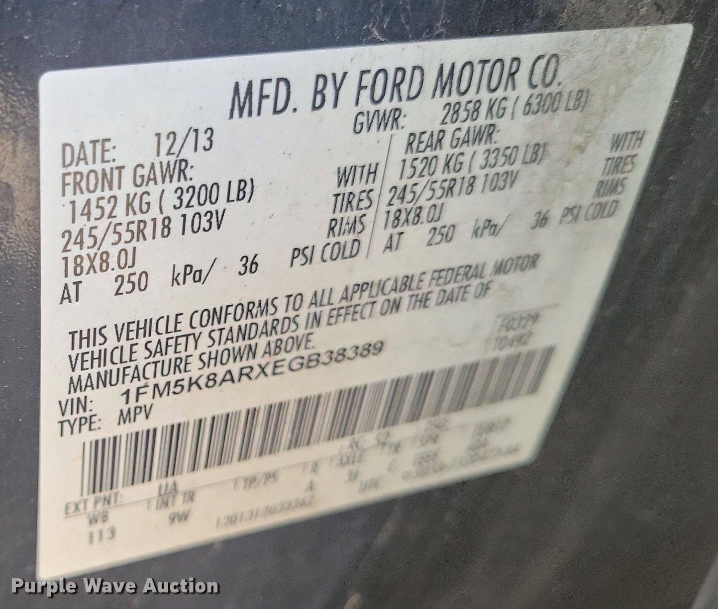 - VIN: 1FM5K8ARXEGB38389
