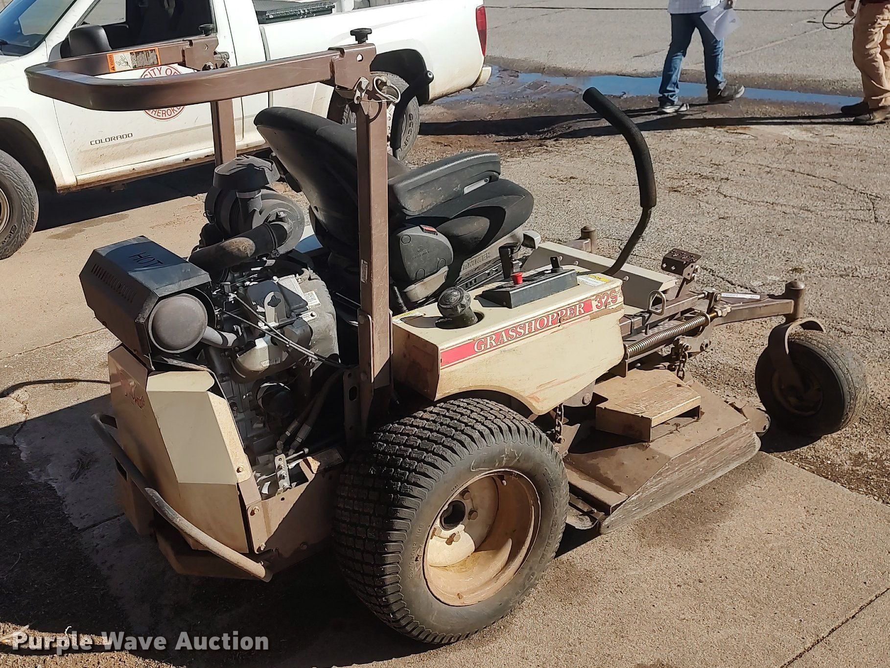 Purple Wave is selling a used Lawn Mower in Oklahoma. This item is a Grasshopper 329B ZTR lawn mower with the following: Hours: 923 on meter, Cutting width: 52", Serial: 6718527