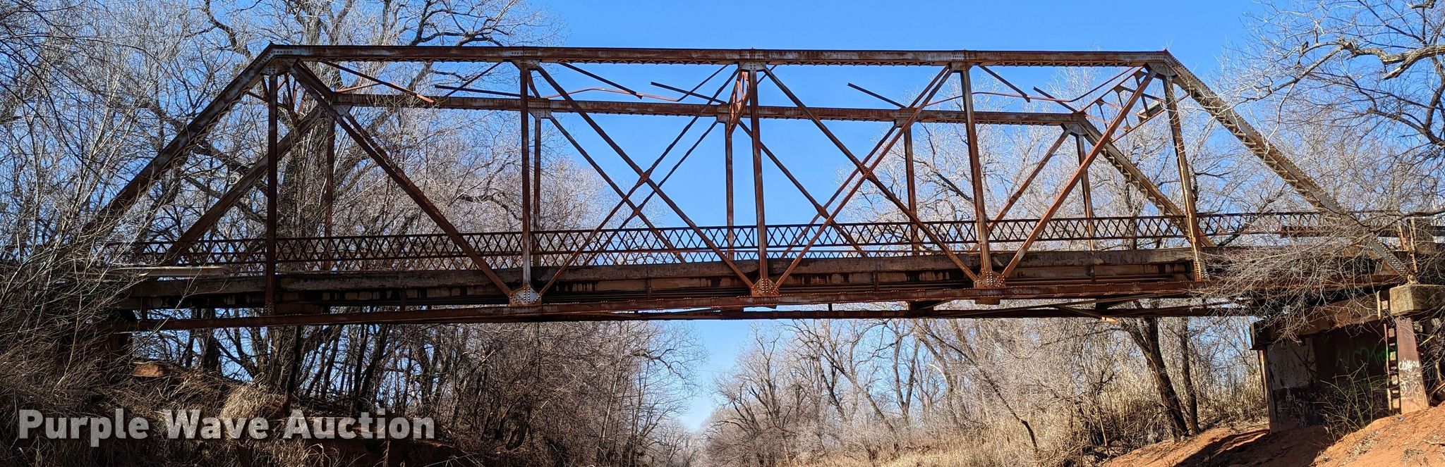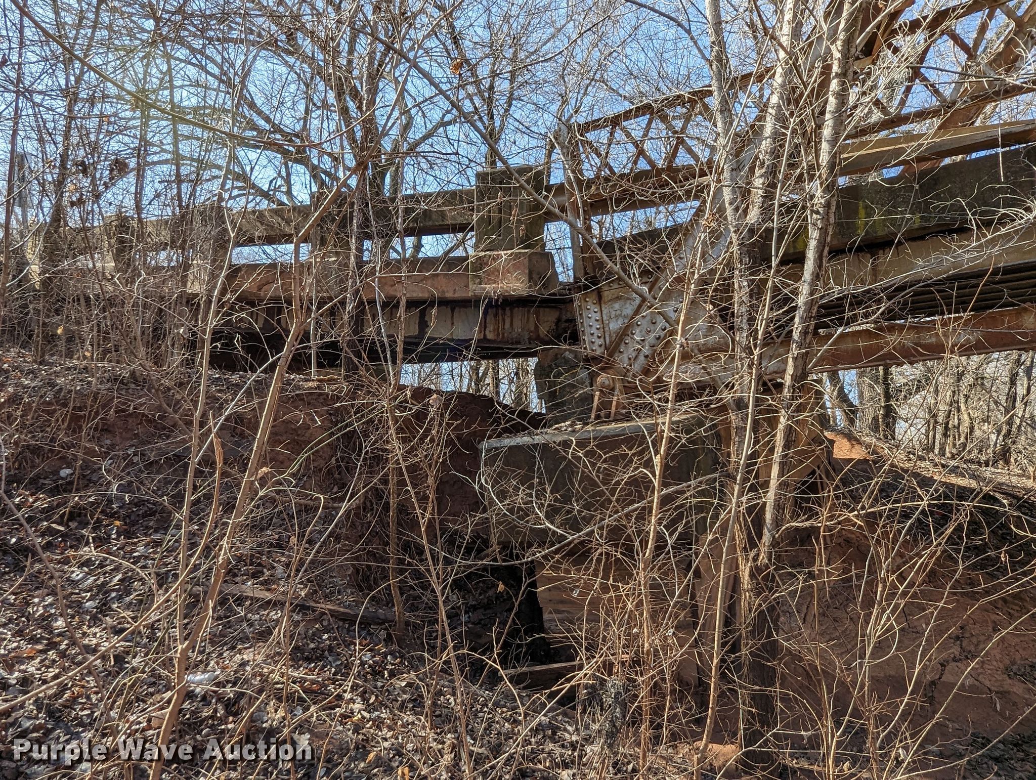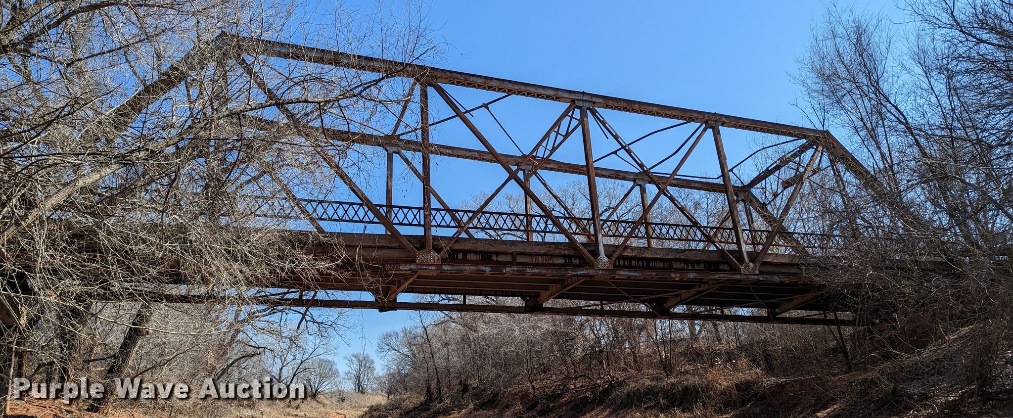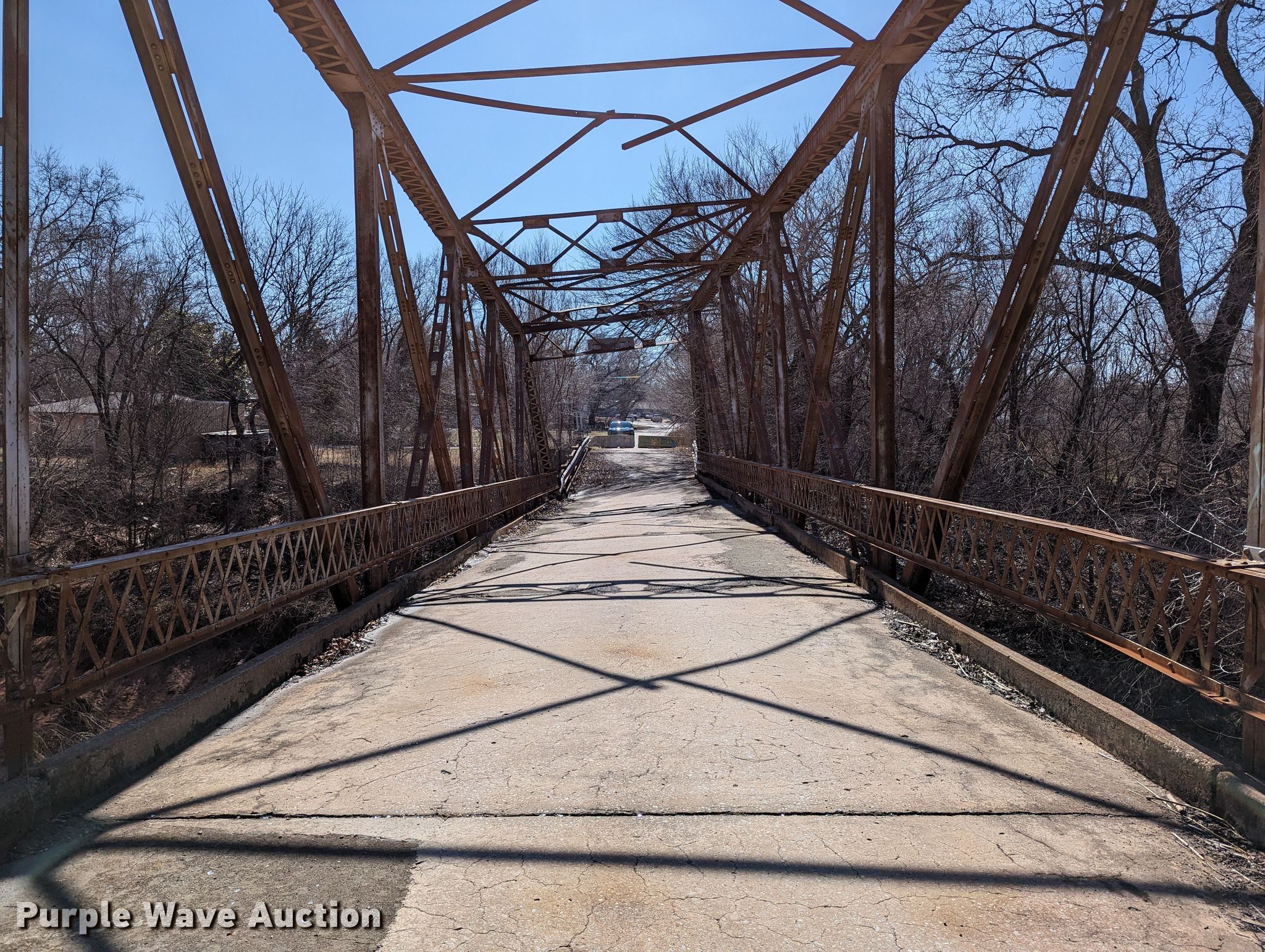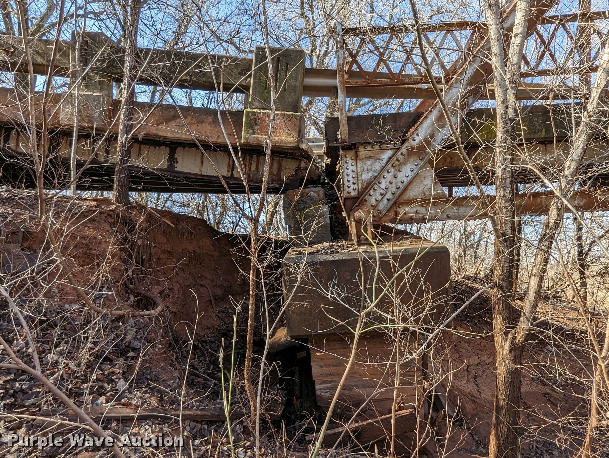 Purple Wave is selling a used Building Materials in Oklahoma. This item is a 1927 JB Klein Iron & Foundry Co bridge with the following: Overall dimensions: 120' L x 20' 8" W, Interior width: 17', Height clearance: 15'4", Approach: 30', Truss width: 16", I-beam dimensions:, 12" H x 6.25" W, 15" H x 5.50" W, 24" H x 9" W
