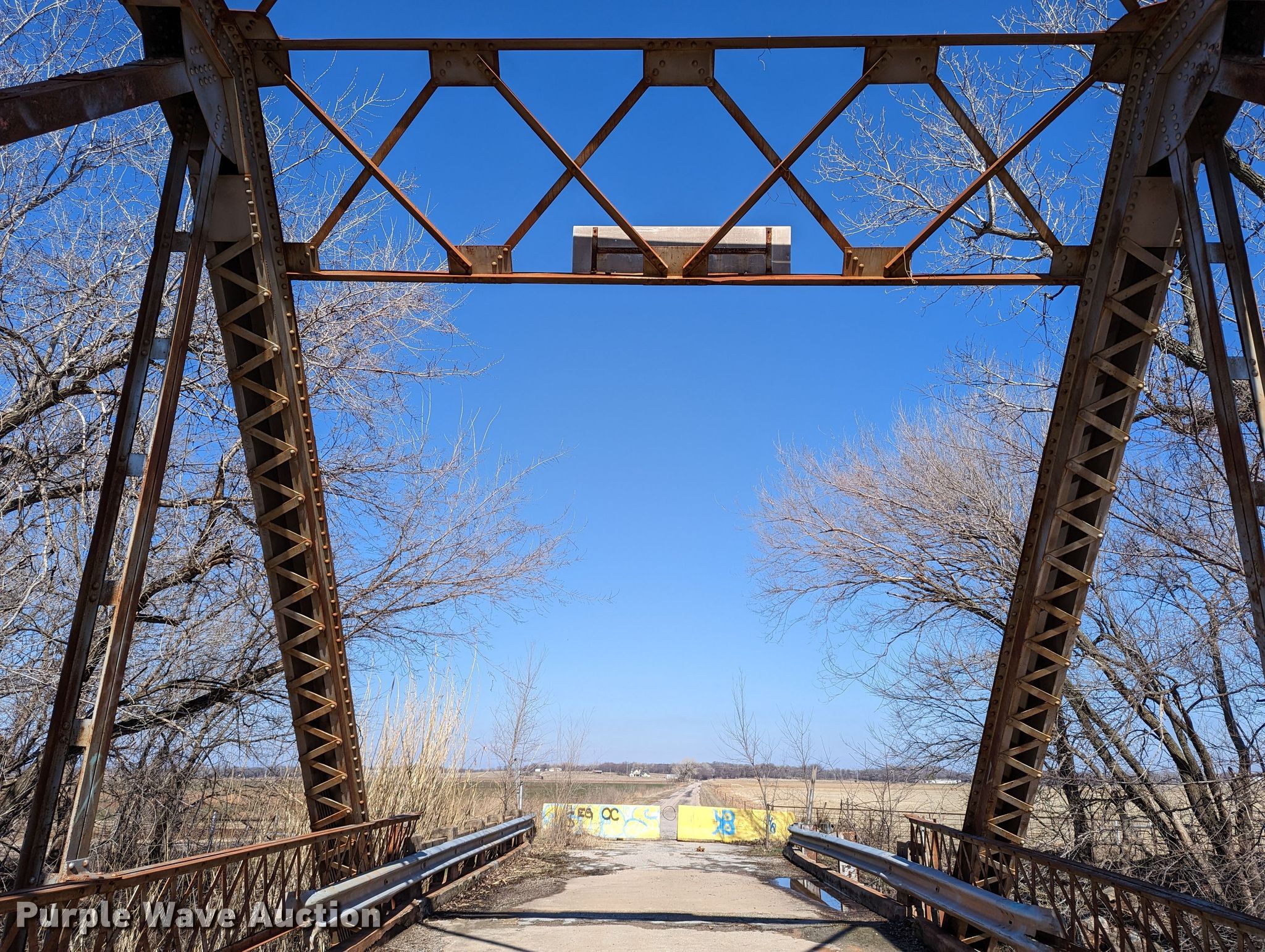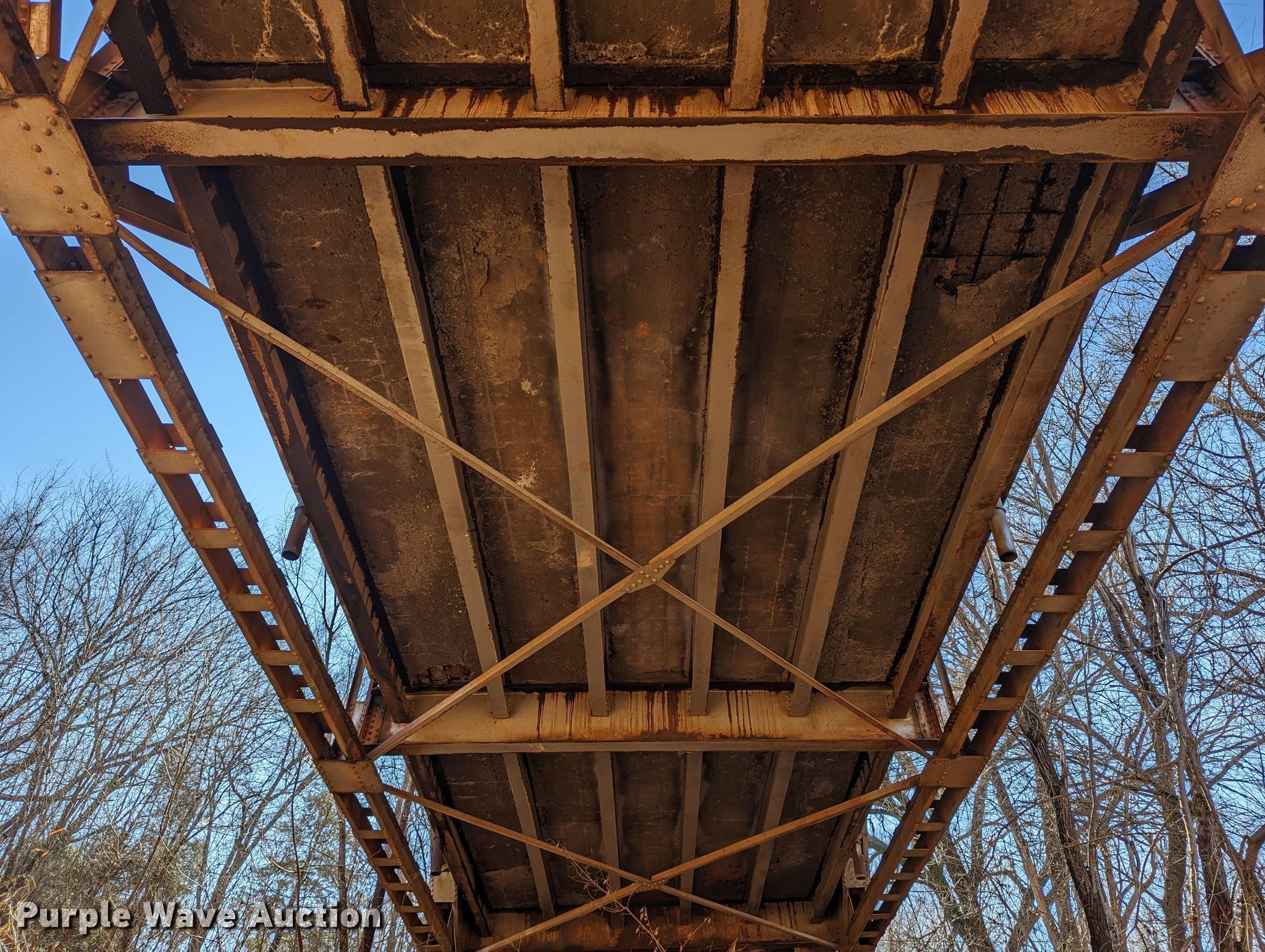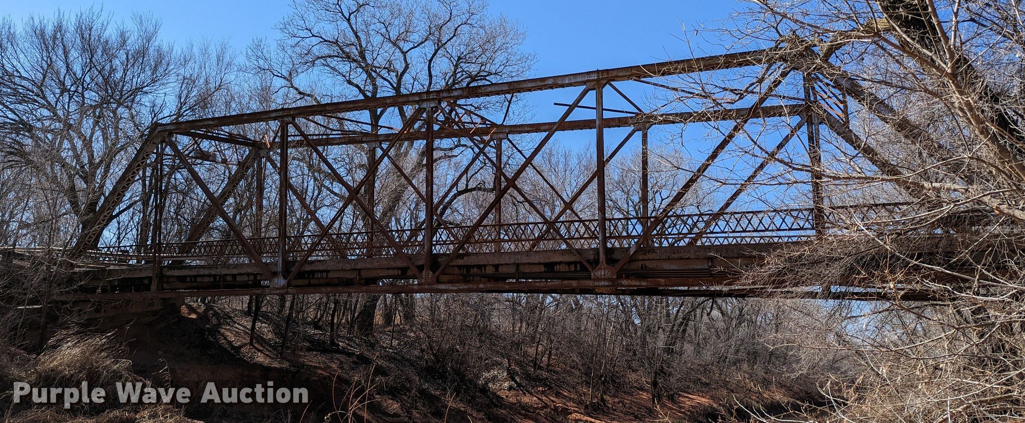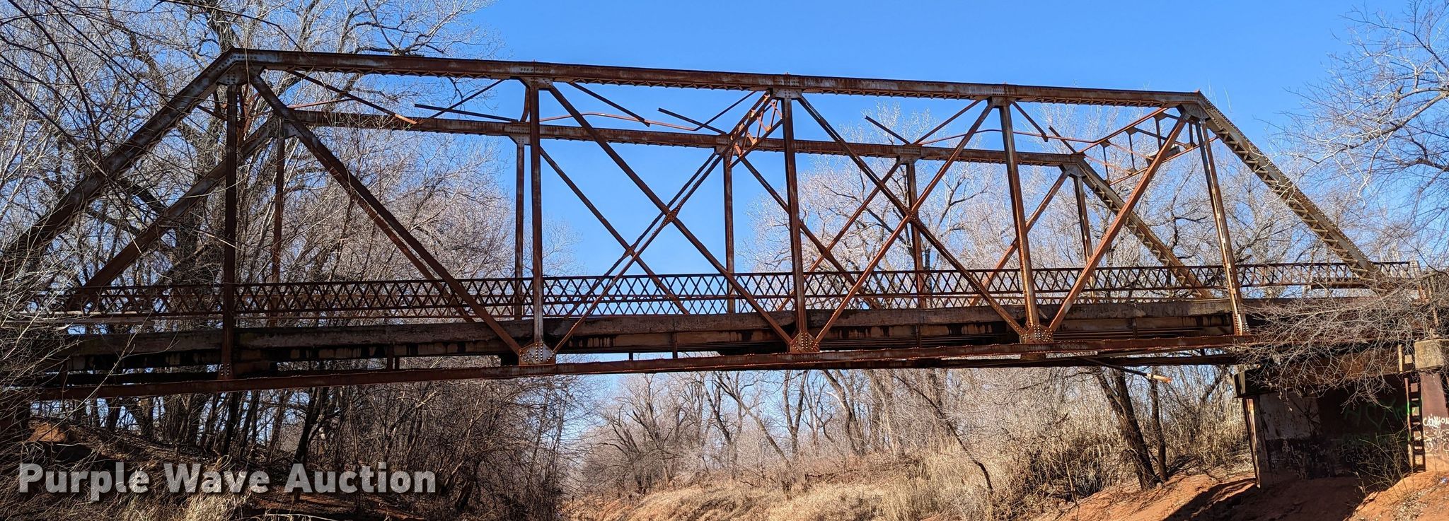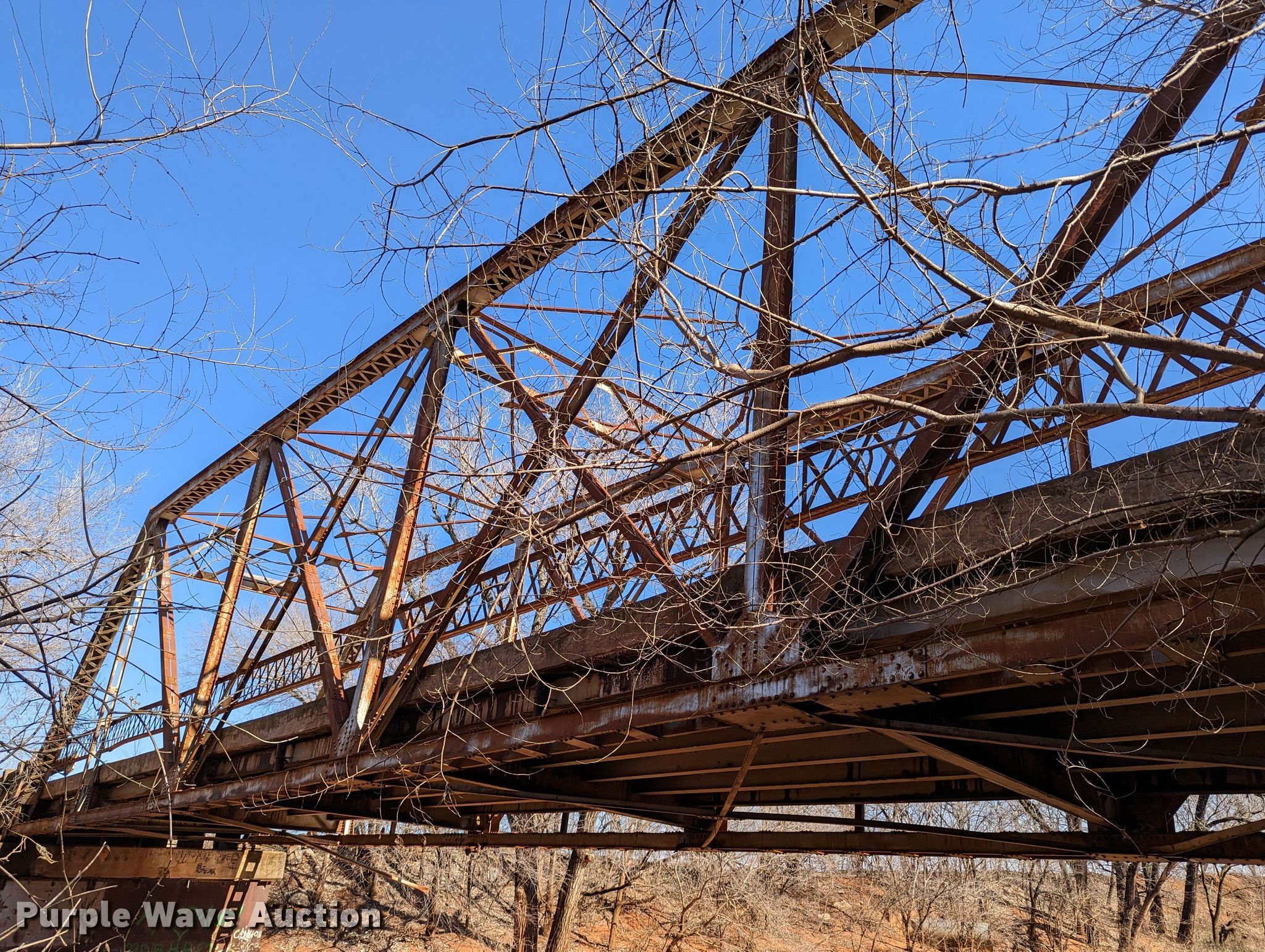 Purple Wave is selling a used Building Materials in Oklahoma. This item is a 1927 JB Klein Iron & Foundry Co bridge with the following: Overall dimensions: 120' L x 20' 8" W, Interior width: 17', Height clearance: 15'4", Approach: 30', Truss width: 16", I-beam dimensions:, 12" H x 6.25" W, 15" H x 5.50" W, 24" H x 9" W