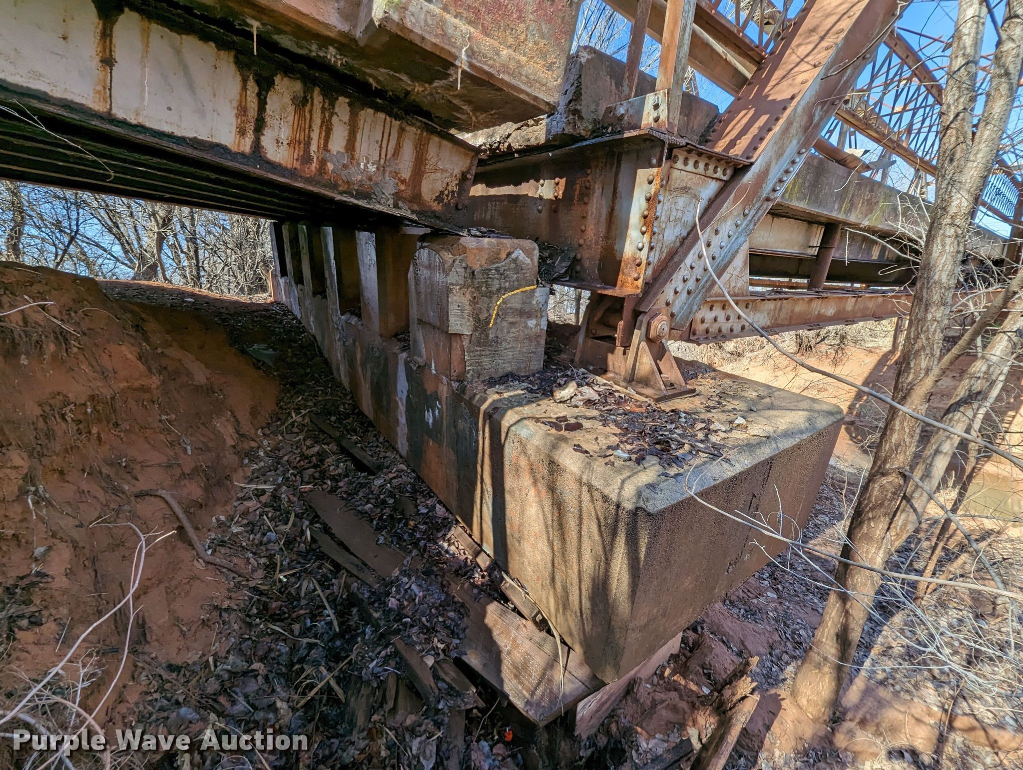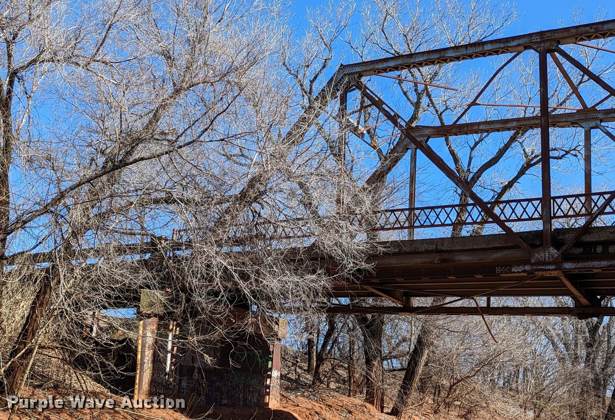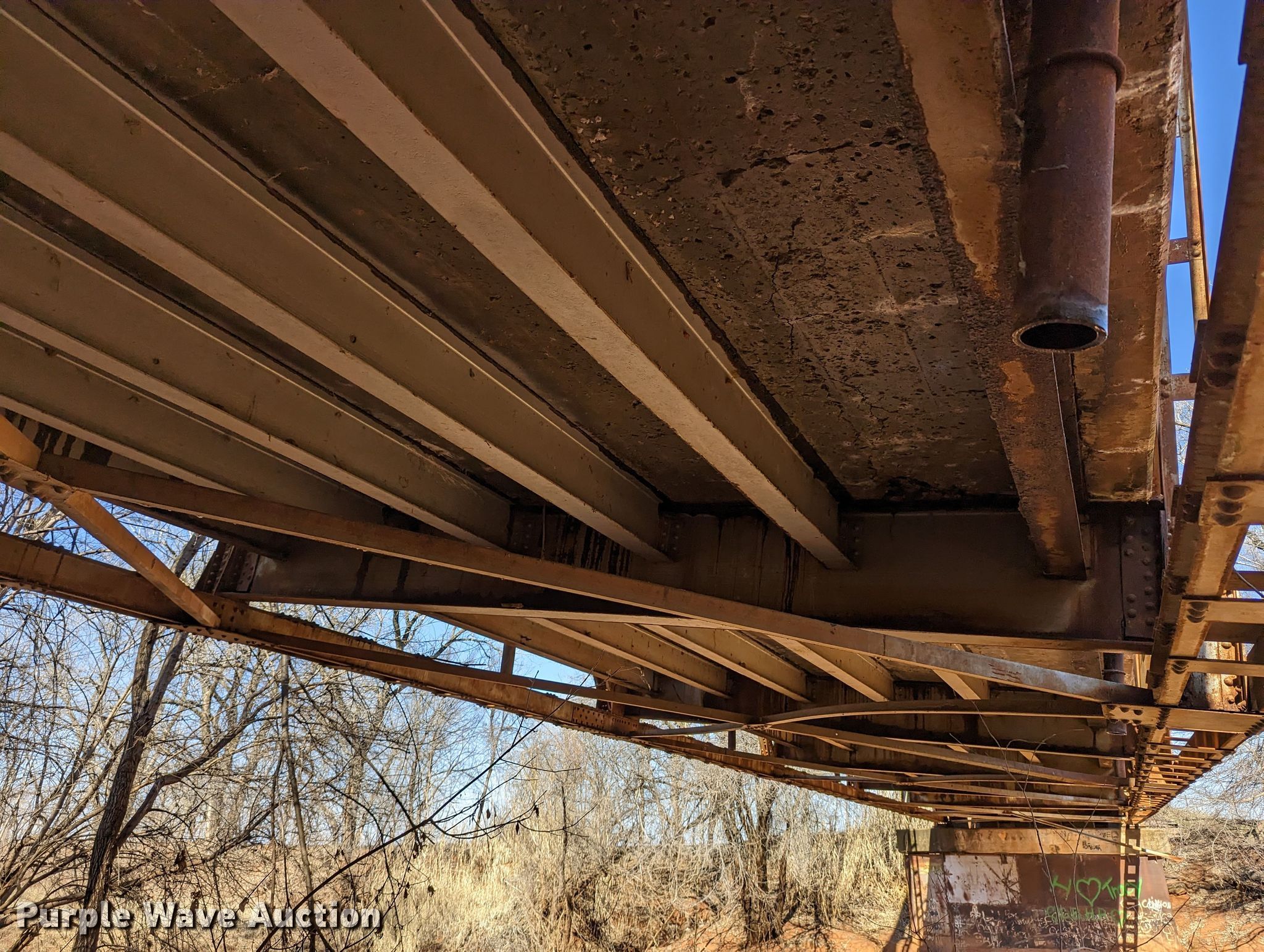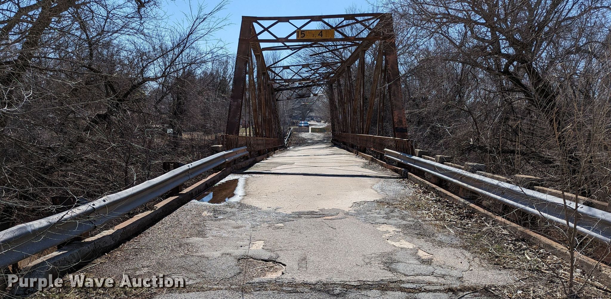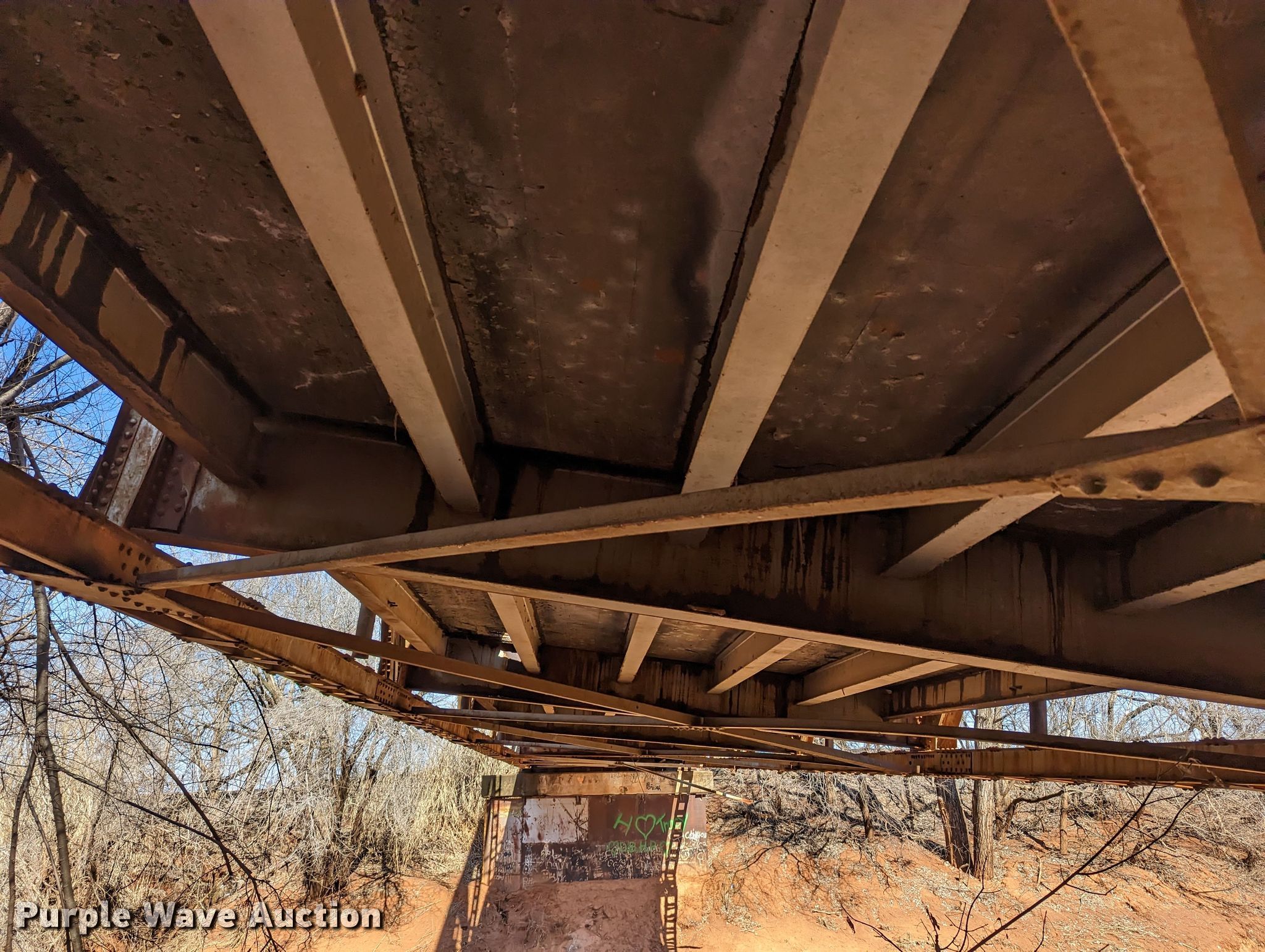 Purple Wave is selling a used Building Materials in Oklahoma. This item is a 1927 JB Klein Iron & Foundry Co bridge with the following: Overall dimensions: 120' L x 20' 8" W, Interior width: 17', Height clearance: 15'4", Approach: 30', Truss width: 16", I-beam dimensions:, 12" H x 6.25" W, 15" H x 5.50" W, 24" H x 9" W