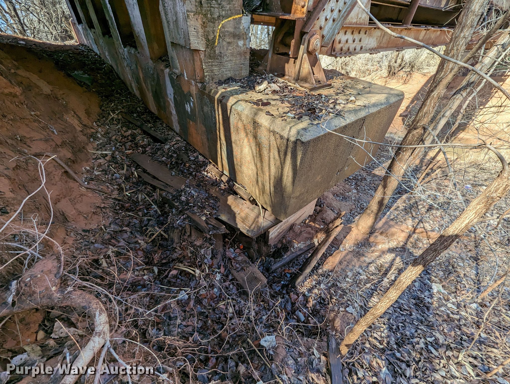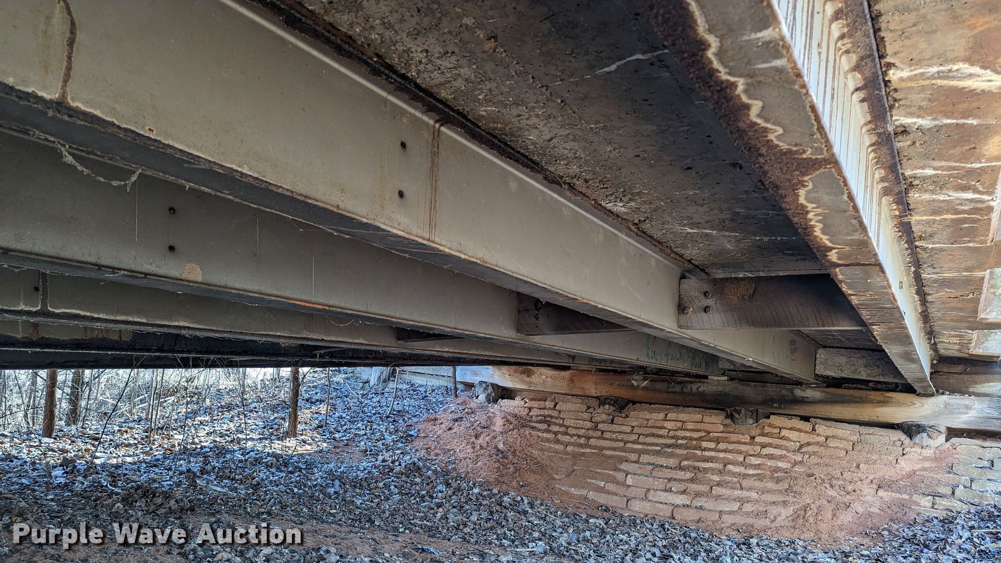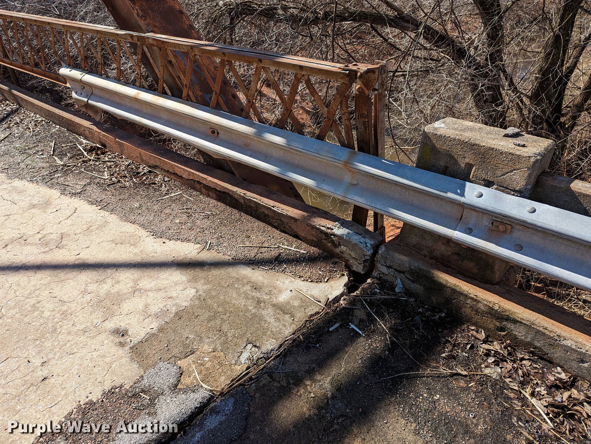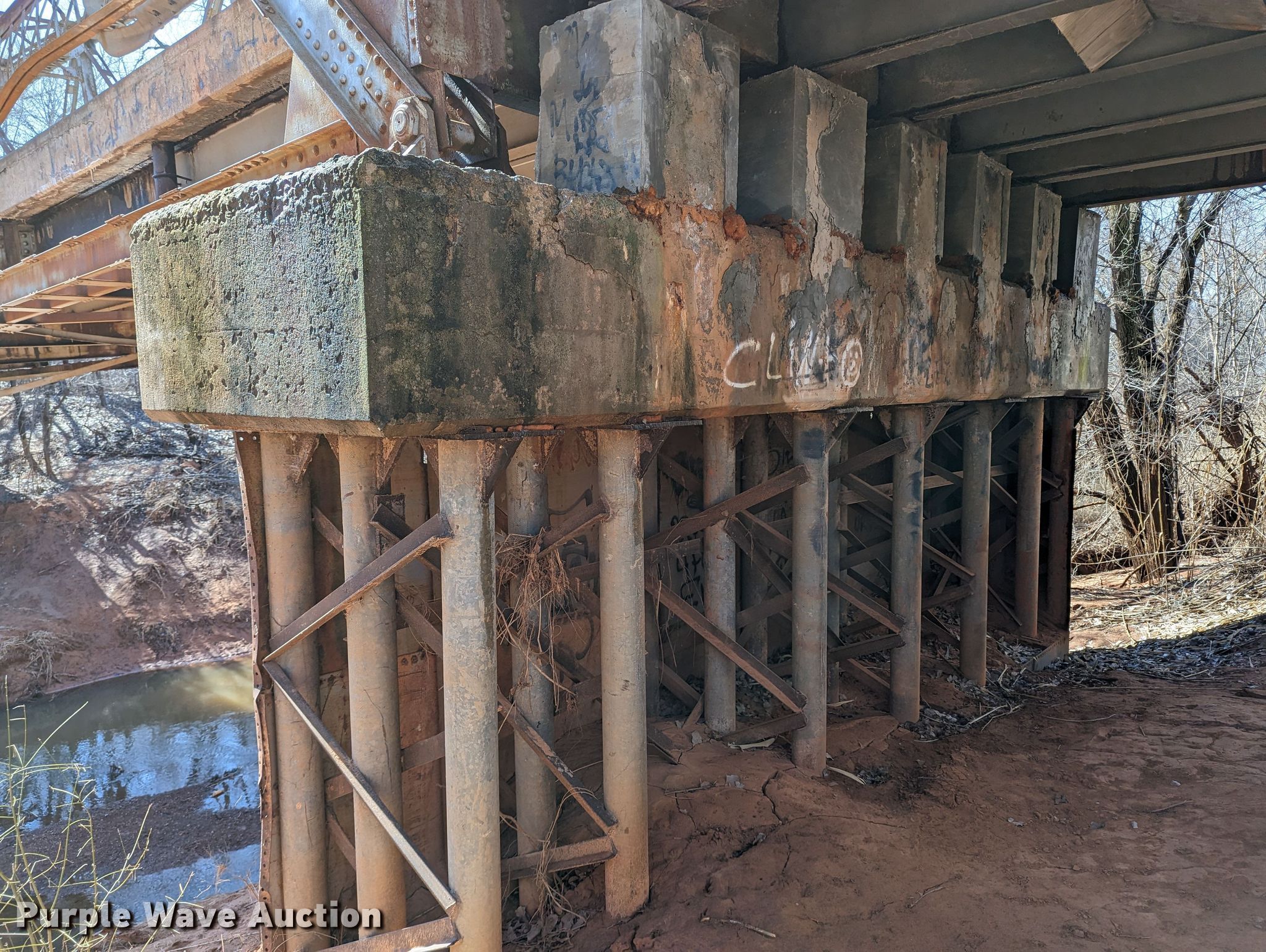 1927 JB Klein Iron & Foundry Co bridge. Overall dimensions: 120' L x 20' 8" W, Interior width: 17', Height clearance: 15'4", Approach: 30', Truss width: 16", I-beam dimensions: 12" H x 6.25" W, 15" H x 5.50" W, 24" H x 9" W. Notes Inspection report available upon email request to [email protected], Structural integrity compromised on the southeast corner of the structure. All aspects of disassembly and removal are the responsibility of the buyer. McClain County. North Walnut Creek Avenue. Washington, OK 73093
