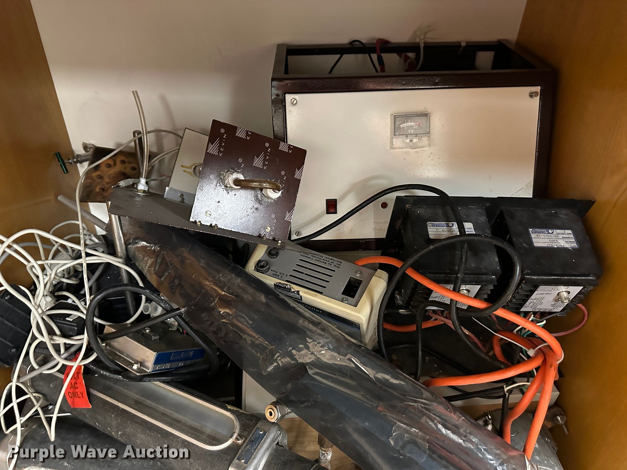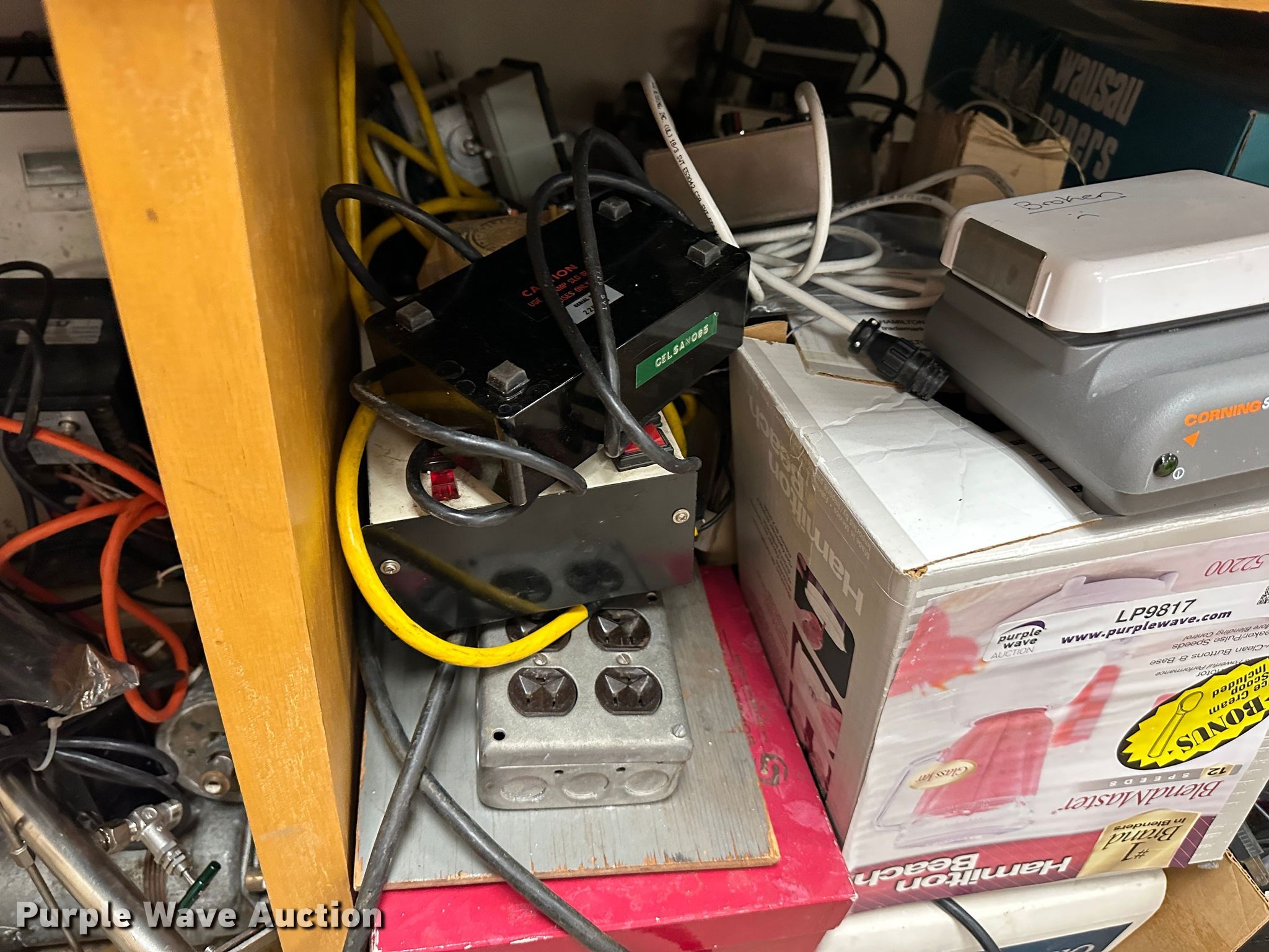 Purple Wave is selling a used Office Supplies and Equip. in Kansas. This item is a Lab equipment with the following: Virtis Omni-Culture fermenter, Cole Palmer gear pump controller, (4) Omega Engineering PHCN-410 temperature controller, Masterflex controller, Hamilton Beach Blendmaster blender, 350 watts, ELC T-1000 transformer, 120/240 Volts, Barometer, Lab membranes, ISCO Foxy Jr fraction collector, Transformer, SHJZ-2000VA, Darkfield Quebec American Optical colony counter, Desicator, Kendal Ultrasonic cleaner, HB-S-23DHT, 120 watts, Science Ware magnetic stirrer, Alab, LLC membrane, Serial: 070342, Glass capillary and more