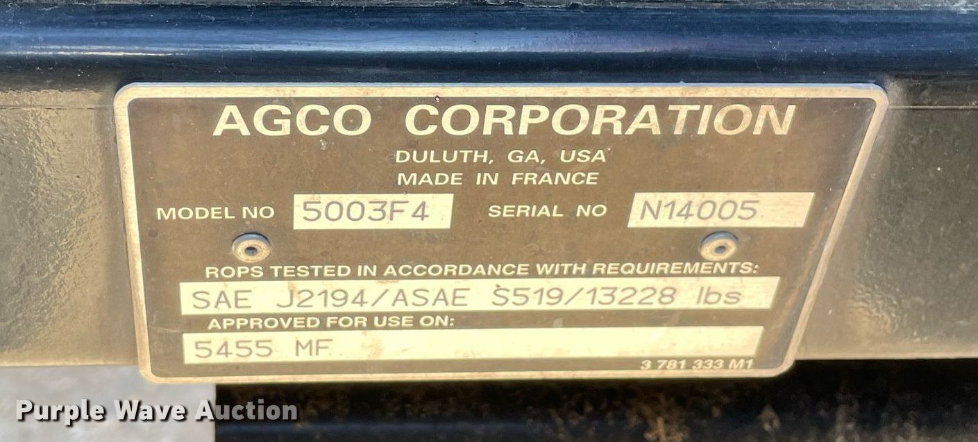 Purple Wave is selling a used Tractor in Illinois. This item is a 2004 Massey Ferguson 5455 MFWD tractor with the following: Serial: N14005, Unit #: 07-7