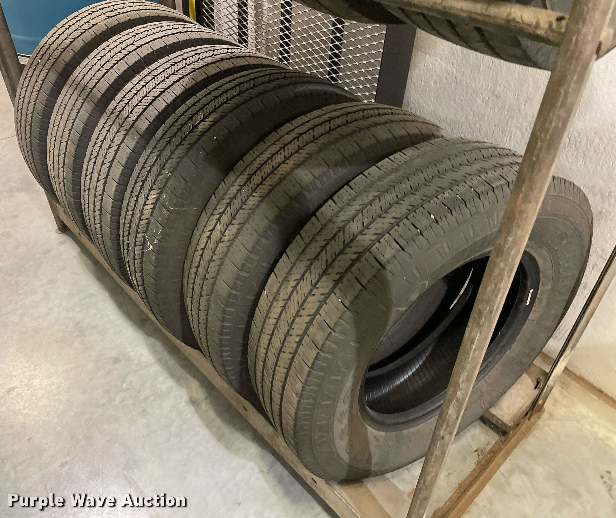Purple Wave is selling a used Fleet Tires in Kansas. This item is a (10) 225/75R16 tires with the following: Storage rack not included