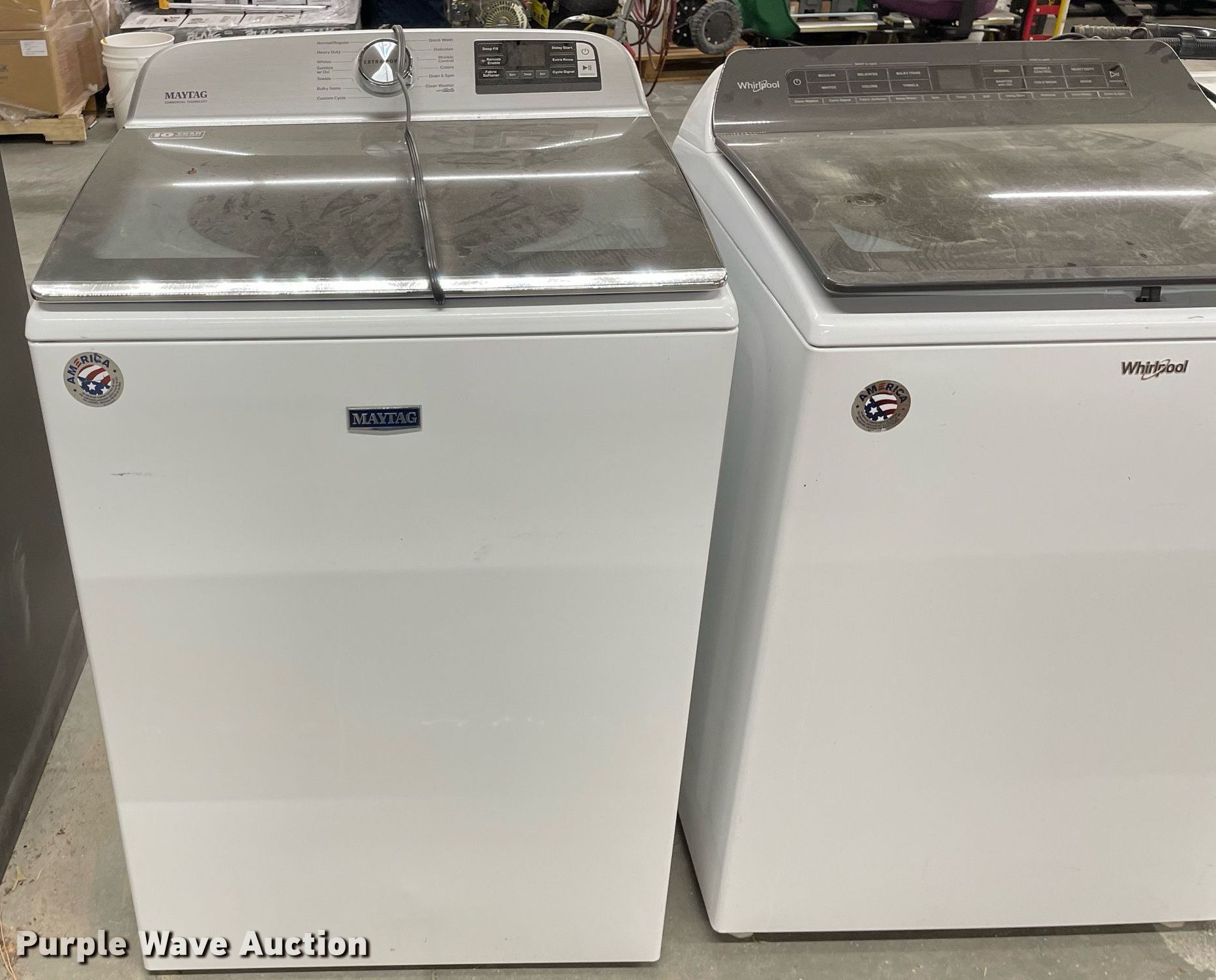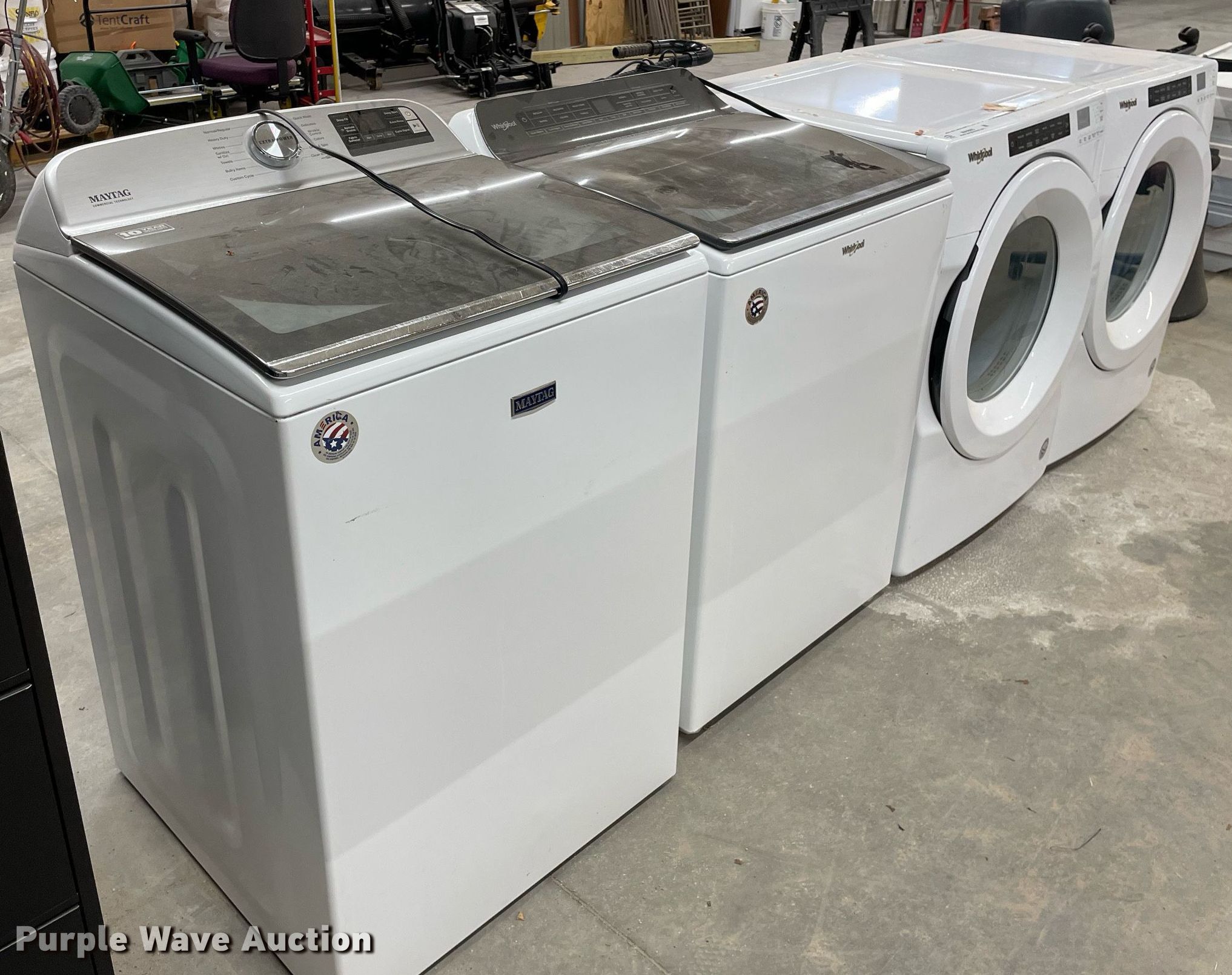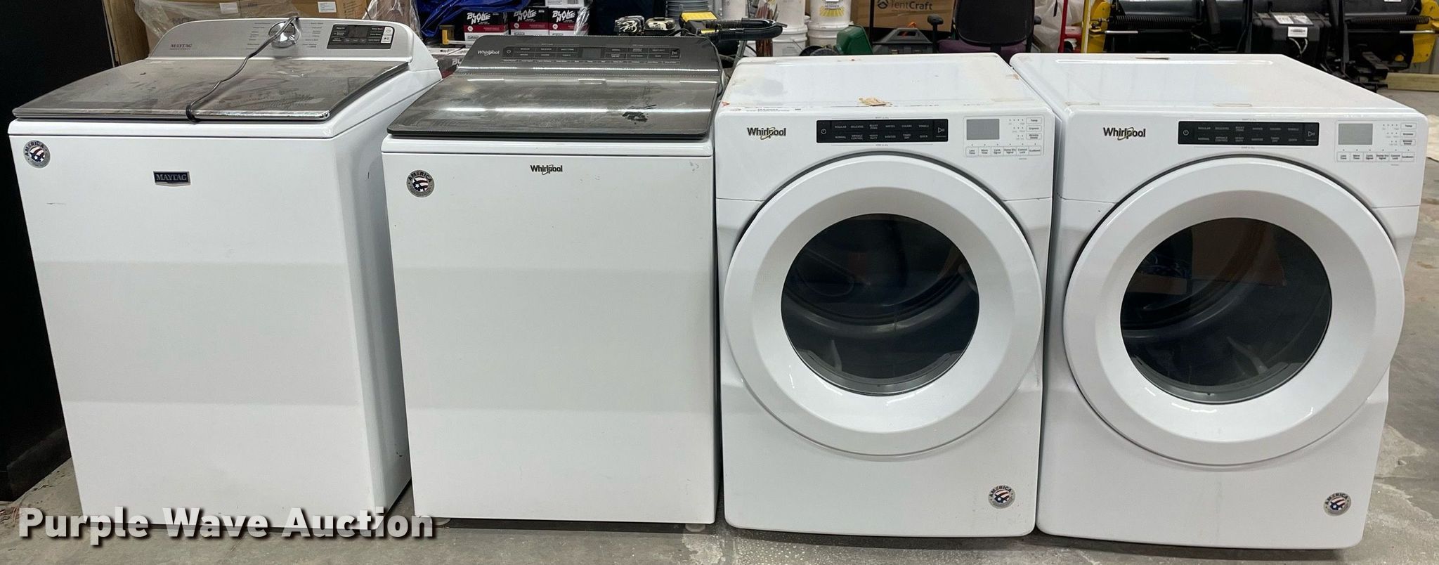 Purple Wave is selling a used Appliances in Kansas. This item is a Appliances with the following: Maytag washer, Whirlpool washer, (2) Whirlpool dryers