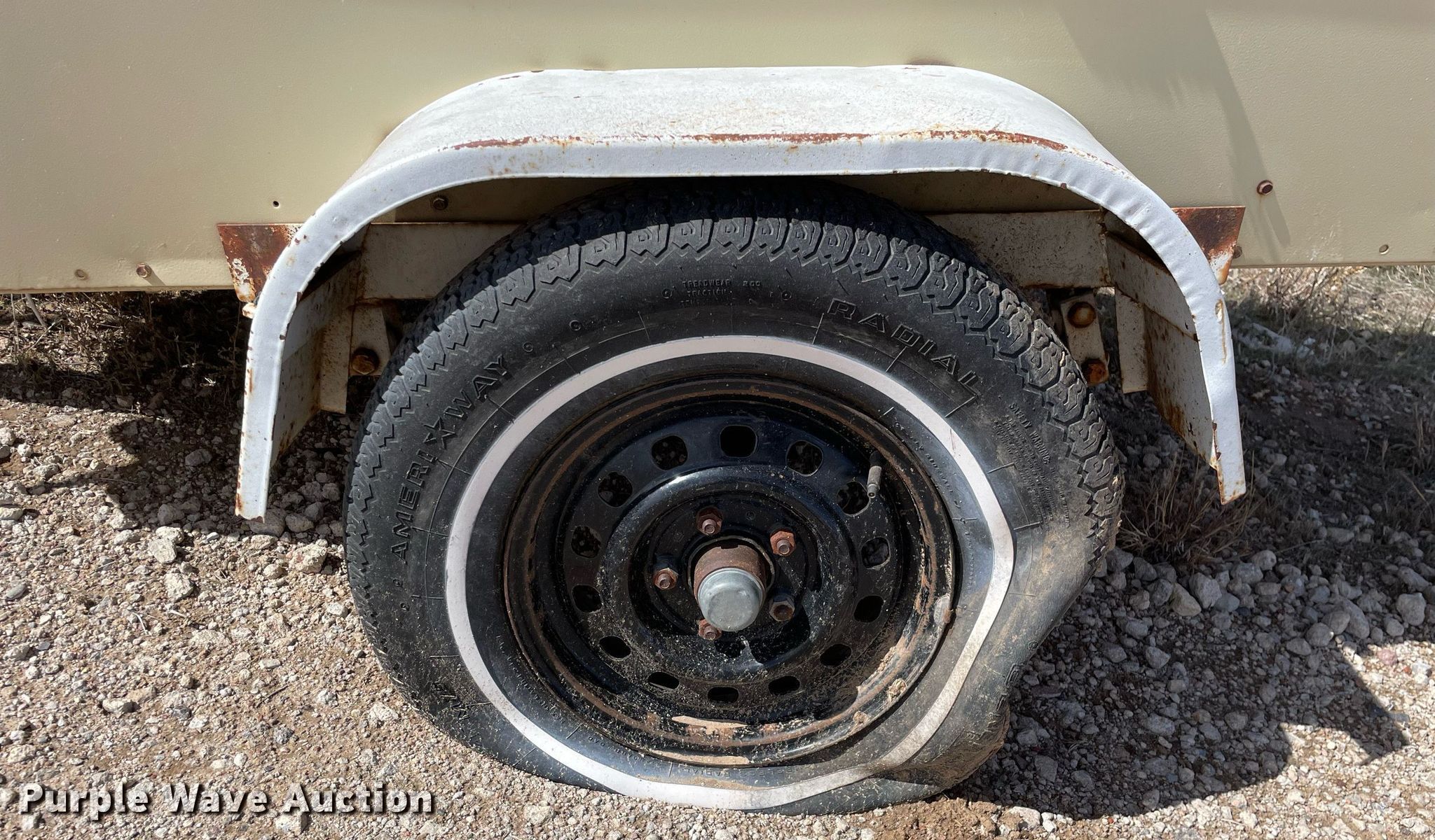 1998 Ingersoll Rand 185 air compressor. Hours: Unknown, VIN: 285734UAI222, Serial: S09651050-100. Engine John Deere, Displacement: 4.5L, Cylinders: 4, Fuel type: Diesel. Features PSI: 150. Trailer 12' L x 64" W, Suspension: Spring, Axles: Single, Tire size: 205/75R14. Notes Tires flat, Non-operational unit. Reno County. 3800 West Clark Road. Hutchinson, KS 67501