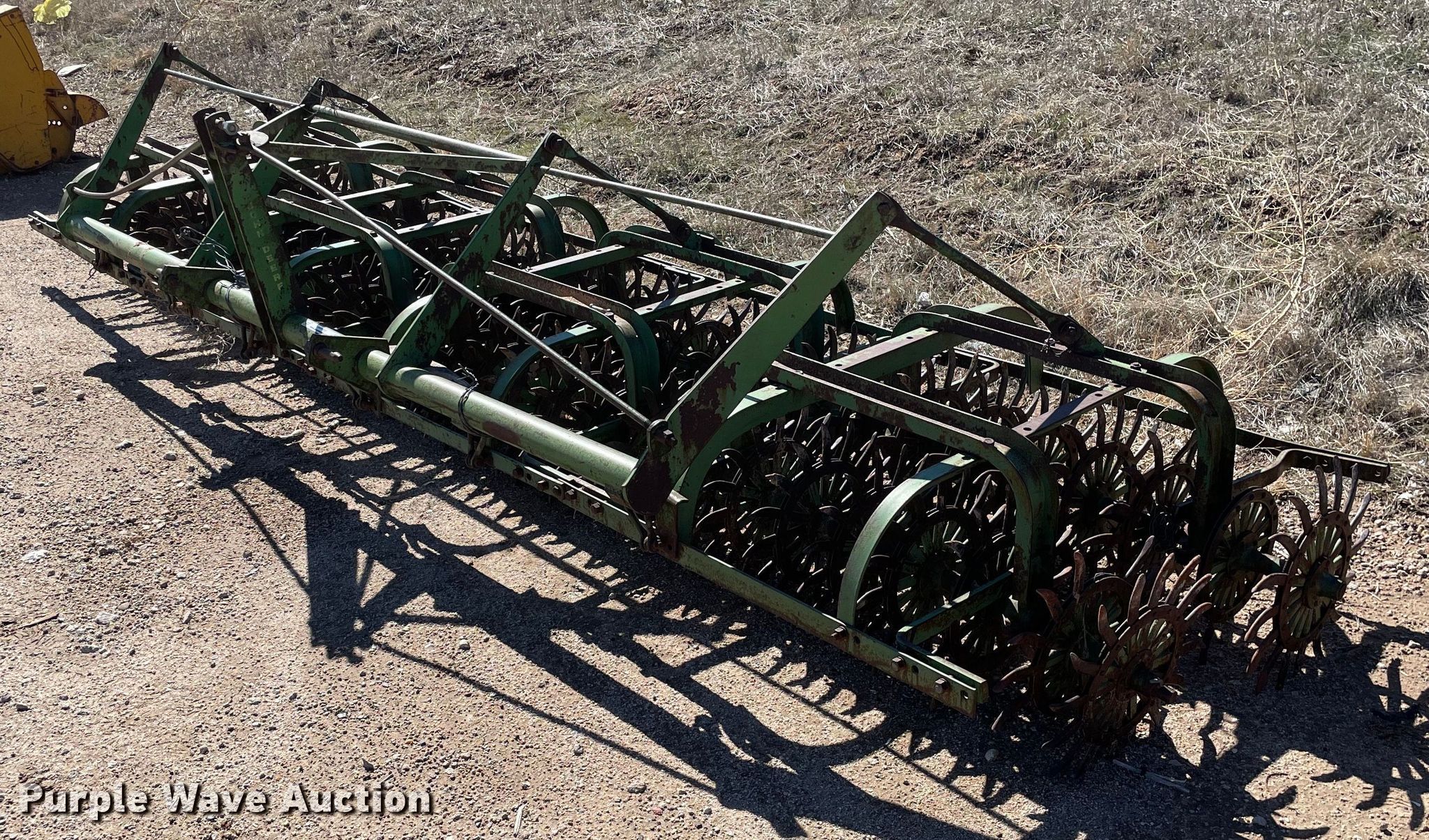 Purple Wave is selling a used Rotary Tillage in Kansas. This item is a John Deere rotary hoe with the following: Overall width: 14' 9"