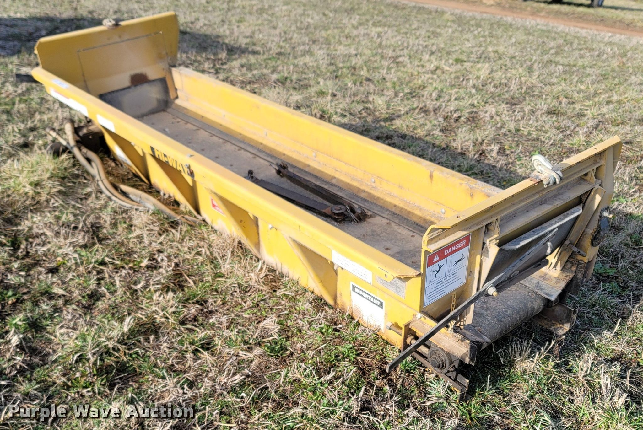 Purple Wave is selling a used Ag Tractor Loader or Attach. in Missouri. This item is a Hi-way TGC18 feeder box with the following: Serial: 12283, Length: 34", Width: 101", 14" W conveyor, Side discharge, Three point, Hydraulic driven, Unknown operating condition