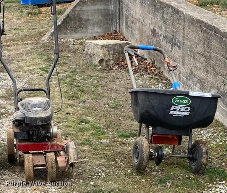 Purple Wave is selling a used Lawn and Garden in Missouri. This item is a Lawn and garden equipment with the following: Scott's pro edge guard seed spreader, Agri-Fab aerator, Bolens gas edger, 3.5 HP, Craftsman, Fuel: Gas, 5.5 HP, Coleman Power 2500 generator, Fuel: Gas, Unknown operating conditions