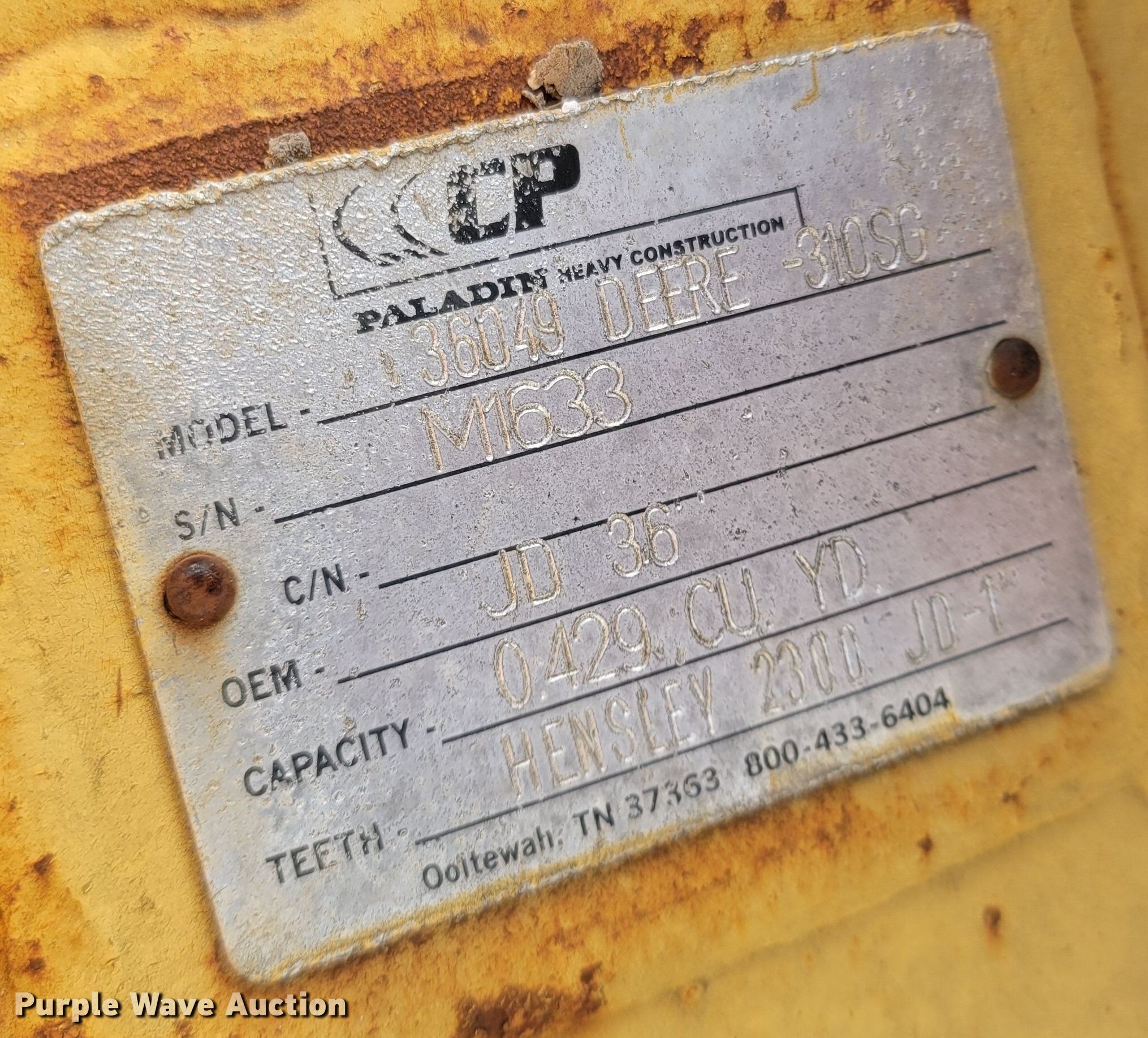 Purple Wave is selling a used Backhoe Attach. in Missouri. This item is a CP 36049 Deere-310SG backhoe bucket with the following: Serial: M1633