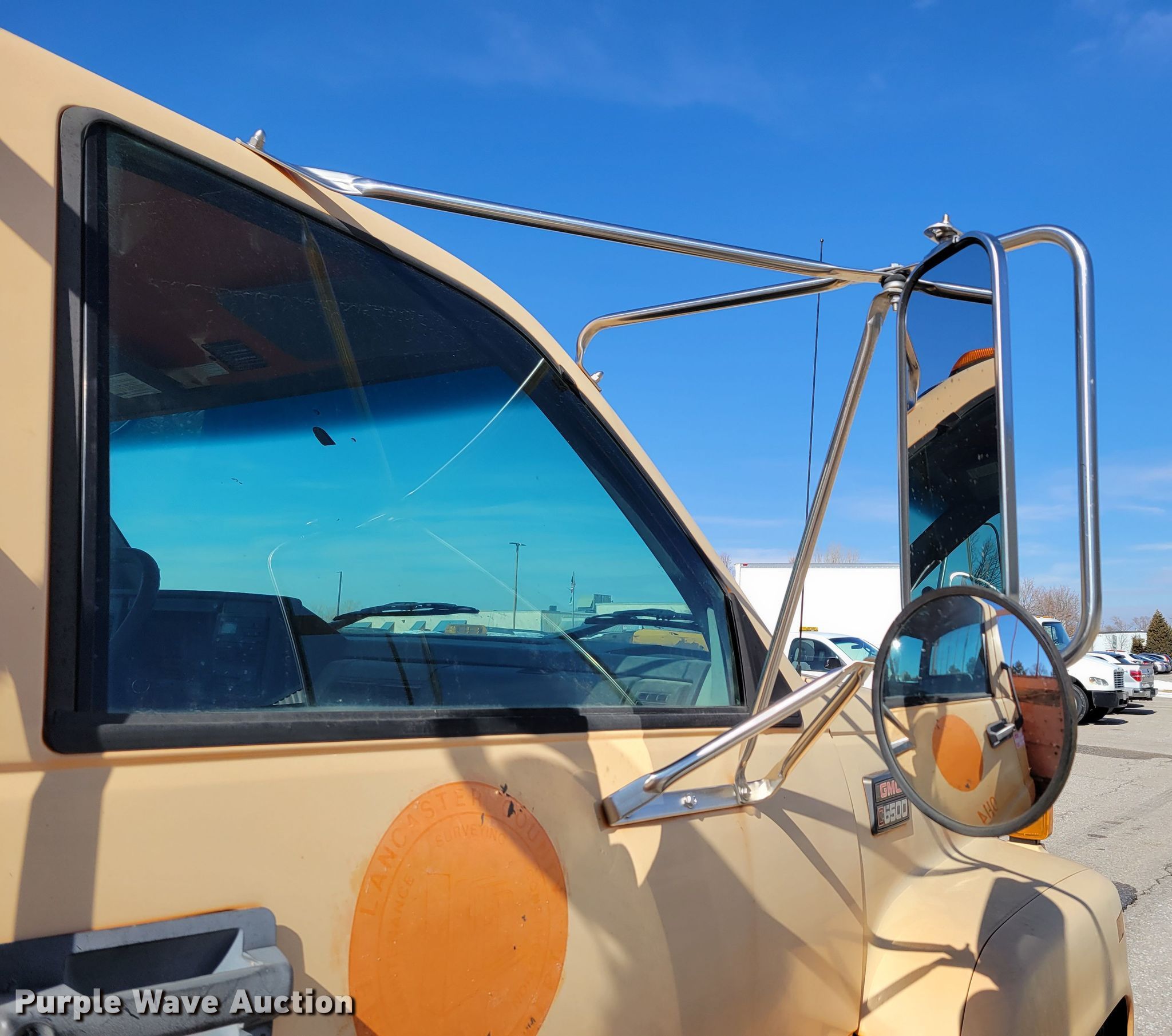 2000 GMC C6500 flatbed truck. Miles: 106,888 on odometer, Hours: 6,824 on meter, VIN: 1GDJ7H1C1YJ517669. Engine Caterpillar, Displacement: 7.2L, Cylinders: 6, Fuel type: Diesel. Transmission Manual, Speed: 5, plus 2. Chassis Axles: Single, Suspension: Spring, Brakes: Hydraulic, GVWR: 25,950 lbs. Interior Heat. Features Flatbed 14' L x 97" W. Tires Size: 11R22.5. Notes Dash warning indicator: ABS. Nebraska title. Lancaster County Sheriff Dept. 444 Cherrycreek Road Bldg B. Lincoln, NE 68528