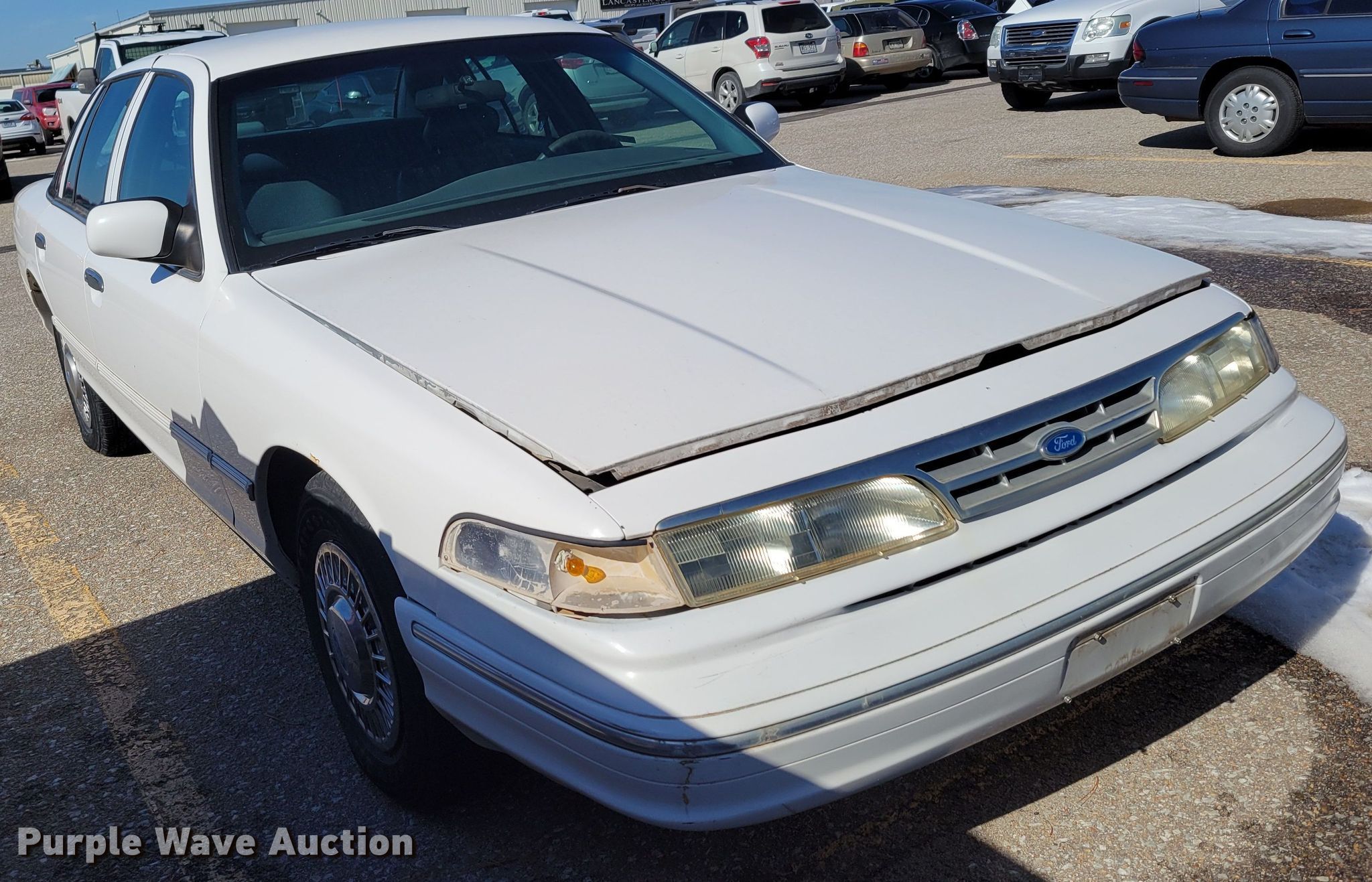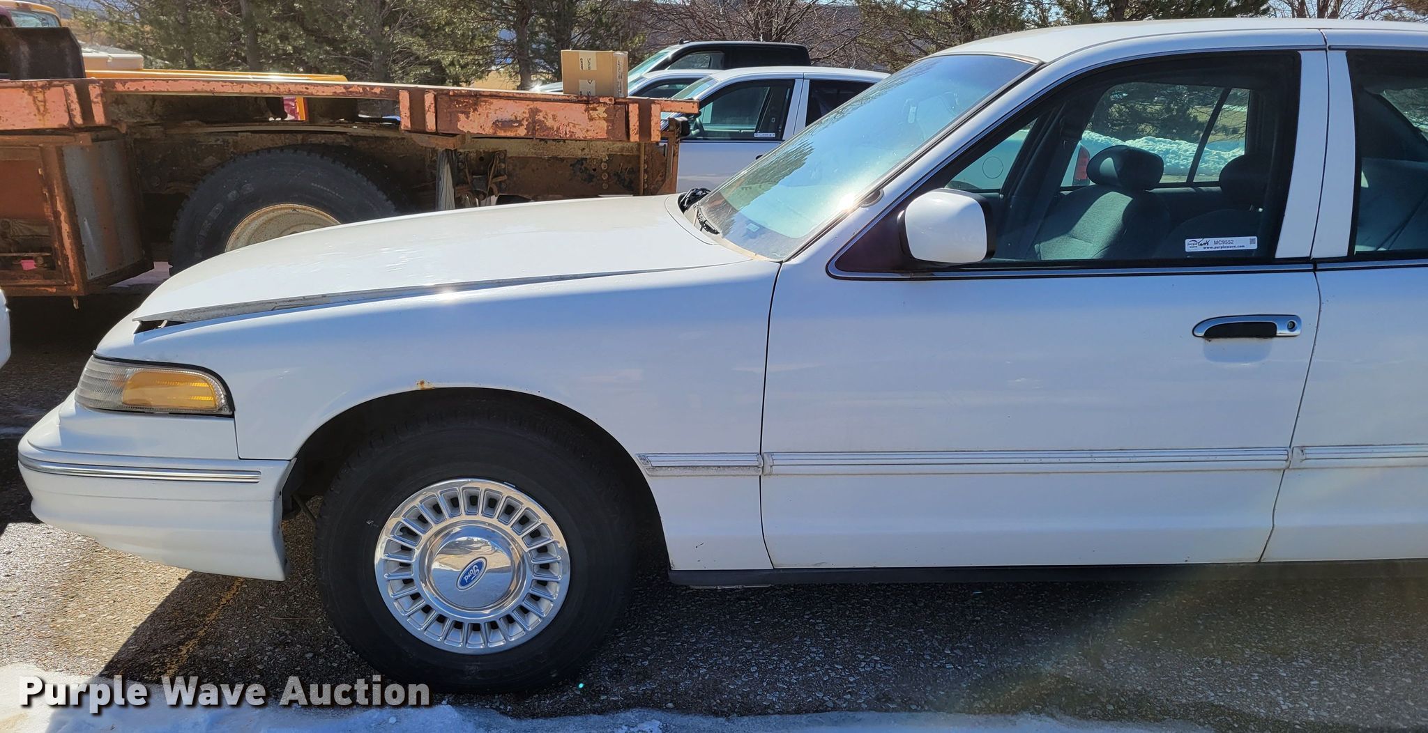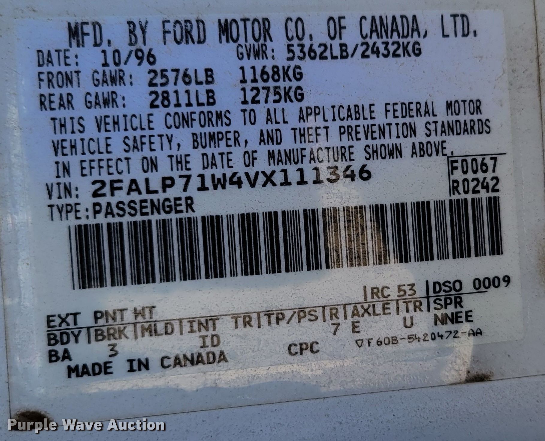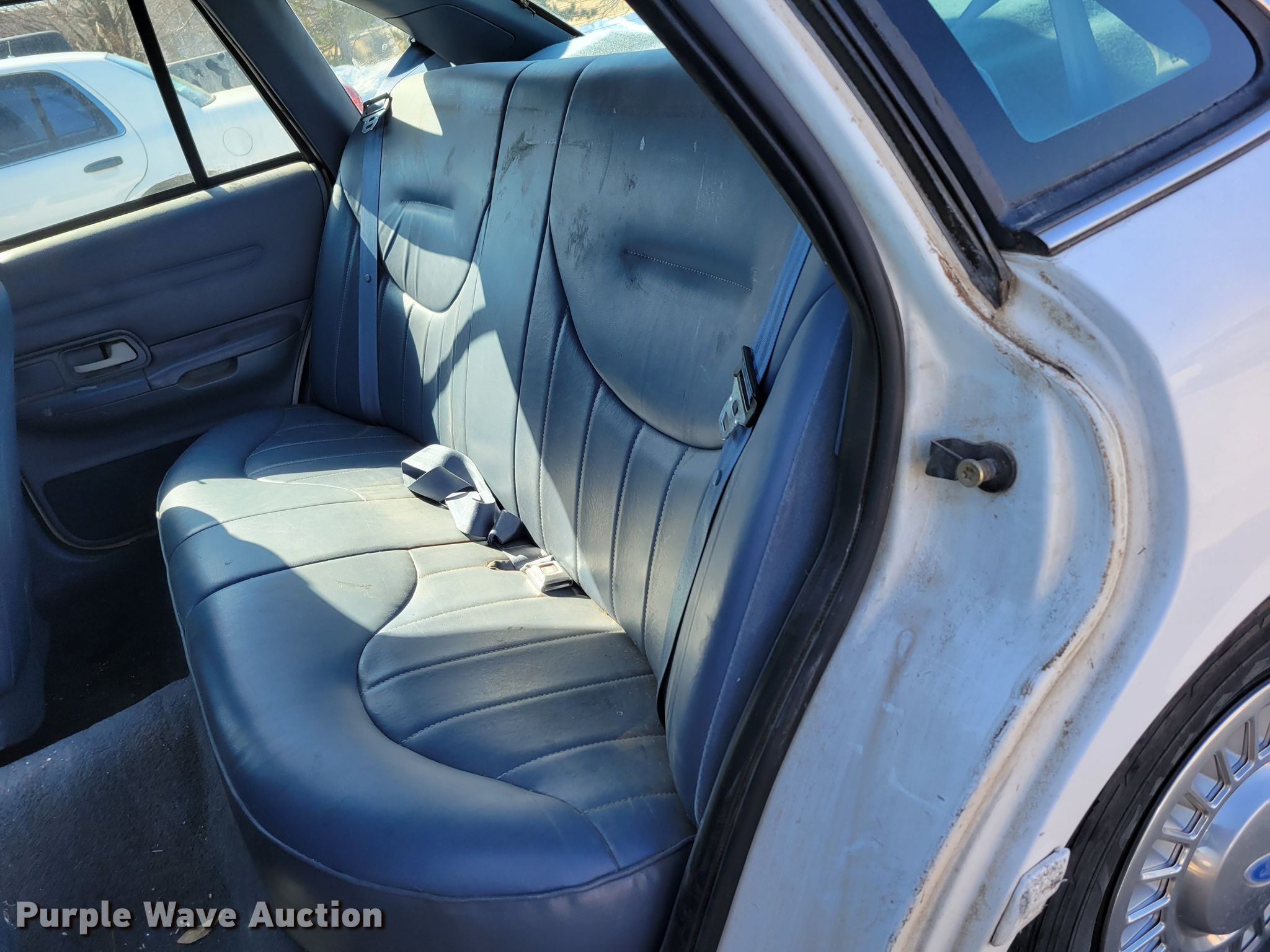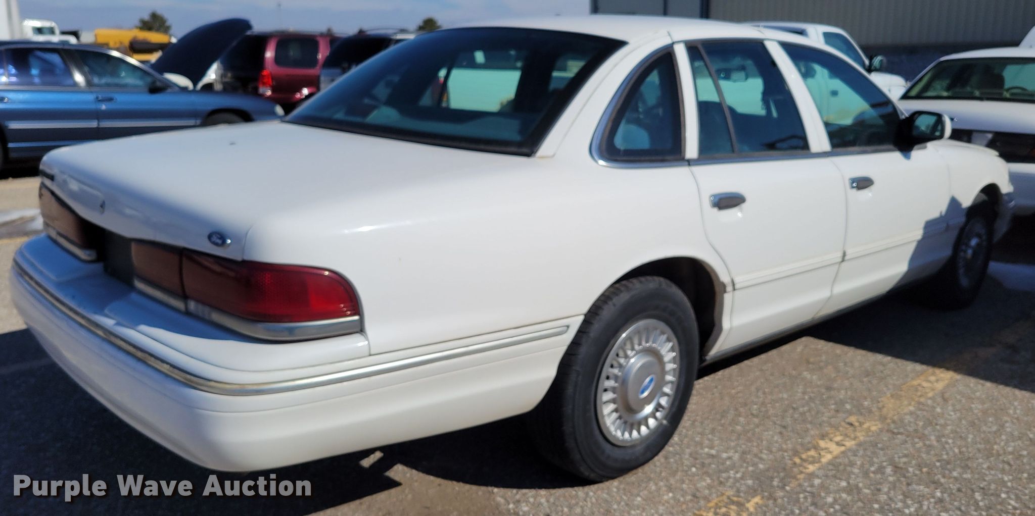 1997 Ford Crown Victoria Police Interceptor. Miles: 144,706 on odometer, VIN: 2FALP71W4VX111346. Engine Displacement: 4.6L V8 SOHC, Cylinders: 8, Fuel type: Gas. Transmission Automatic. Interior AC, Heat, Power windows, Power locks. Tires Size: P225/70R15. Notes Windshield chipped or cracked, Fuel tank leak, hole, Non-operational unit. Nebraska title. Lincoln Forensic Dept. 575 South 10th Street. Lincoln, NE 68508