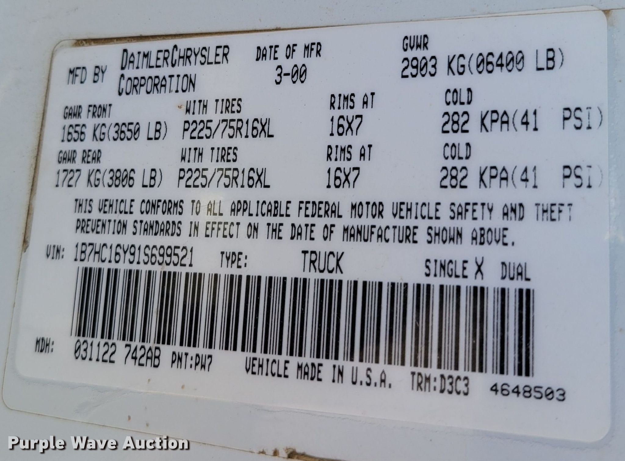 Purple Wave is selling a used 1/2 Ton Pickup or Van in Nebraska. This item is a 2001 Dodge Ram 1500 pickup truck with the following: Miles: 165,031 on odometer, VIN: 1B7HC16Y91S699521