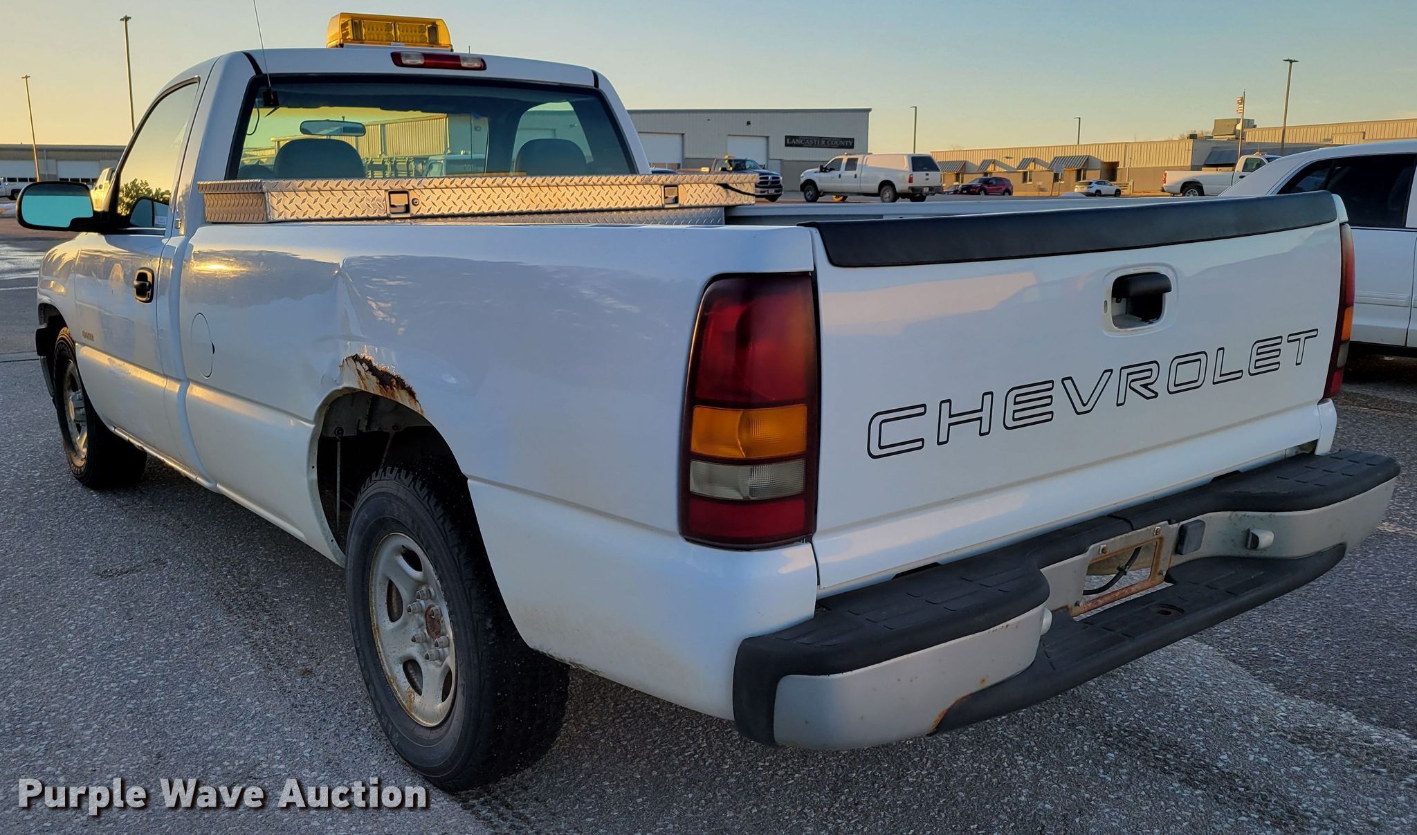 1999 Chevrolet Silverado 1500 pickup truck. Miles: 102,752 on odometer, VIN: 1GCEC14W7XE244047. Engine Displacement: 4.3L V6 OHV, Cylinders: 6, Fuel type: Gas. Transmission Automatic. Interior AC, Heat, Cruise control. Tires Size: P235/75R16. Notes Windshield chipped or cracked, Dead battery, Brake issues, Non-operational ABS. Nebraska title. Lancaster County Sheriff Dept. 444 Cherrycreek Road Bldg B. Lincoln, NE 68528