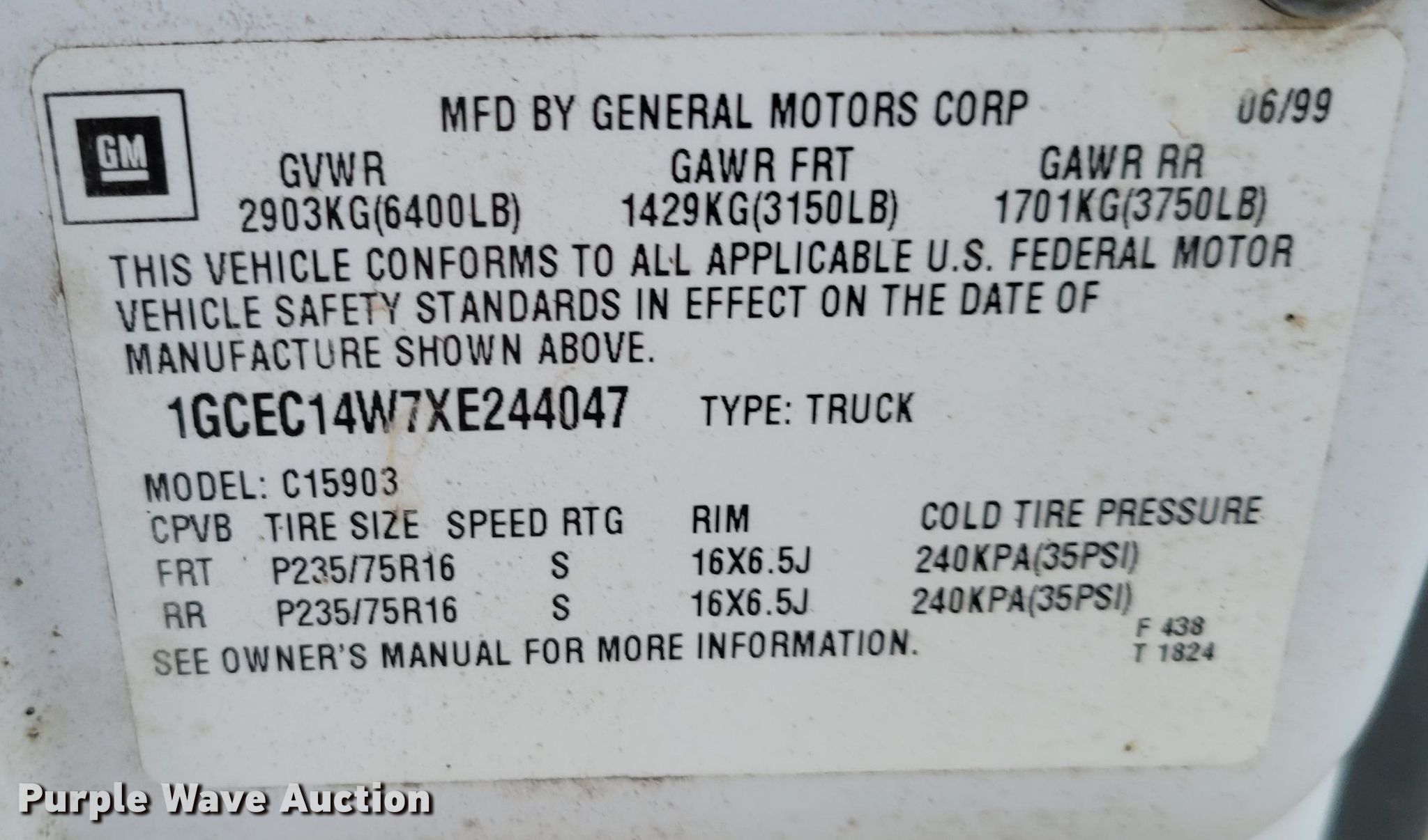 - VIN: 1GCEC14W7XE244047