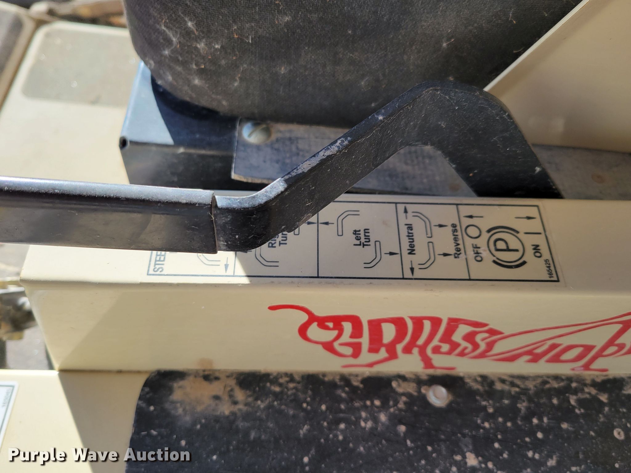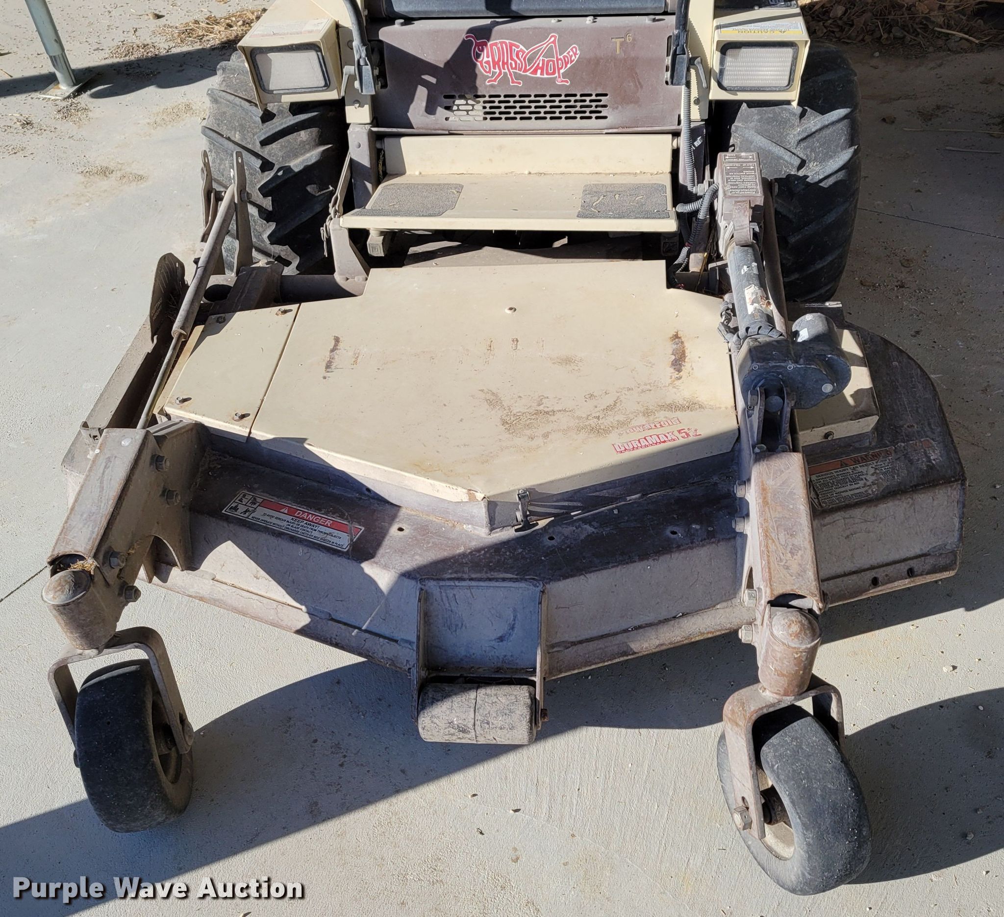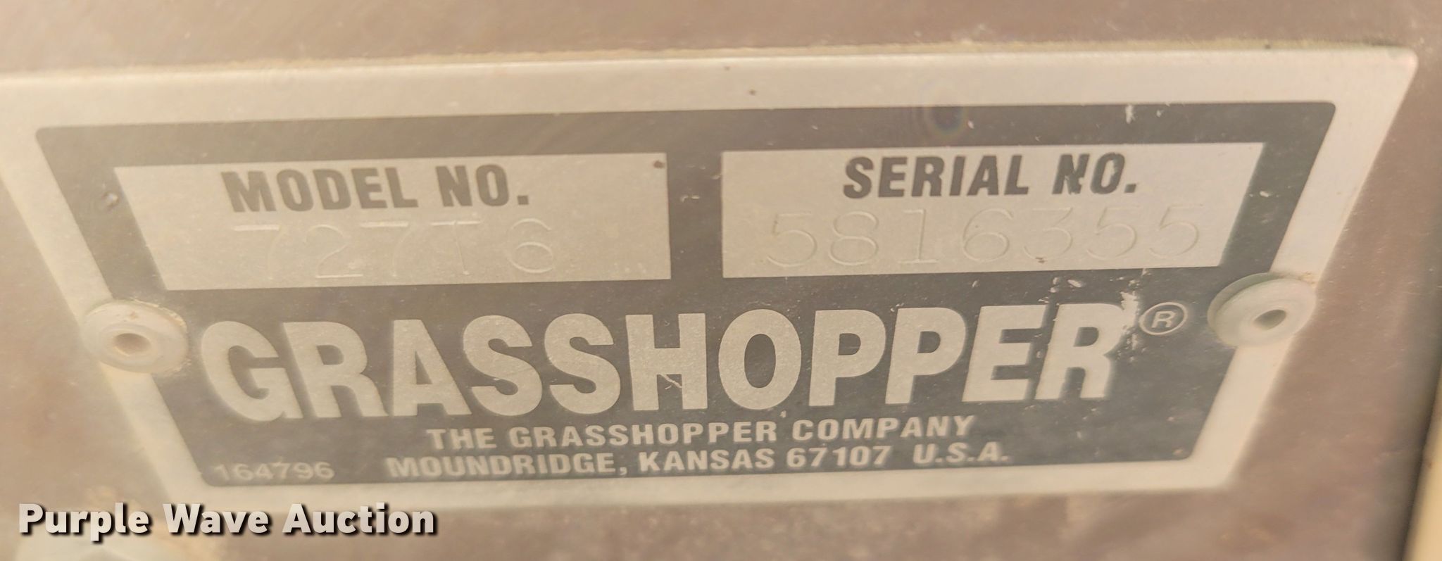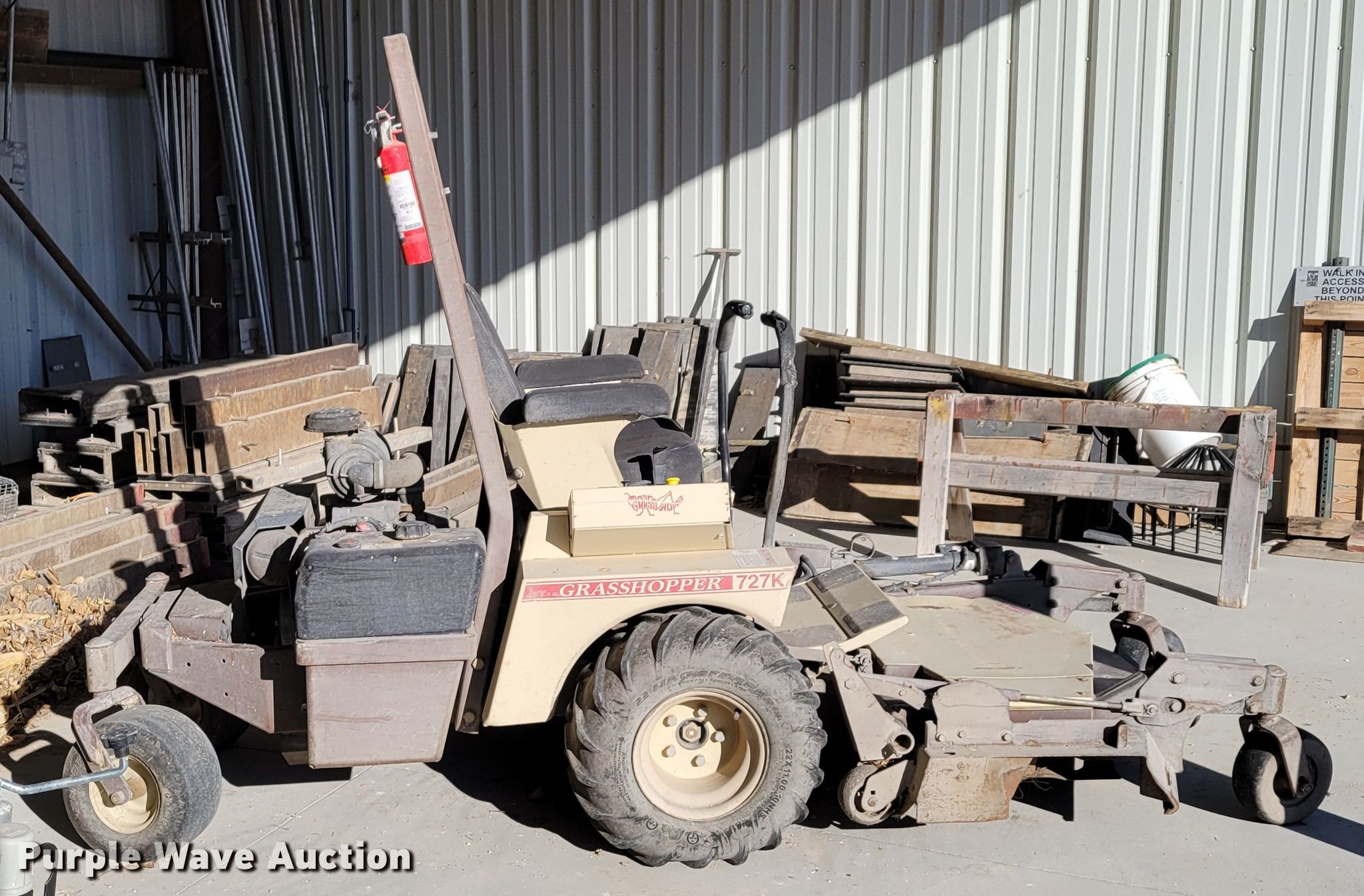 Purple Wave is selling a used Lawn Mower in Kansas. This item is a Grasshopper 727T6 ZTR lawn mower with the following: Hours: Unknown, Cutting width: 52", Serial: 5816355