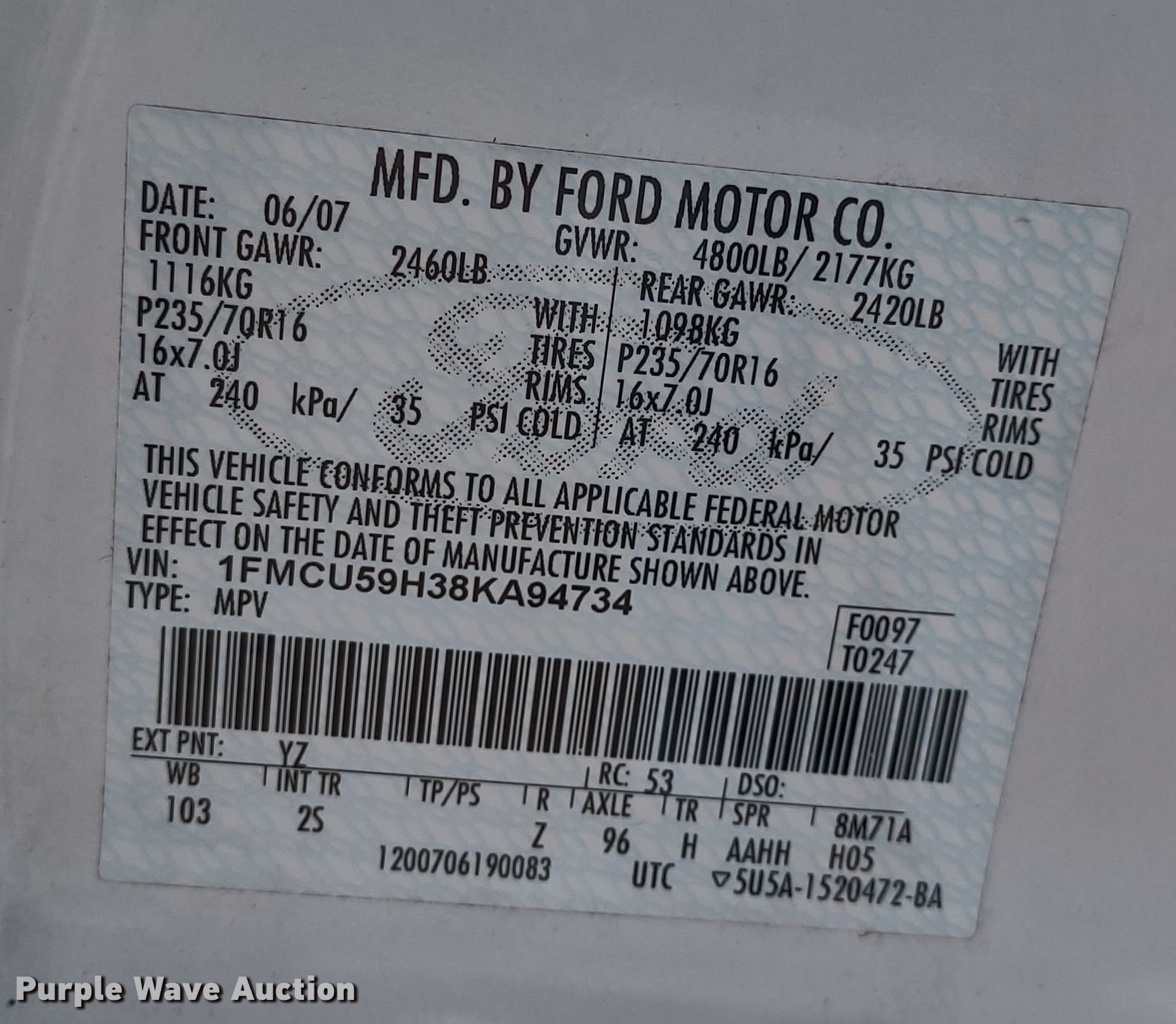 Purple Wave is selling a used Passenger Vehicle in Kansas. This item is a 2008 Ford Escape Hybrid SUV with the following: Miles: 43,438 on odometer, VIN: 1FMCU59H38KA94734, Unit #: PWK 3485