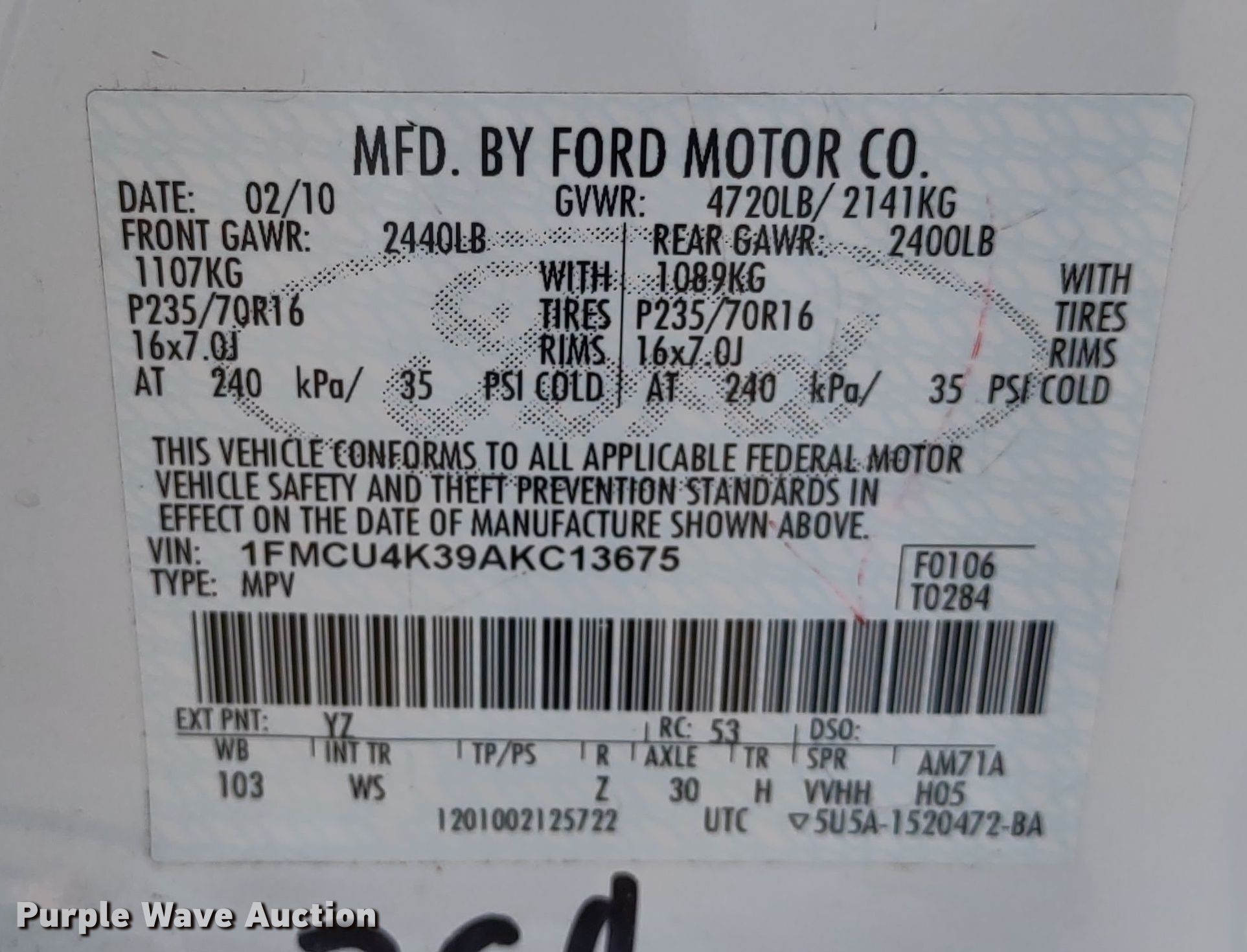 Purple Wave is selling a used Passenger Vehicle in Kansas. This item is a 2010 Ford Escape Hybrid SUV with the following: Miles: 78,726 on odometer, VIN: 1FMCU4K39AKC13675, Unit #: APR 3384