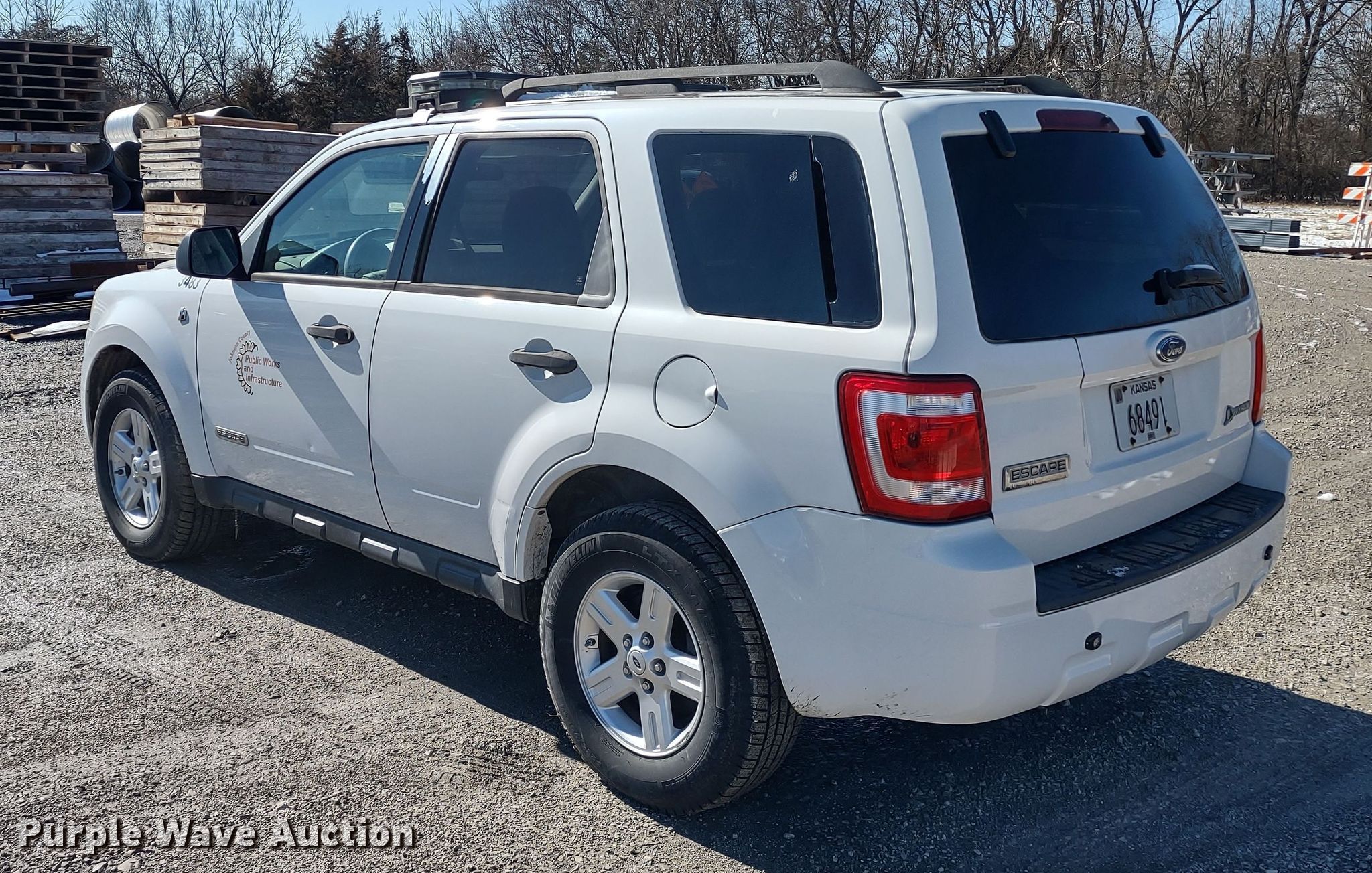 Purple Wave is selling a used Passenger Vehicle in Kansas. This item is a 2008 Ford Escape Hybrid SUV with the following: Miles: 45,923 on odometer, VIN: 1FMCU59H28KA12461, Unit #: PWK 3483