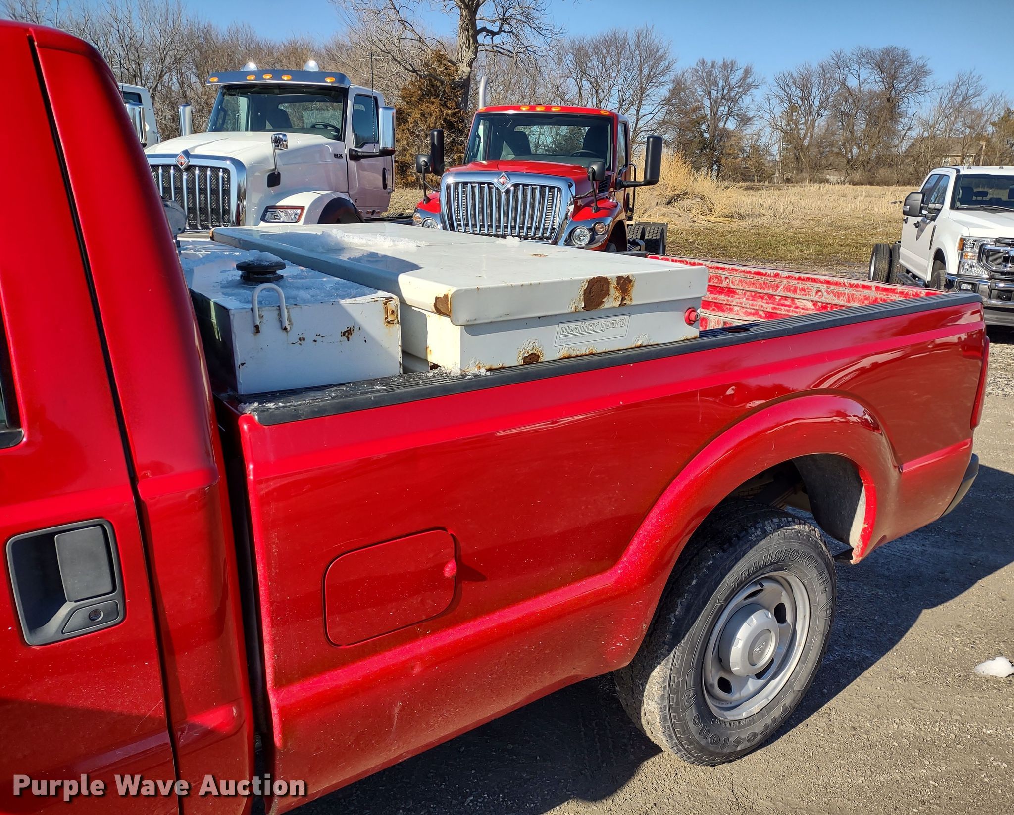 2011 Ford F250 Super Duty XL pickup truck. Miles: 124,983 on odometer, Hours: 7,095 on meter, VIN: 1FTBF2A65BEA02824, Unit #: PWK 3414. Engine Displacement: 6.2L V8 OHV, Cylinders: 8, Fuel type: Gas. Transmission Automatic. Interior AC, Heat. Features Auxiliary fuel tank GPI pump, Digital meter read-out. Tires Size: 245/75R17. Kansas title. Title distribution may be delayed up to 14 days from verification of funds. Johnson County, KS. 1800 W Old 56 Hwy. Olathe, KS 66061