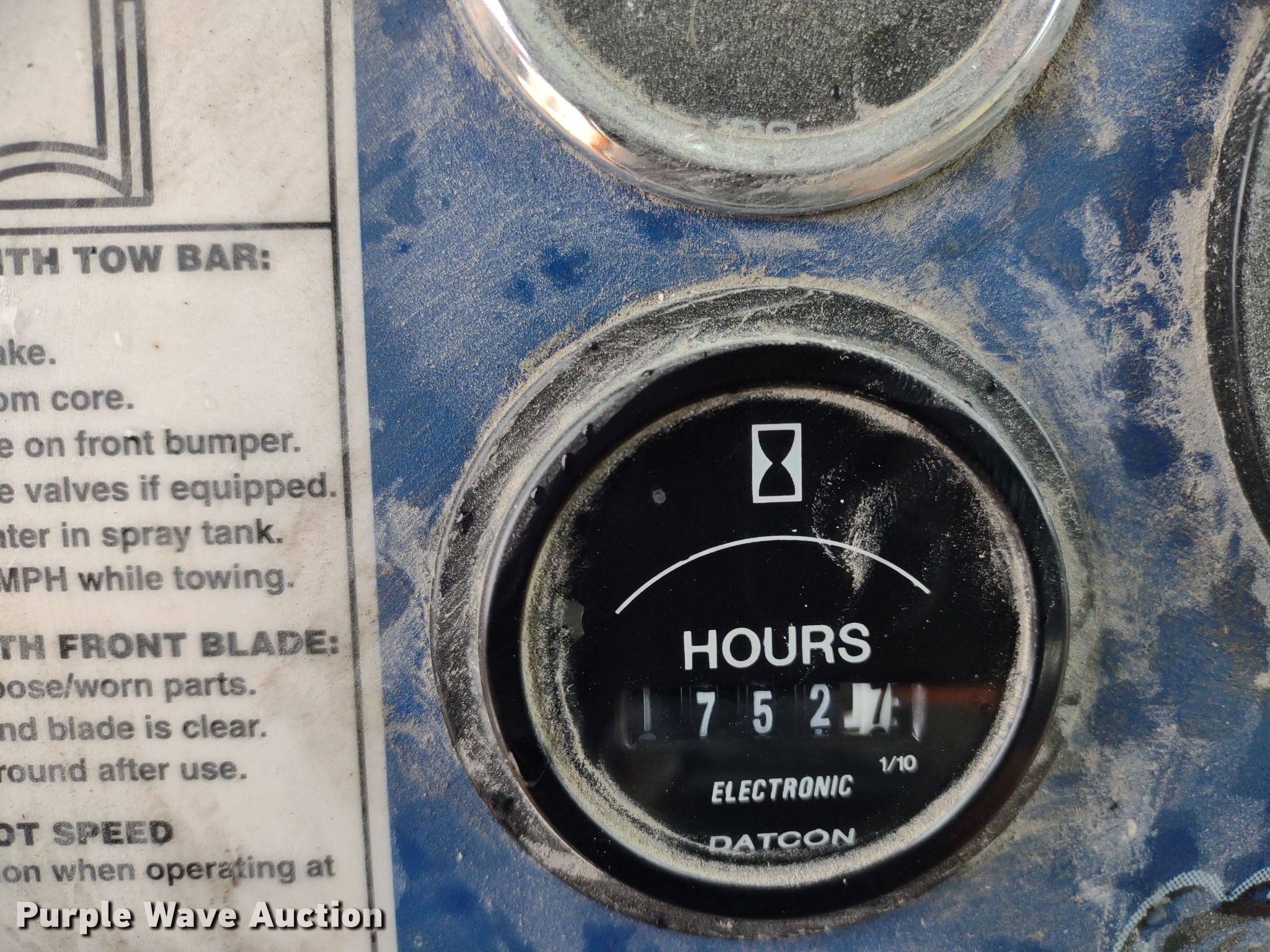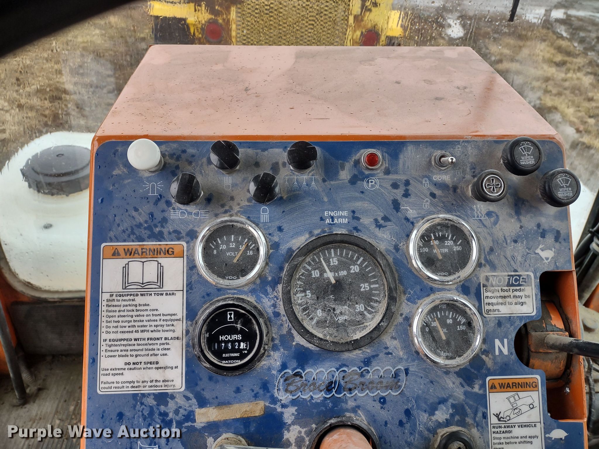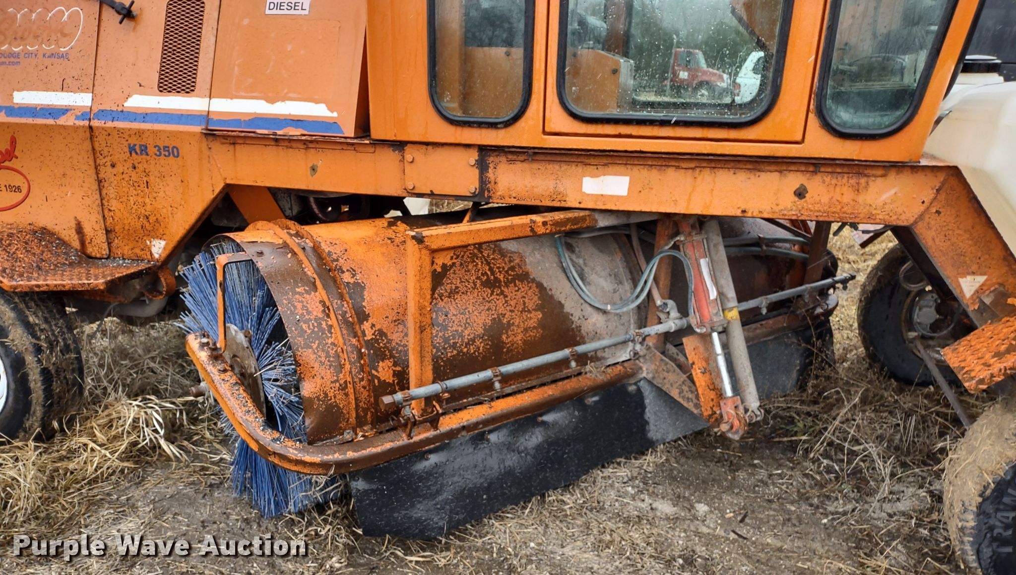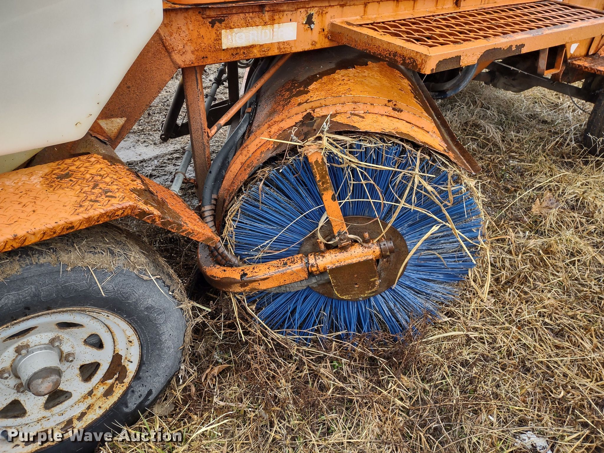 2012 Broce KR350 broom. Hours: 1,753 on meter, Serial: 407638, Unit #: PWK 5415. Engine Kubota V3600-T, Serial: BL3752, Cylinders: 4, Fuel type: Diesel. Transmission Hydrostatic. Chassis Brakes: Hydraulic. Operators station EROPS, AC, Heat. Features Broom Width: 96", Water spray system. Tires Size: 225/75R16, Brand: Firestone. Johnson County, KS. 1800 W Old 56 Hwy. Olathe, KS 66061
