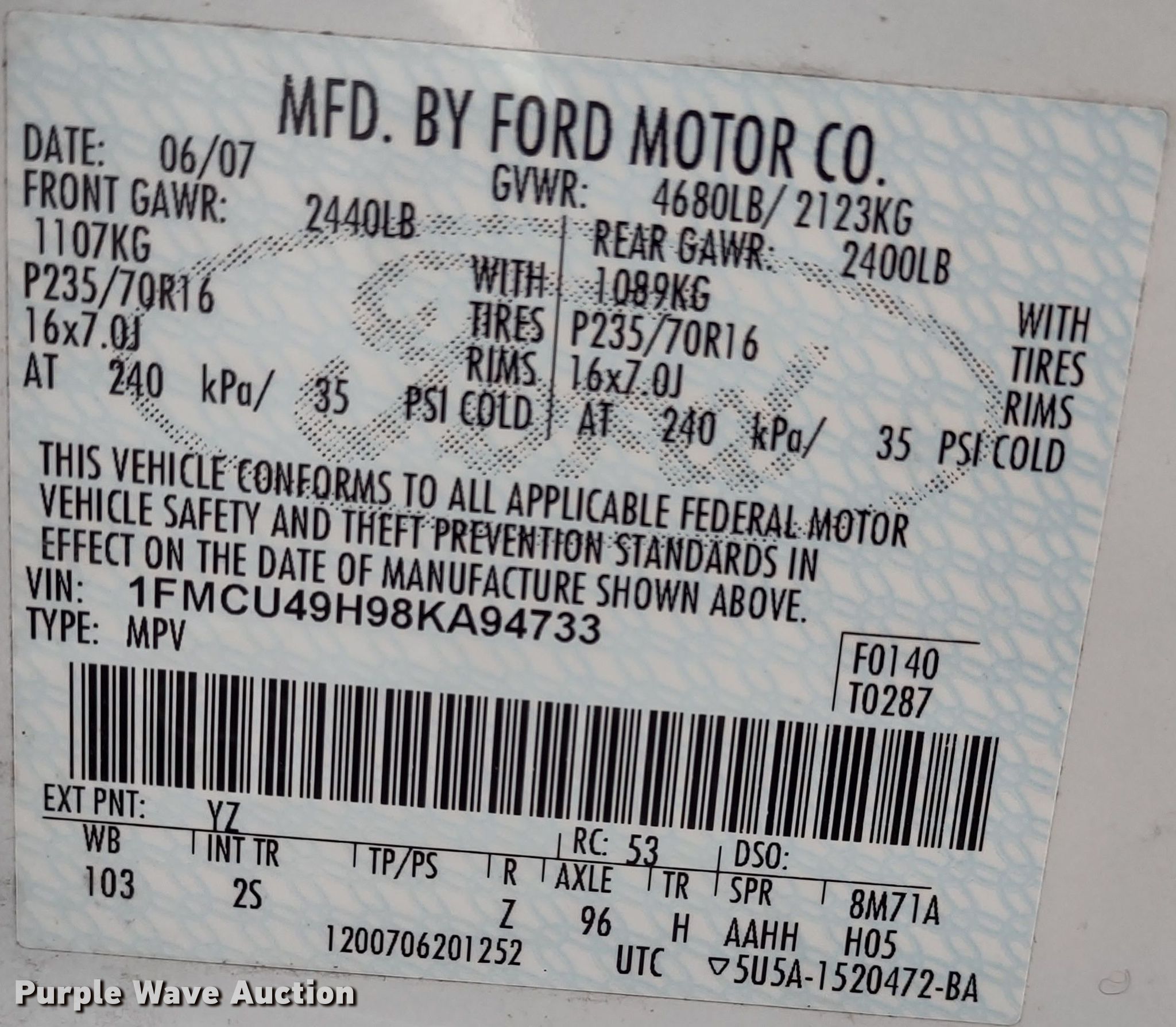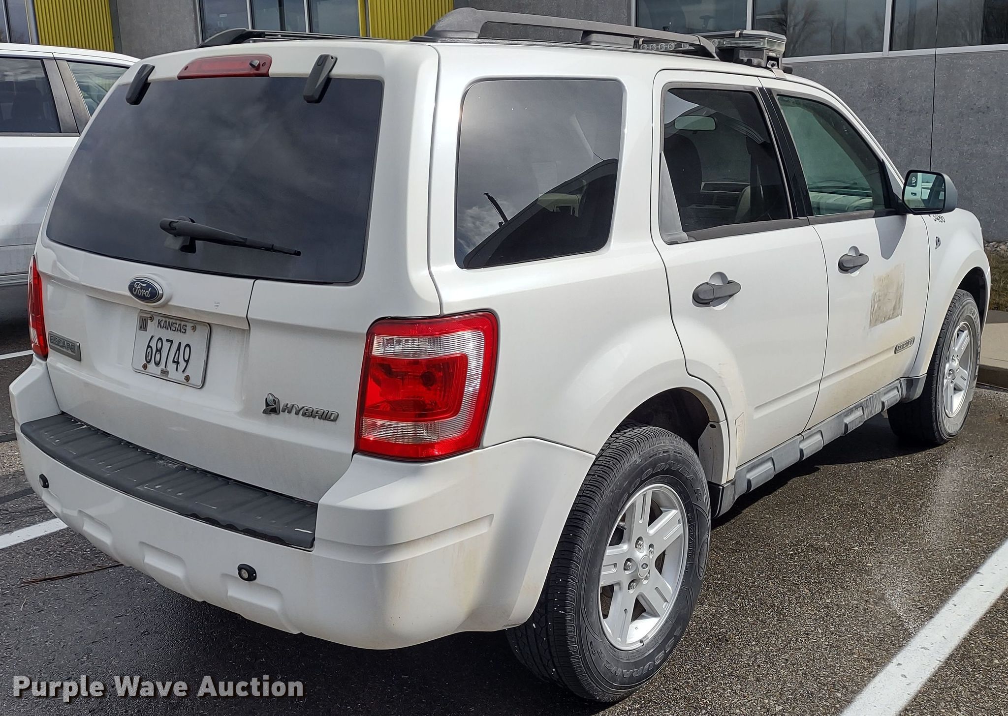 Purple Wave is selling a used Passenger Vehicle in Kansas. This item is a 2008 Ford Escape Hybrid SUV with the following: Miles: 91,360 on odometer, VIN: 1FMCU49H98KA94733, Unit #: PWK 3486